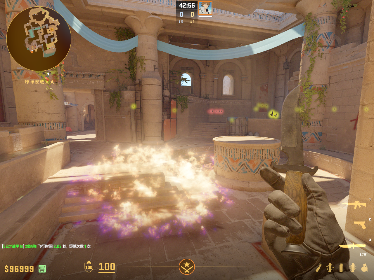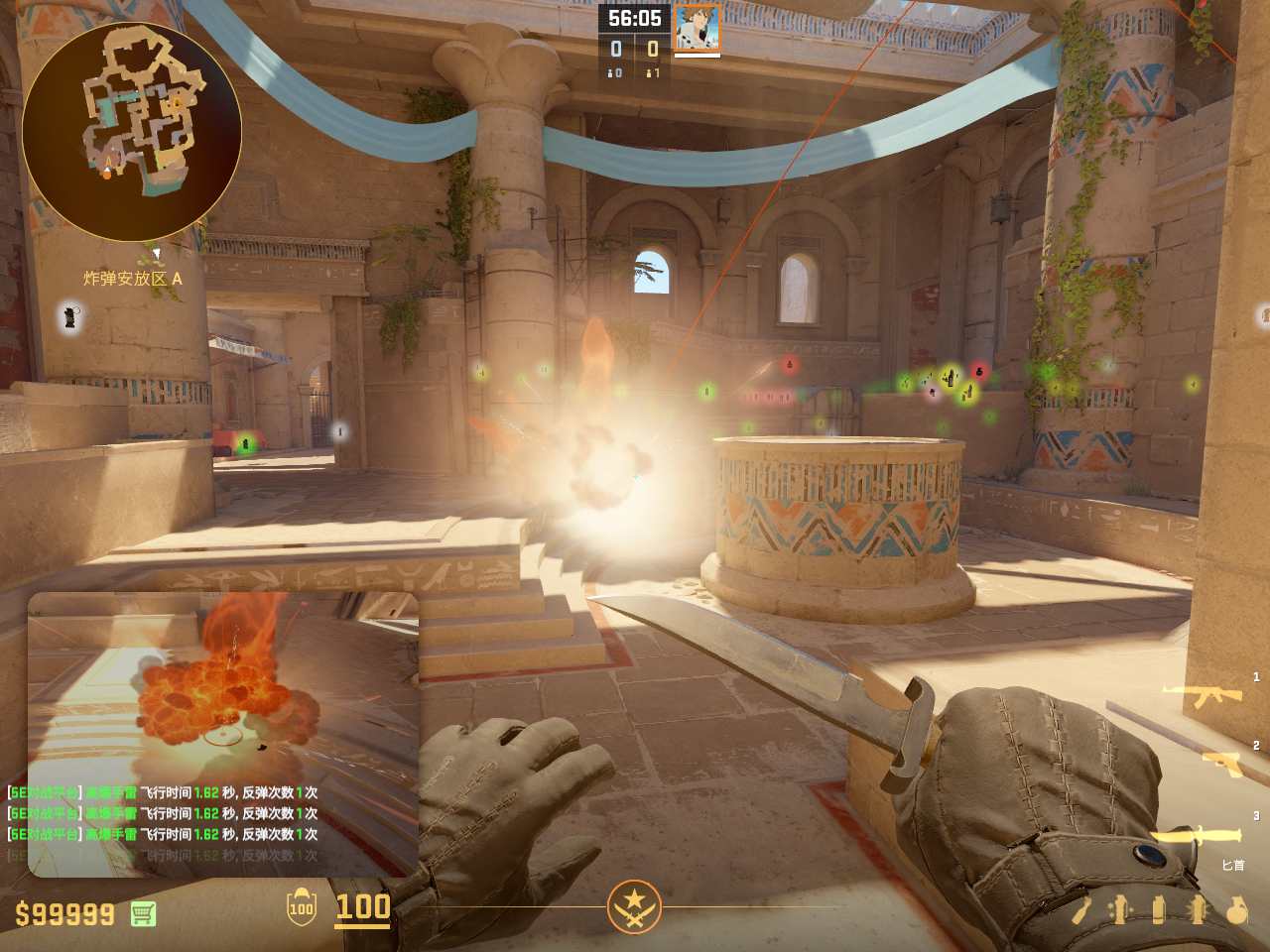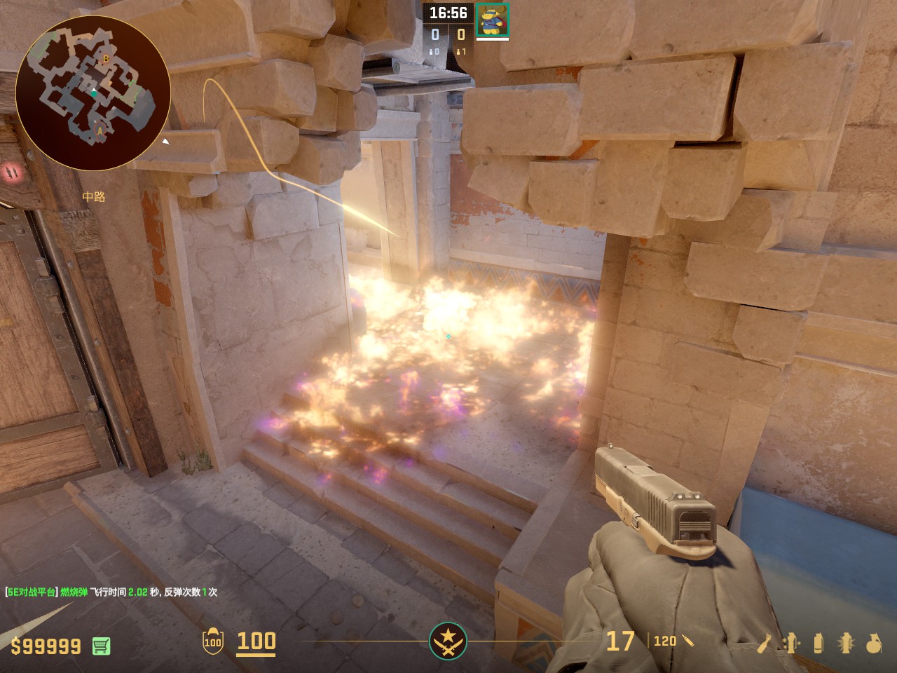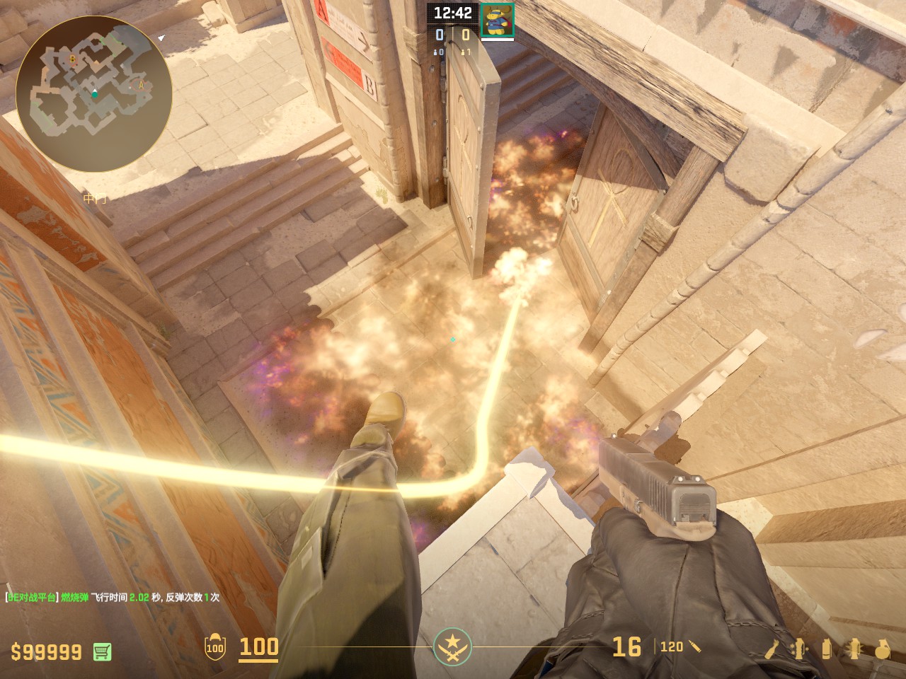 在A外二楼常规爆弹烧缺口的火 容错较高 走一步丢即可
