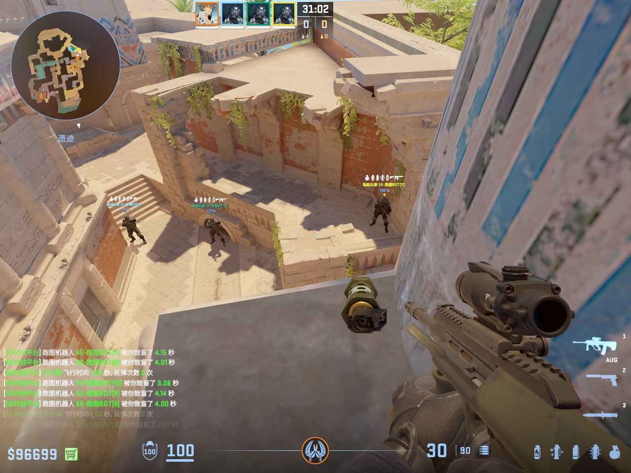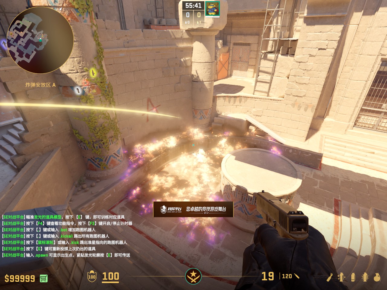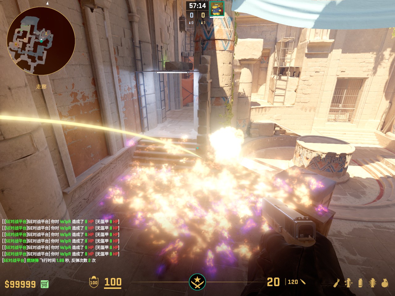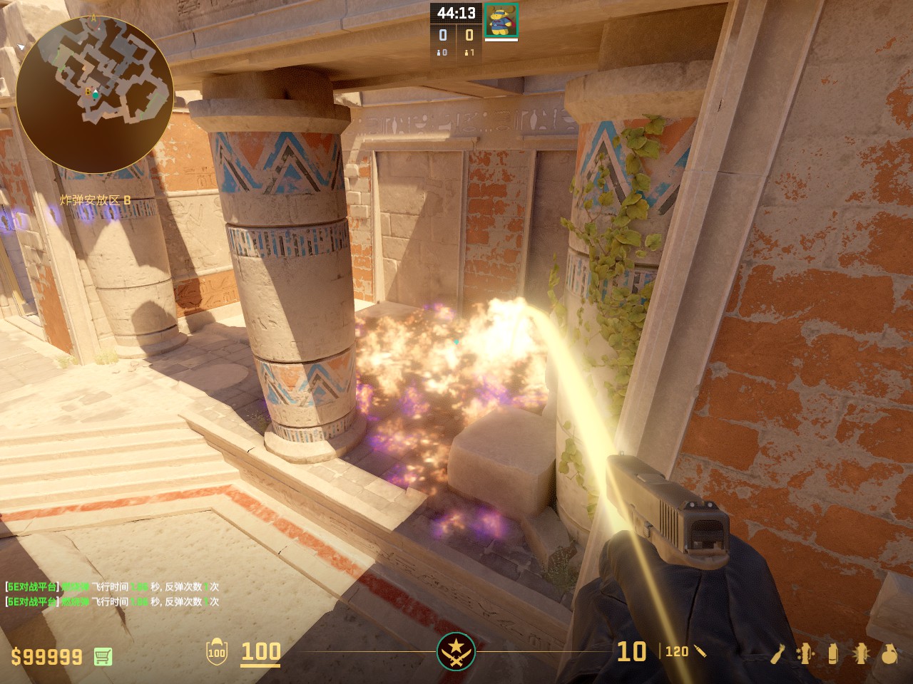 在A外二楼常规爆弹烧缺口的火 容错较高 走一步丢即可