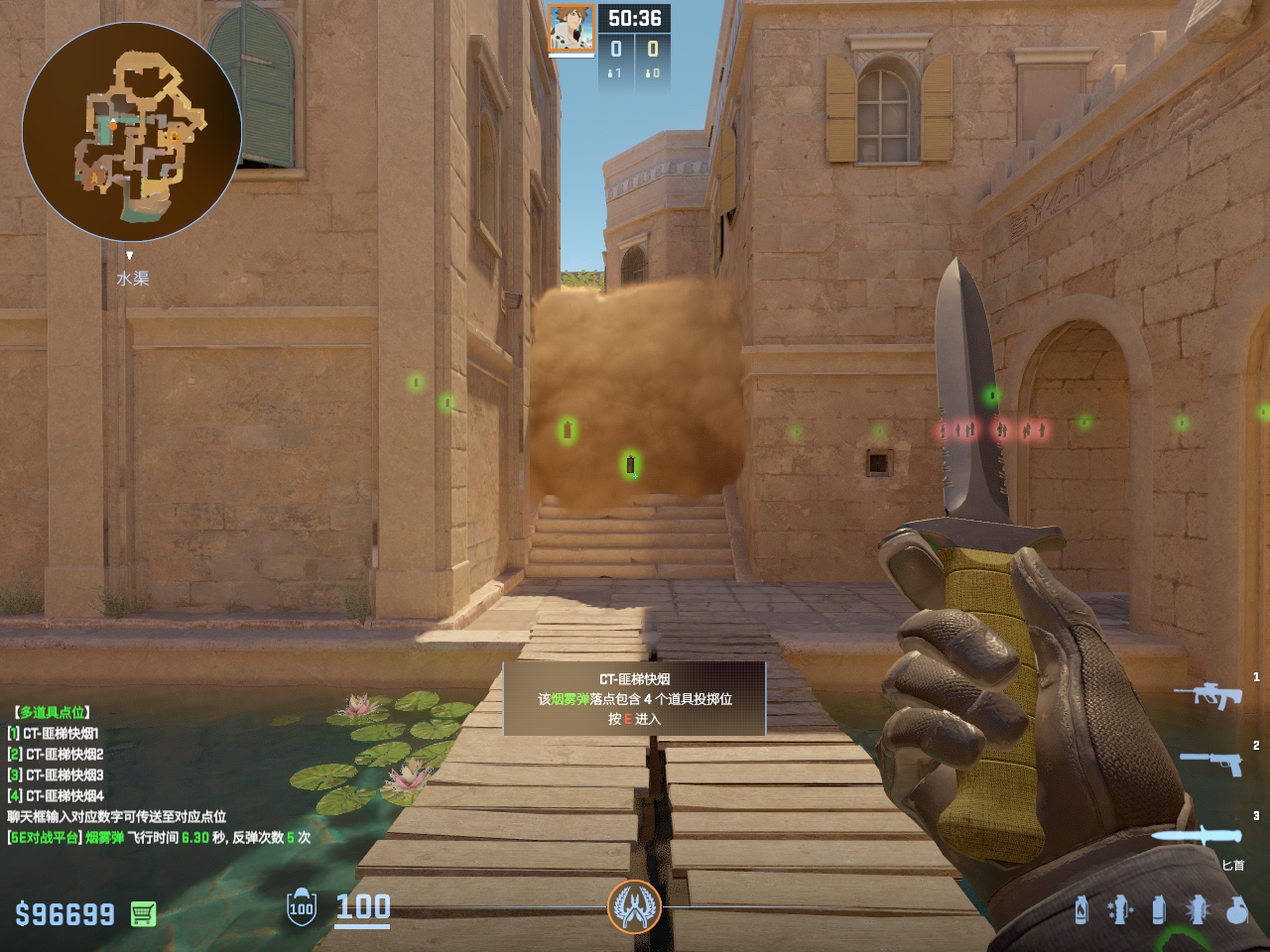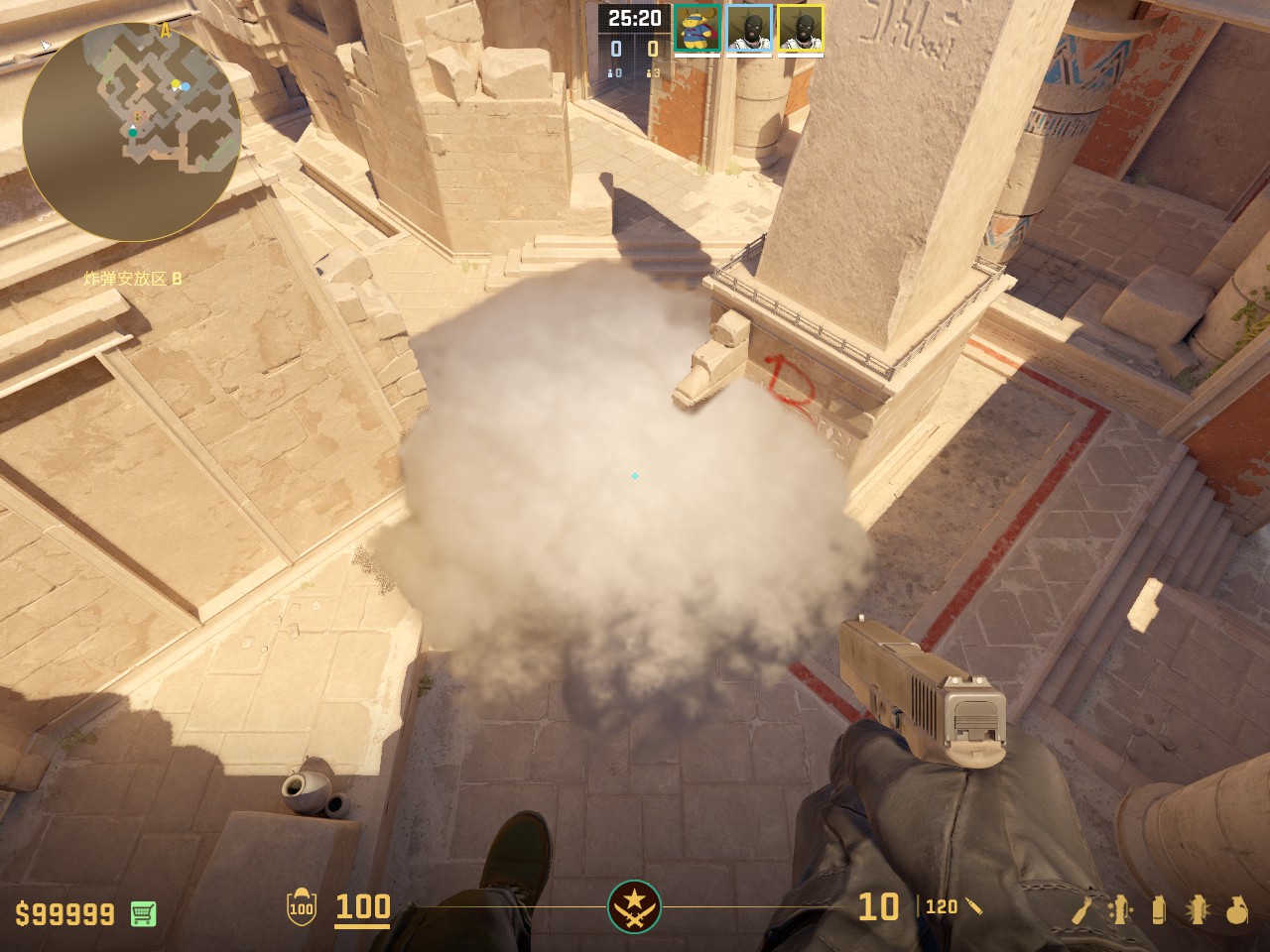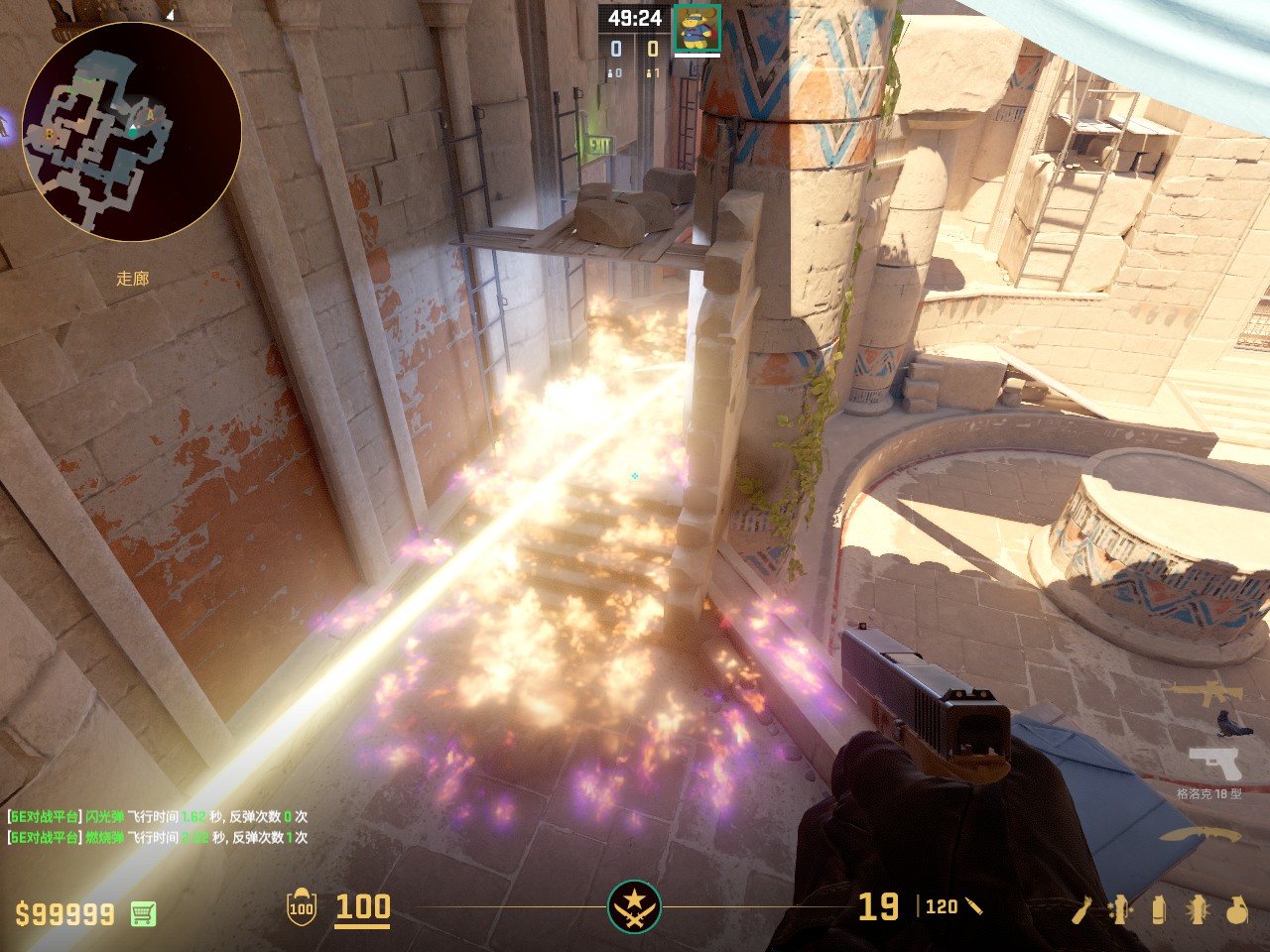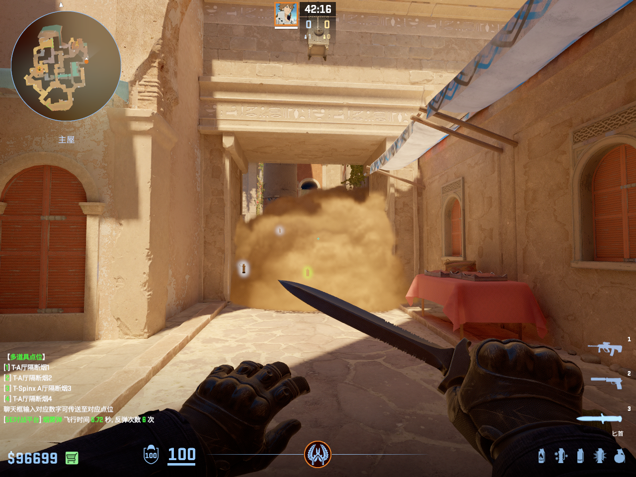 一点多用的闪光 但只能白玻璃房和死点直架的敌人 不白出门队友只适合在此处丢完警家烟雾弹顺手丢出