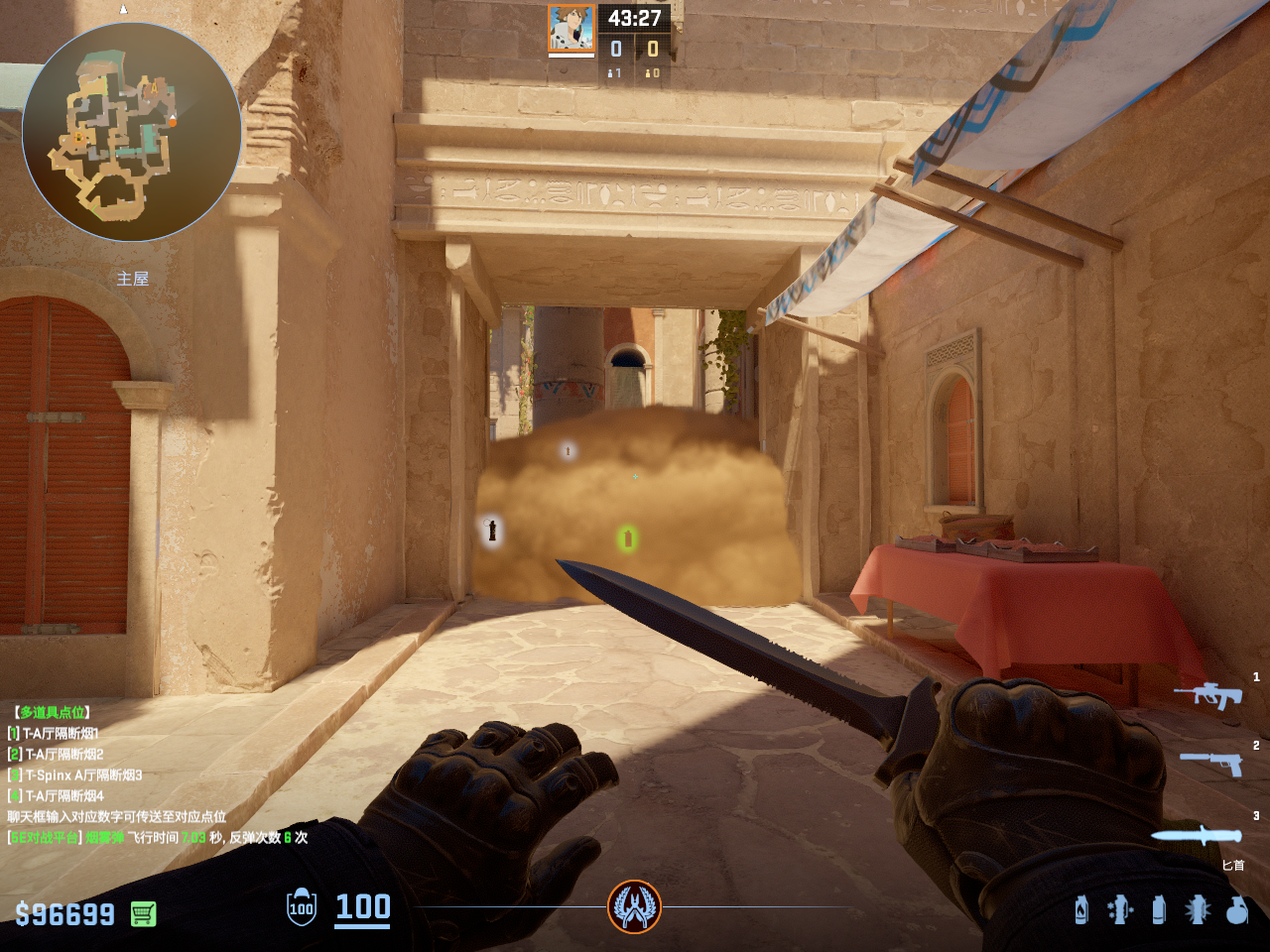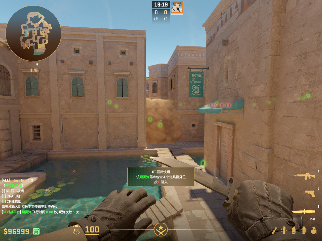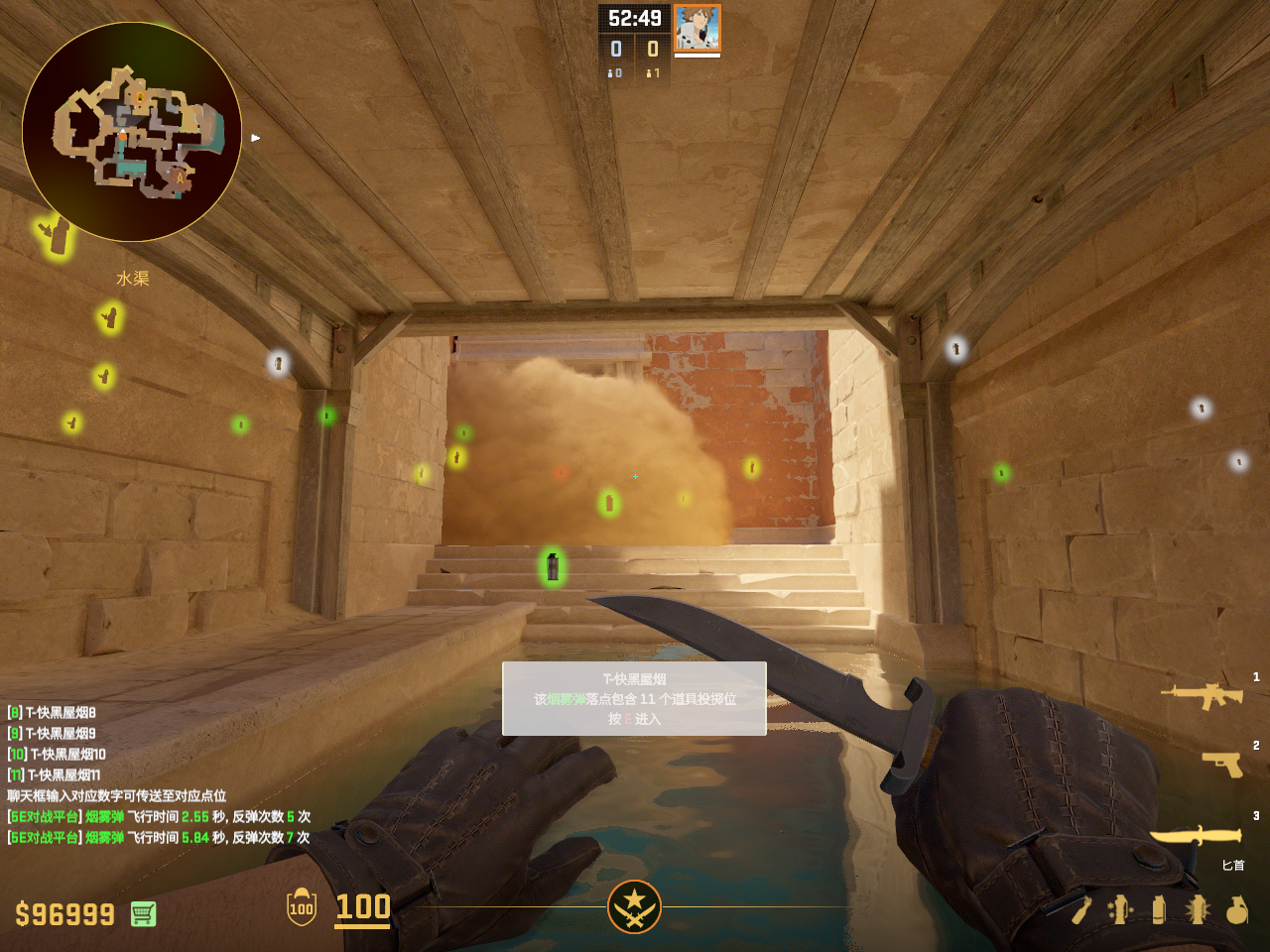 一点多用的闪光 但只能白玻璃房和死点直架的敌人 不白出门队友只适合在此处丢完警家烟雾弹顺手丢出