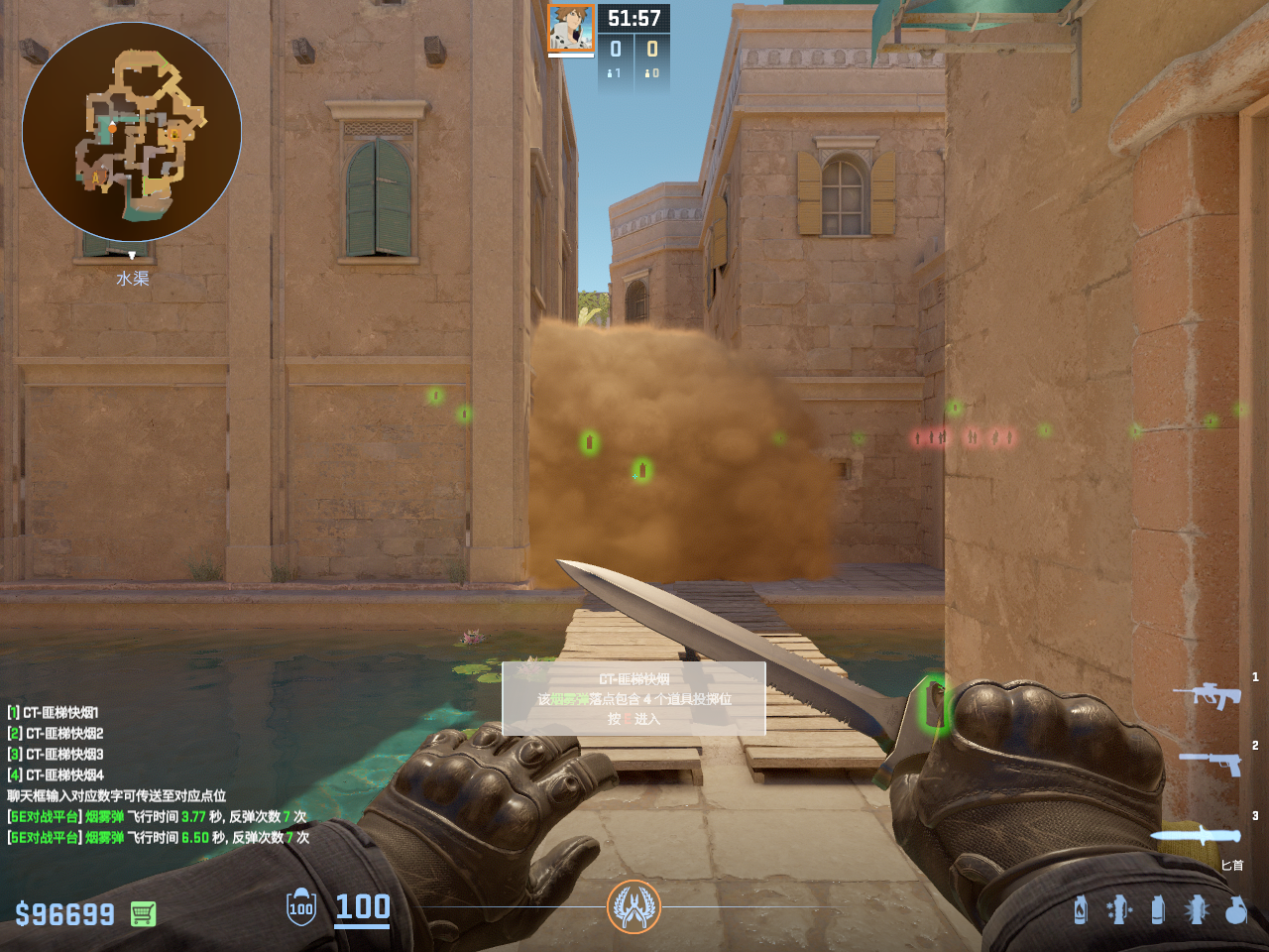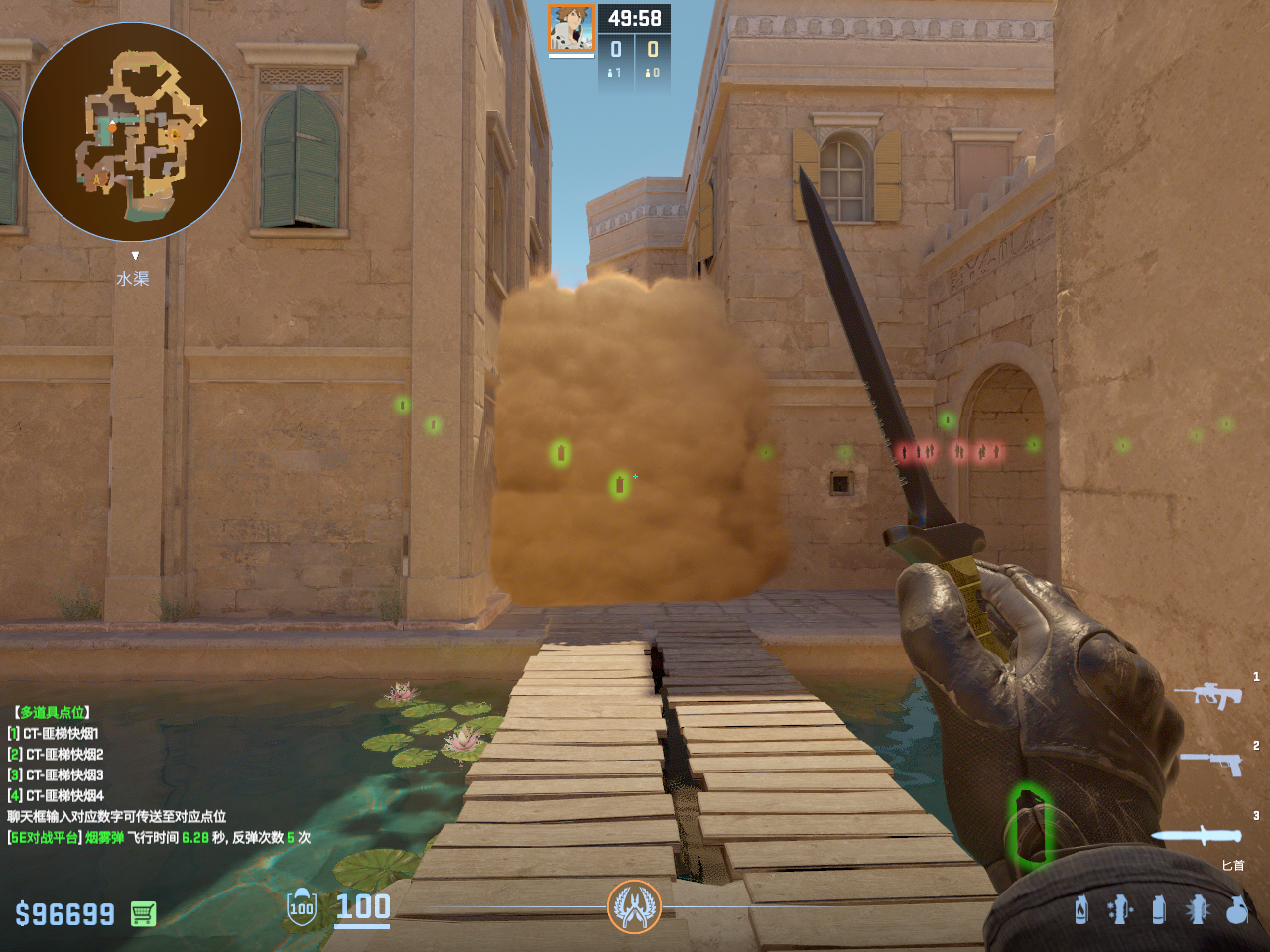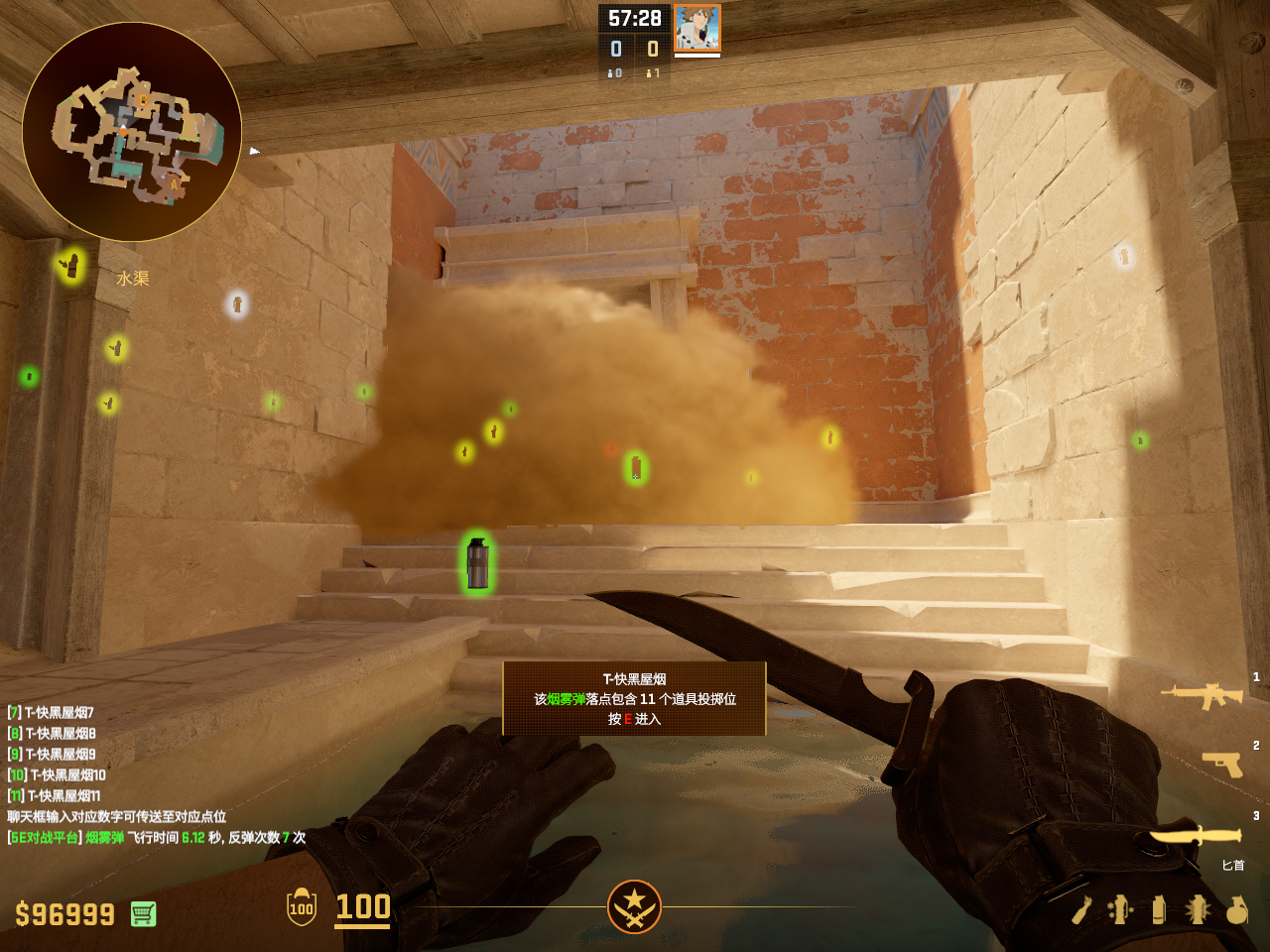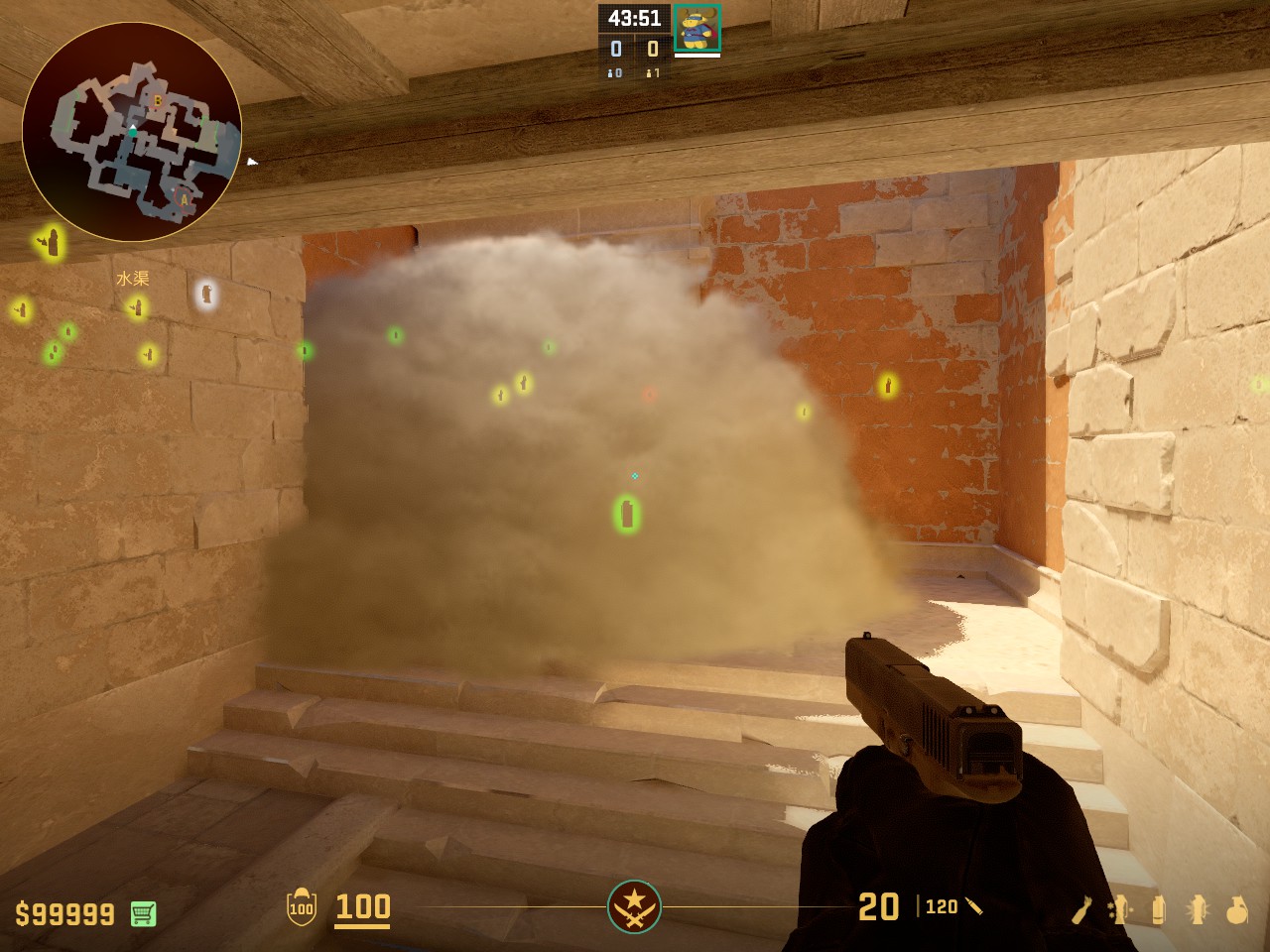 一点多用的闪光 但只能白玻璃房和死点直架的敌人 不白出门队友只适合在此处丢完警家烟雾弹顺手丢出