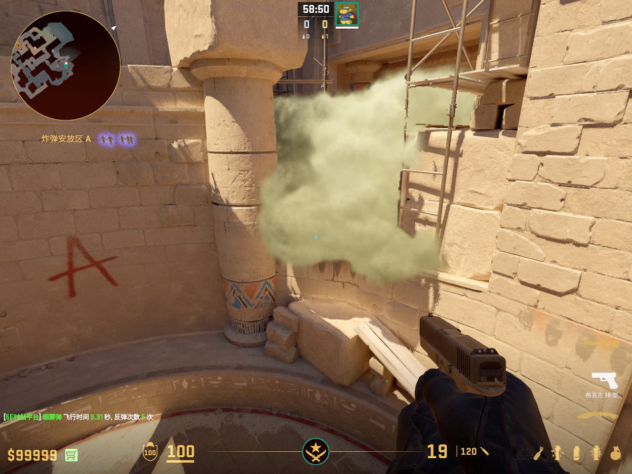 在B包丢出的A厅入口烟雾 便于下一步反清A厅