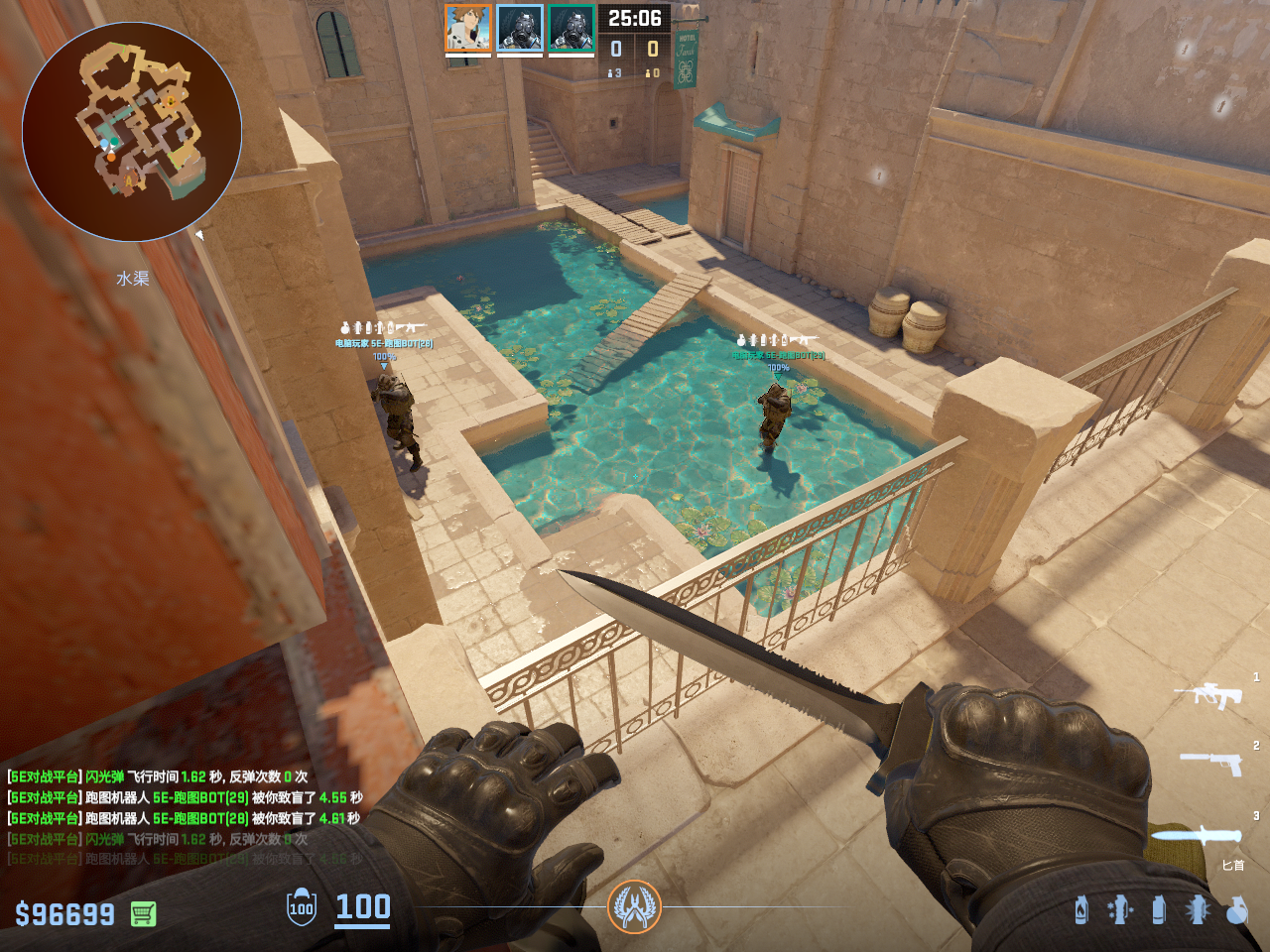 B外丢出的B包柱子后火 清理柱子后敌人 还可以配合水下队友烧黑屋 如果黑屋敌人要缩回去会吃两颗火