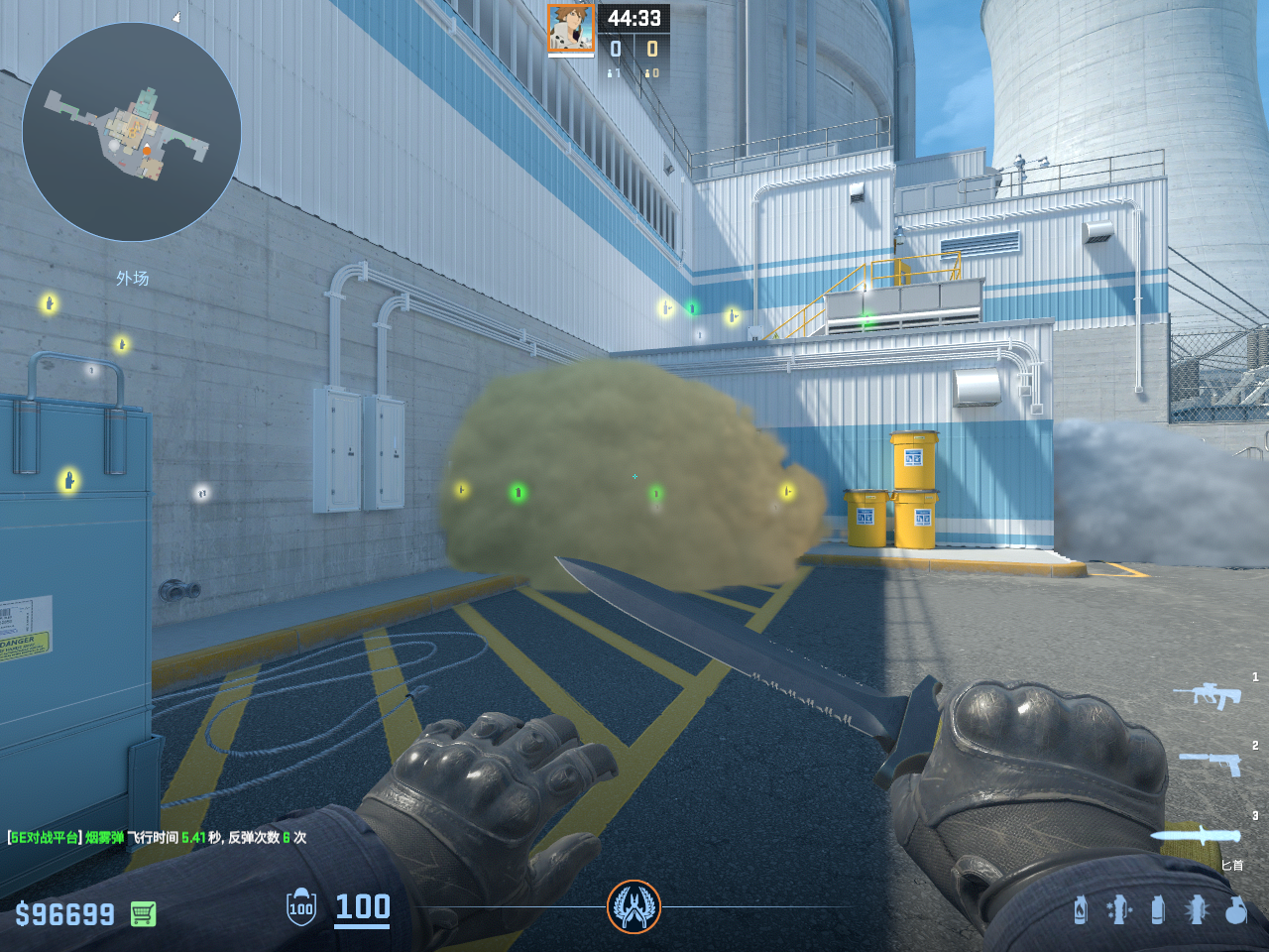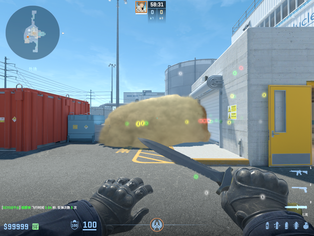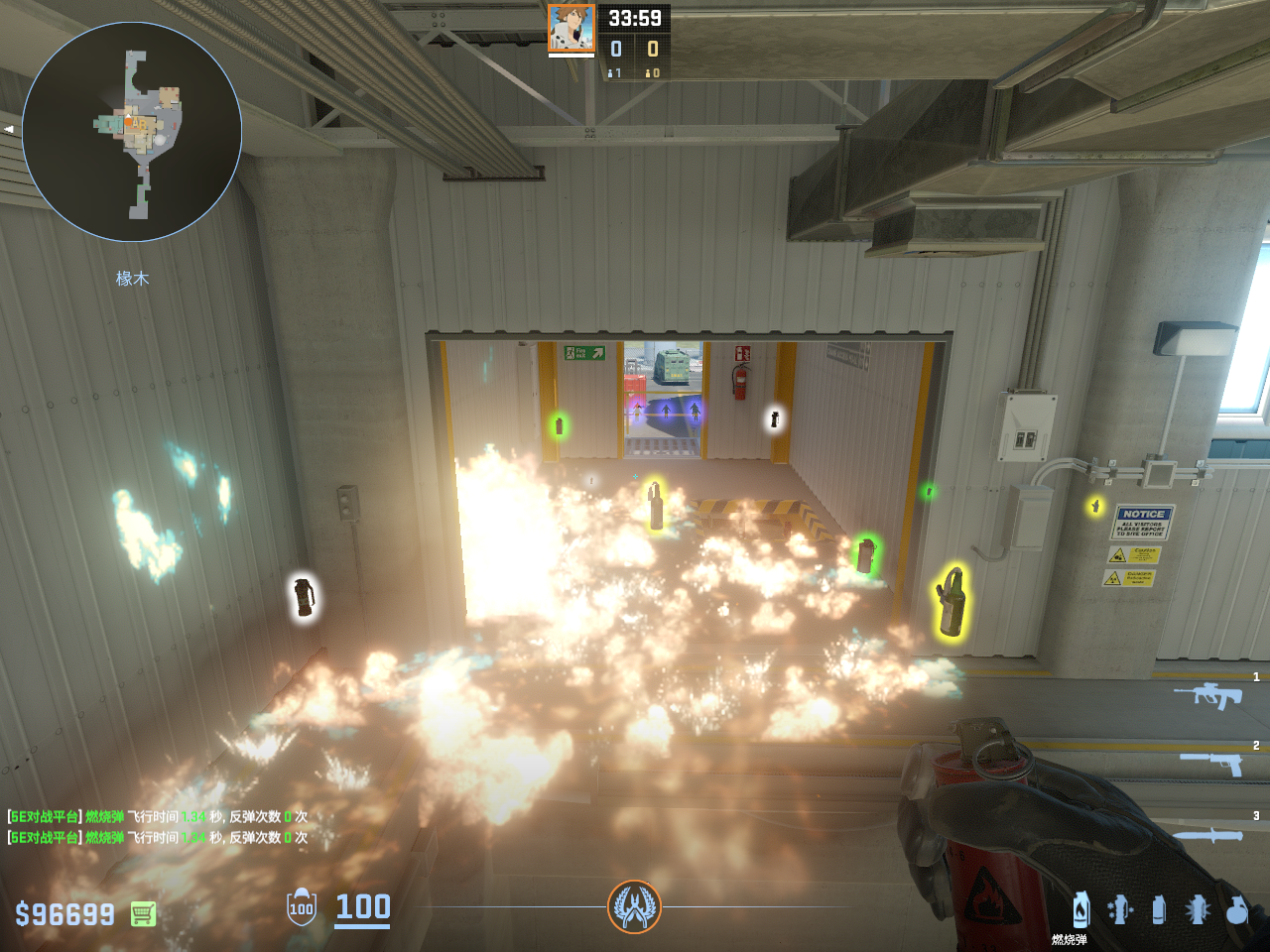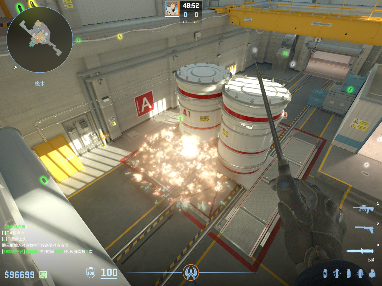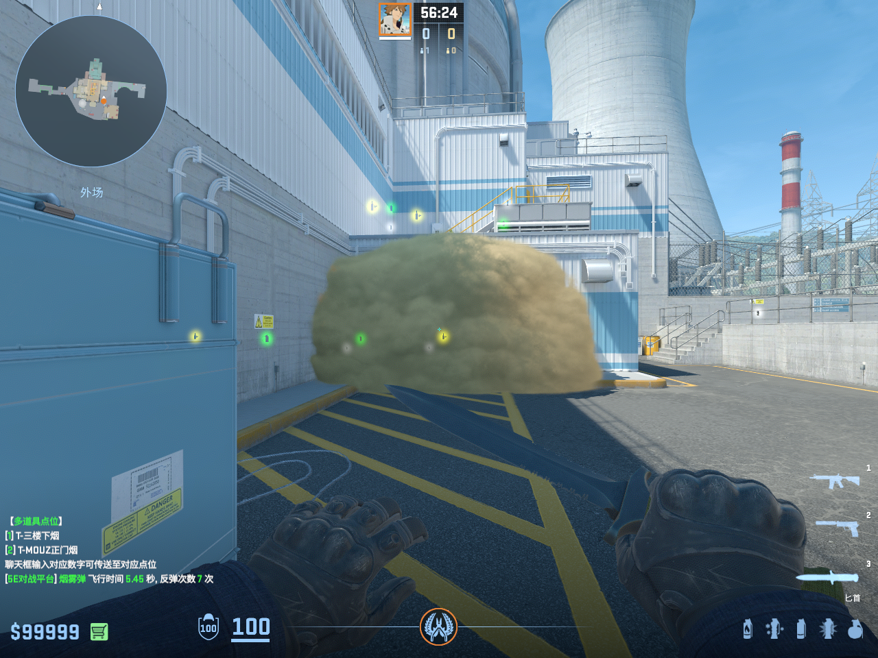 个 核子危机 投掷物教学, 包含烟雾弹、闪光弹、燃烧瓶、手雷等多种道具类型, 覆盖T方和CT方战术需求。