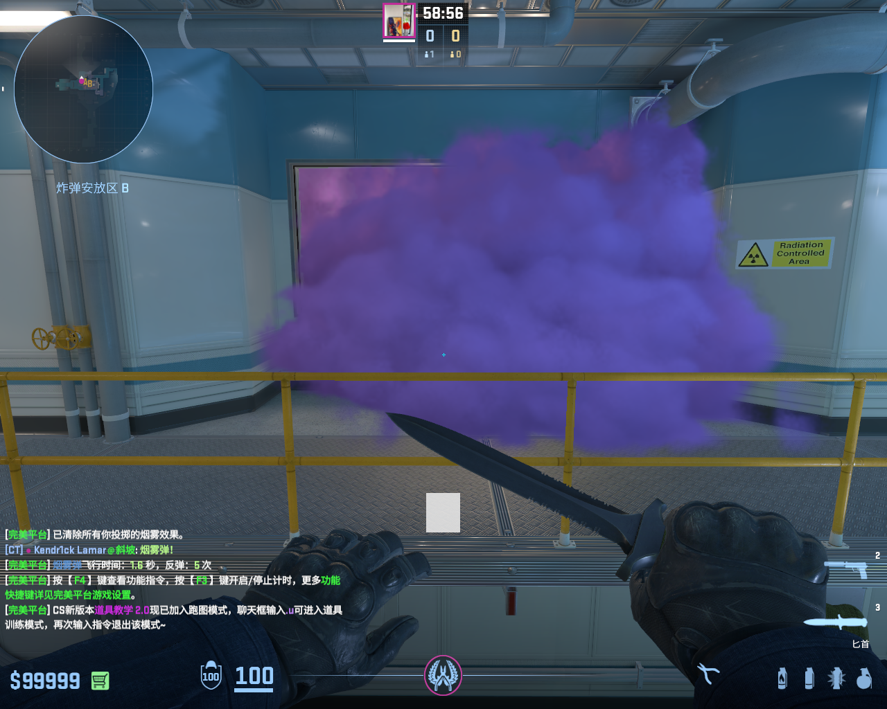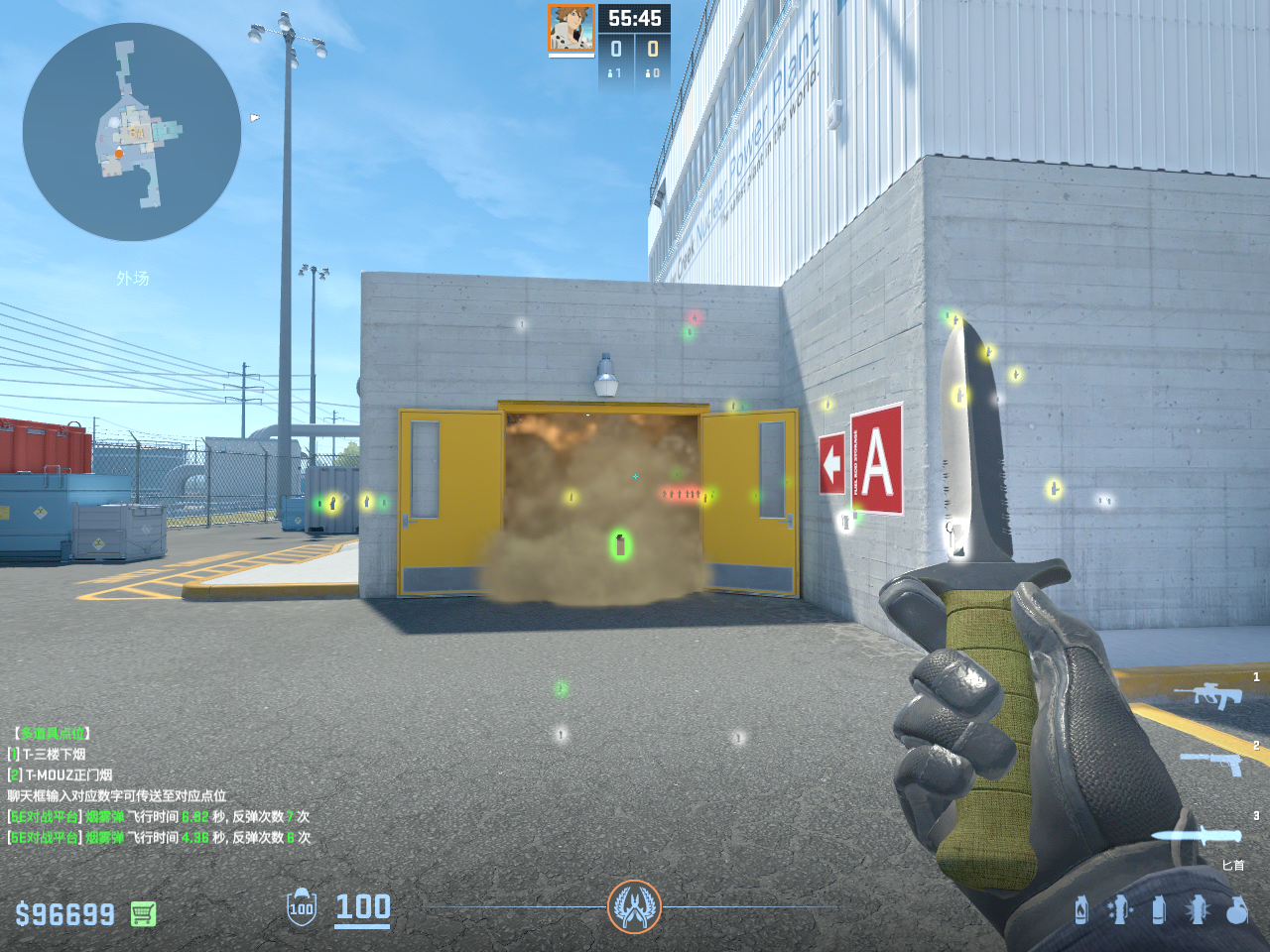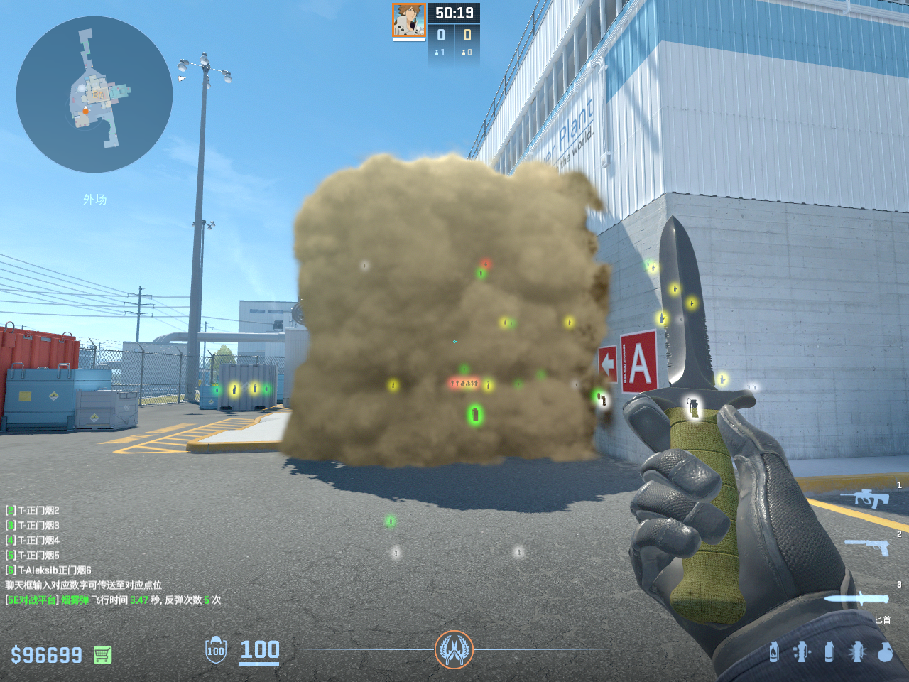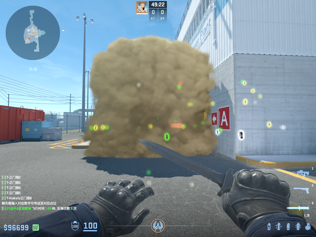 个 核子危机 投掷物教学, 包含烟雾弹、闪光弹、燃烧瓶、手雷等多种道具类型, 覆盖T方和CT方战术需求。
