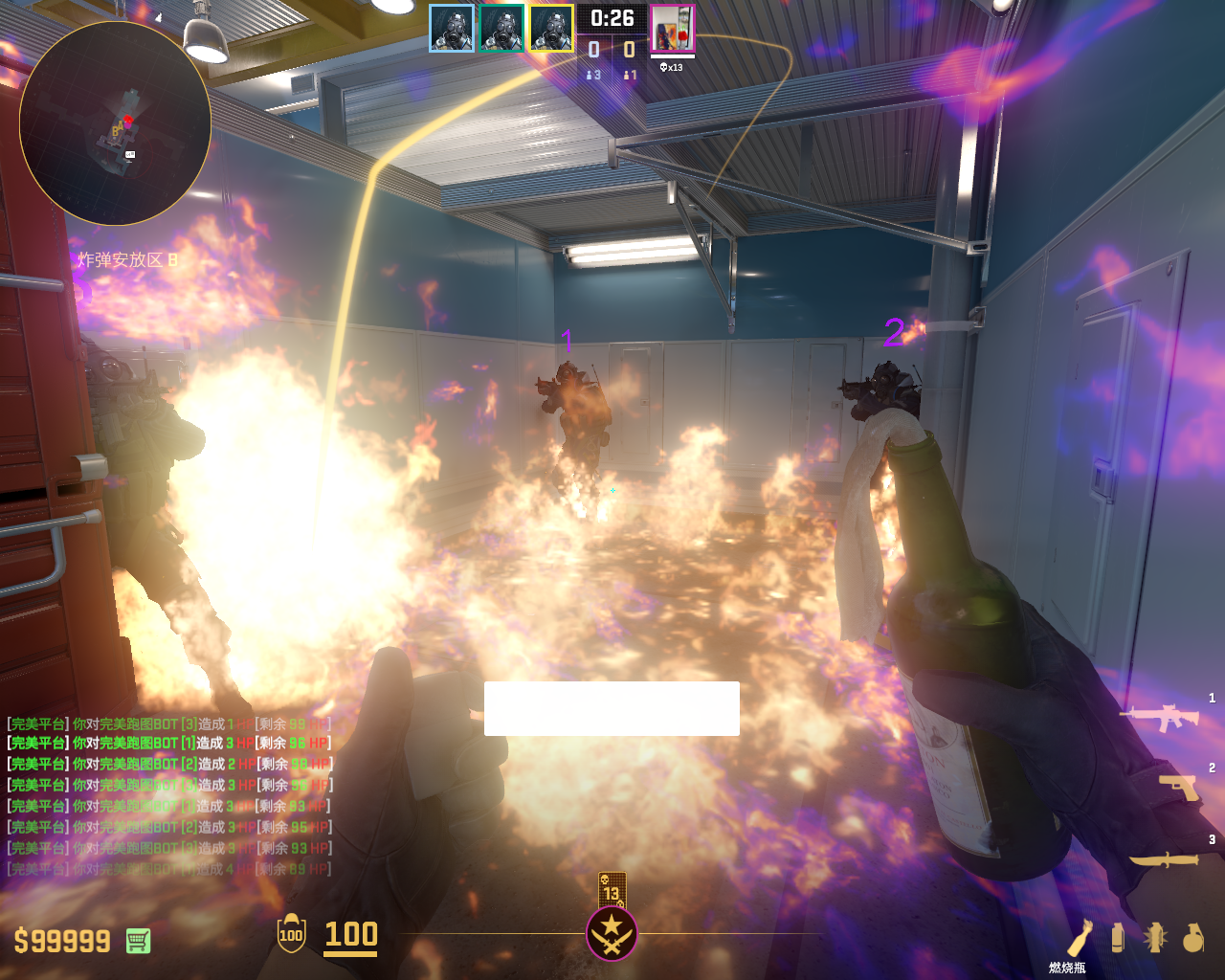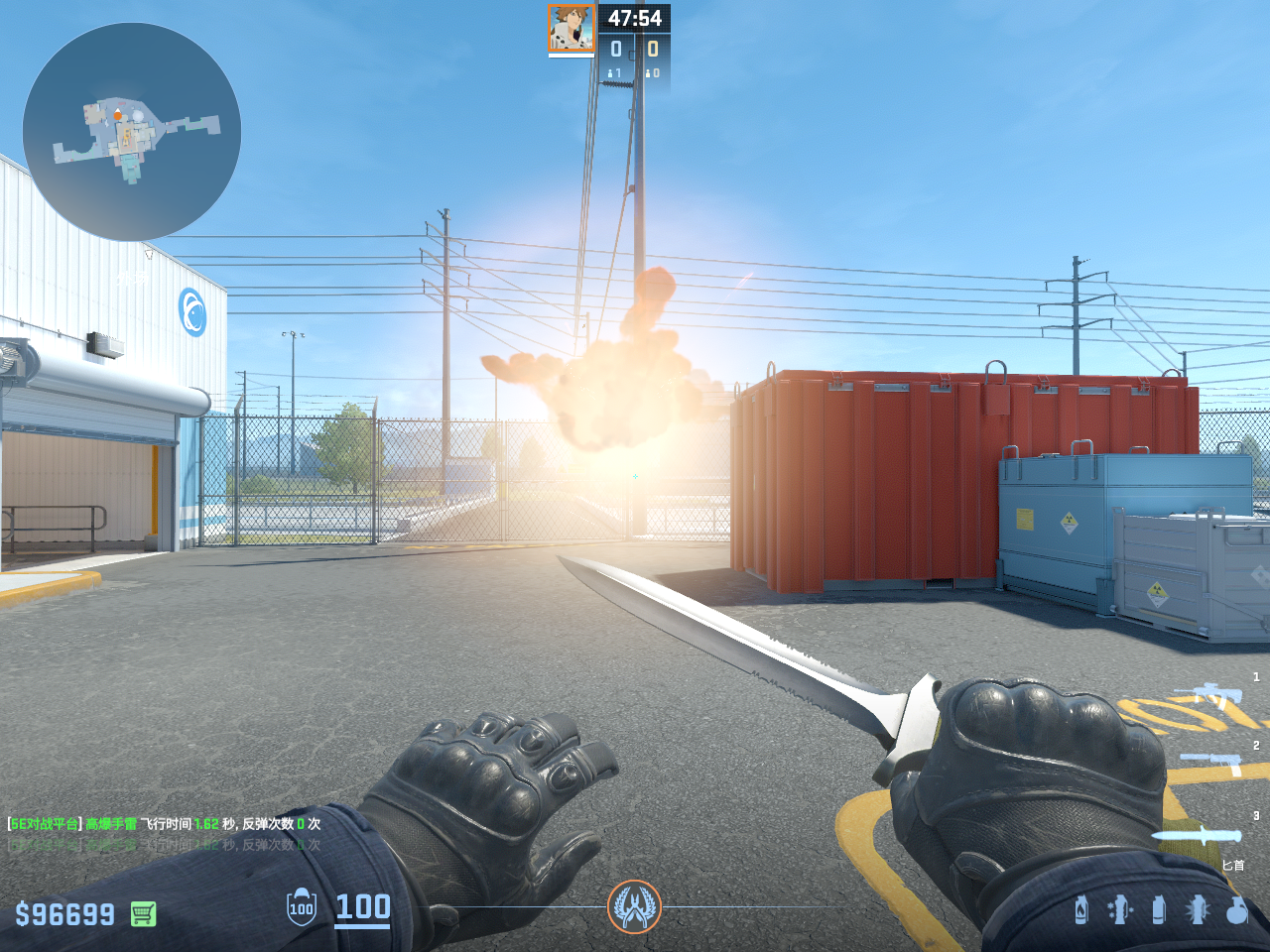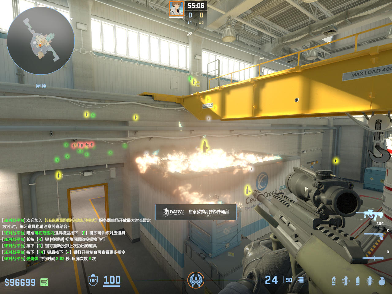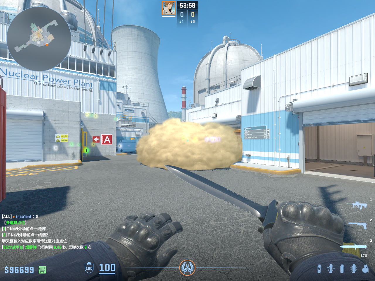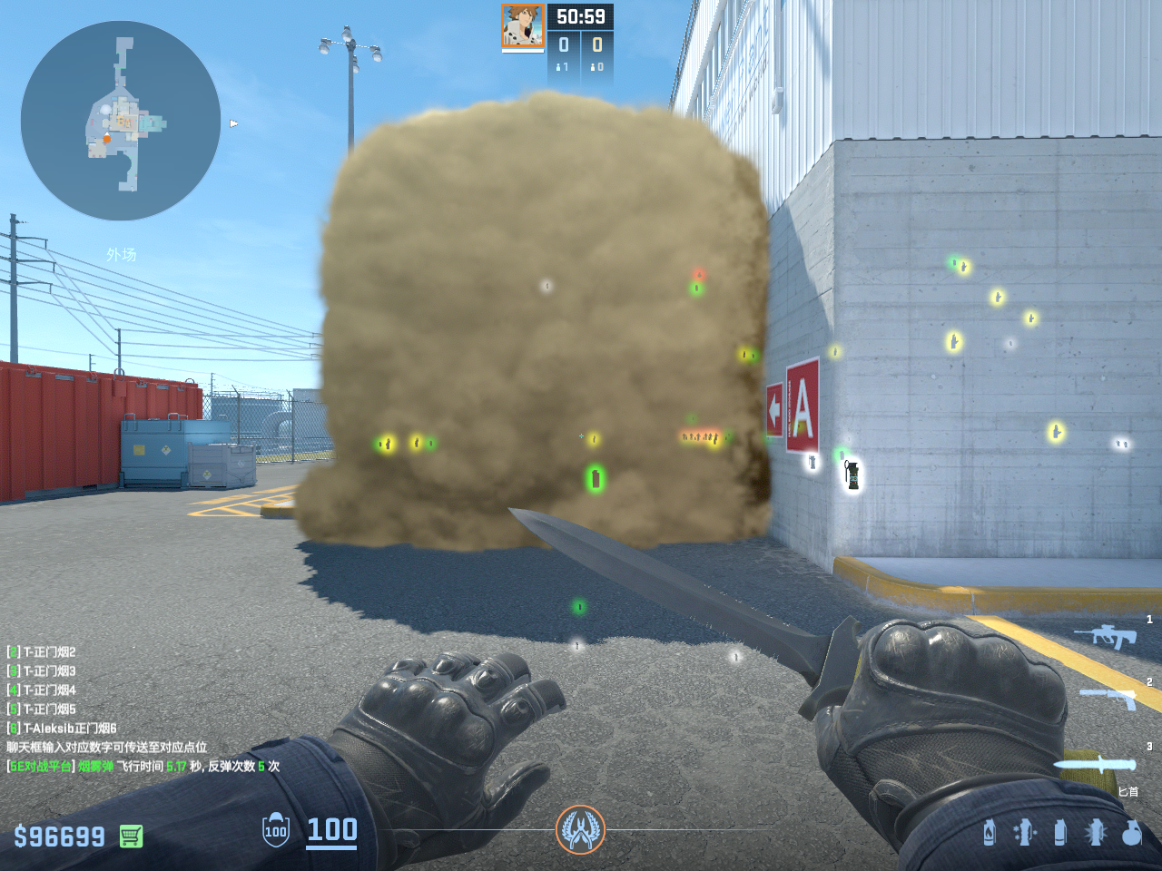 个 核子危机 投掷物教学, 包含烟雾弹、闪光弹、燃烧瓶、手雷等多种道具类型, 覆盖T方和CT方战术需求。