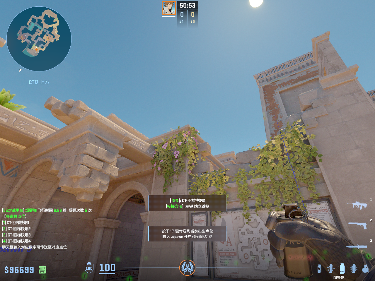 一点多用的闪光 但只能白玻璃房和死点直架的敌人 不白出门队友只适合在此处丢完警家烟雾弹顺手丢出