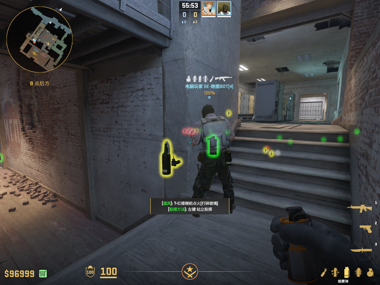 满封连接深处,阻止敌人回防b区,需要破窗