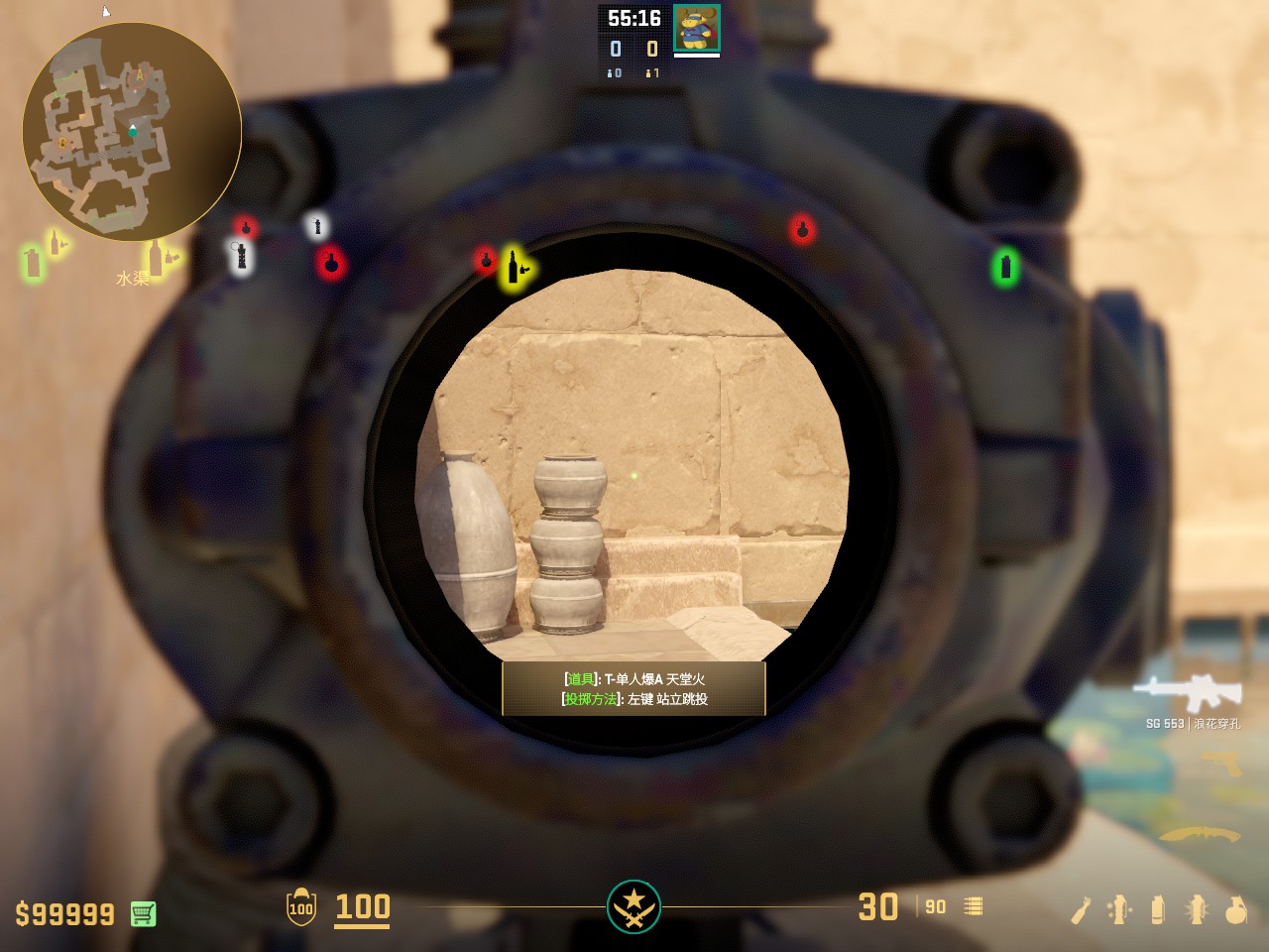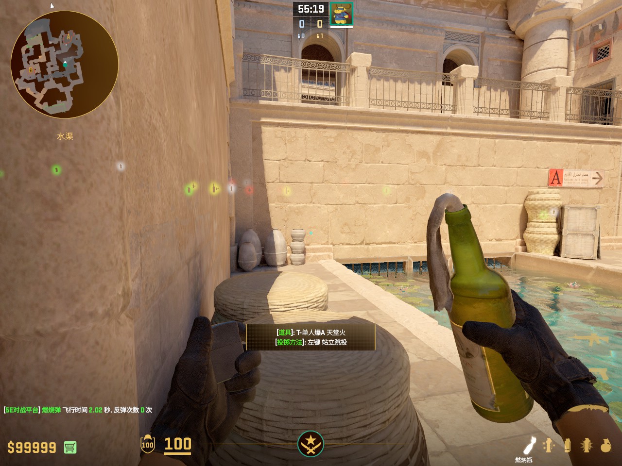 在A外二楼常规爆弹烧缺口的火 容错较高 走一步丢即可