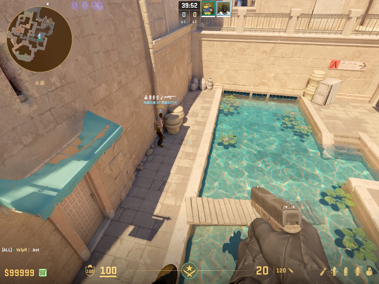 A外水下左侧中间死角(注意 卡住墙体死角 而不是枪和罐子)