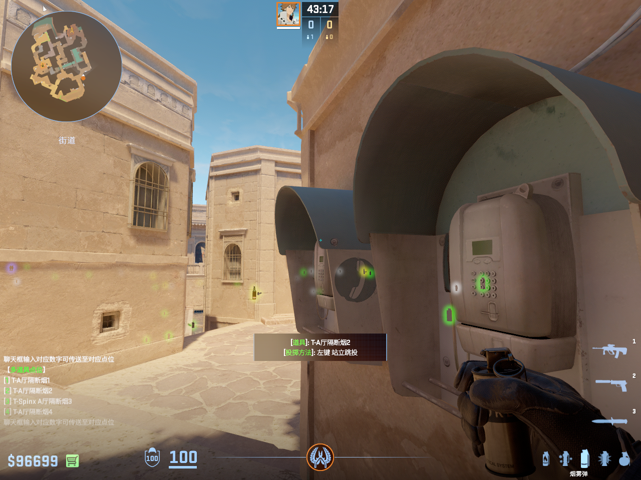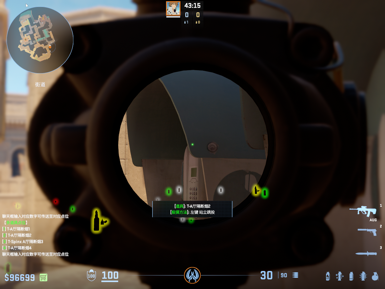 一点多用的闪光 但只能白玻璃房和死点直架的敌人 不白出门队友只适合在此处丢完警家烟雾弹顺手丢出