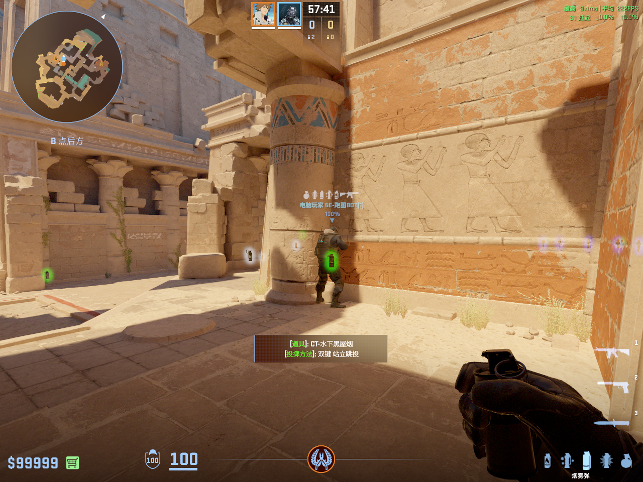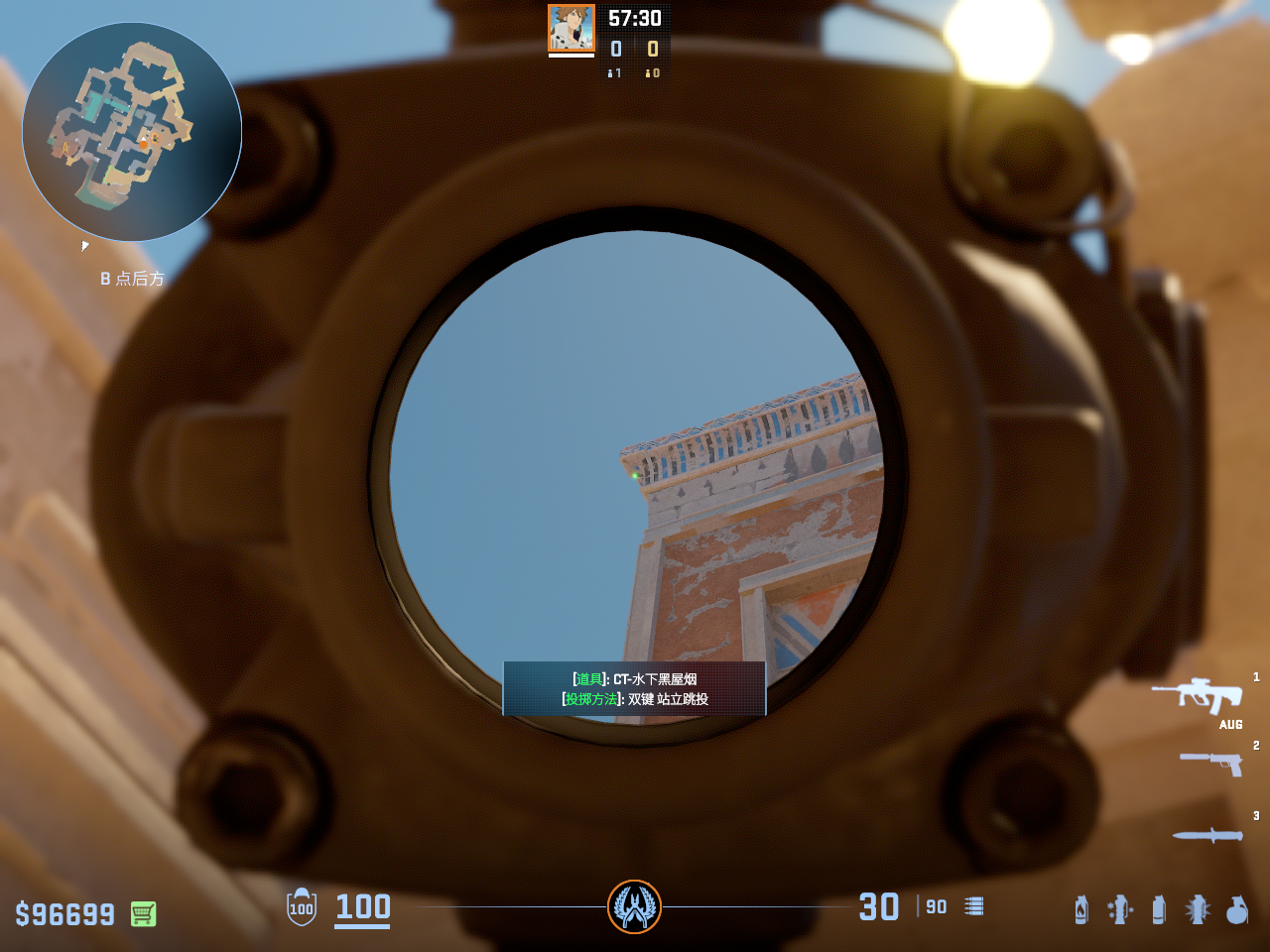 一点多用的闪光 但只能白玻璃房和死点直架的敌人 不白出门队友只适合在此处丢完警家烟雾弹顺手丢出