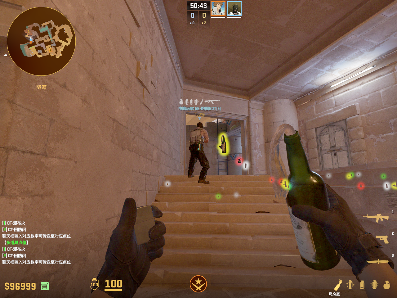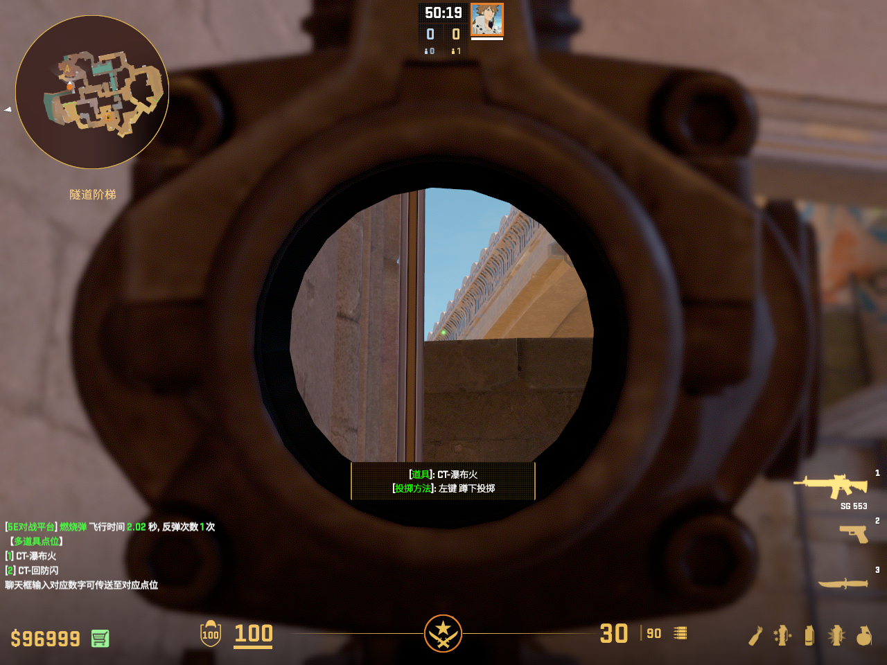 在A外二楼常规爆弹烧缺口的火 容错较高 走一步丢即可