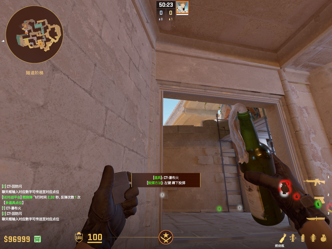 用于第一时间抢中路 配合VIP火和闪光 也可以第二时间清中路 但是中路右侧贴墙烧不满