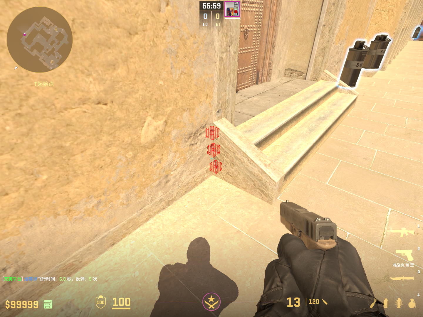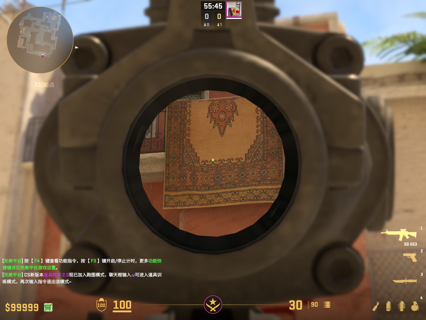 瞄准抹布第二块图案中间夹角左键跳投