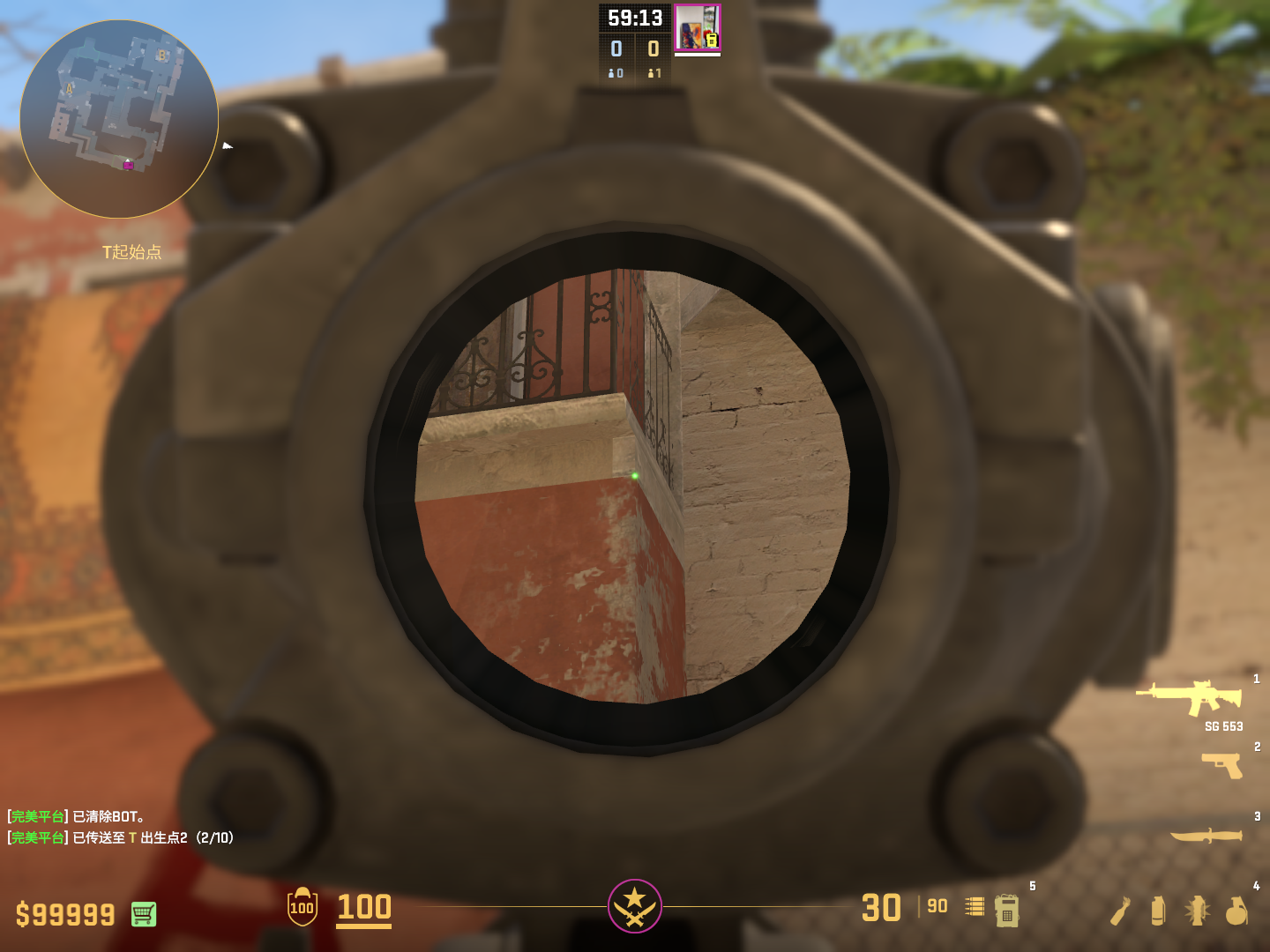 瞄准白色柱子右下角W+跳投