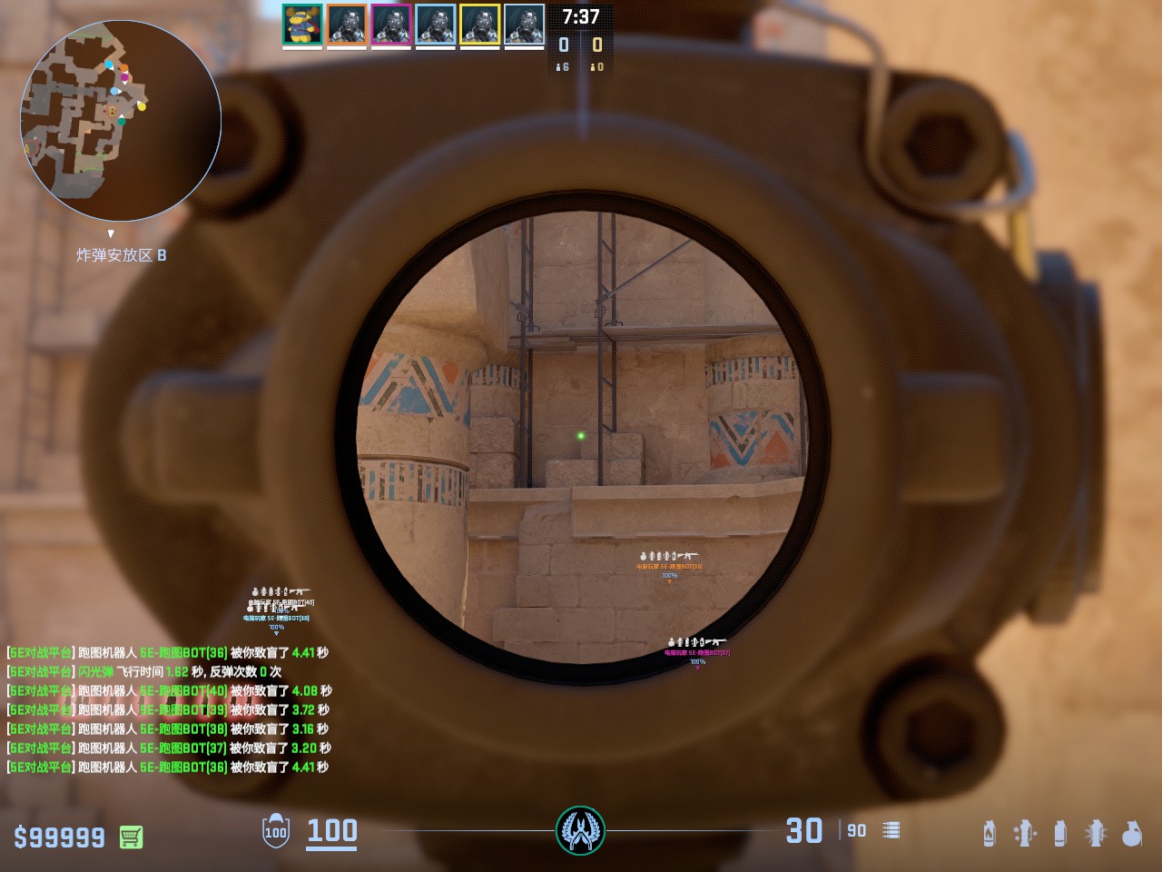 第一时间清B外的第二颗闪光 在队友出去后丢 不会白到队友