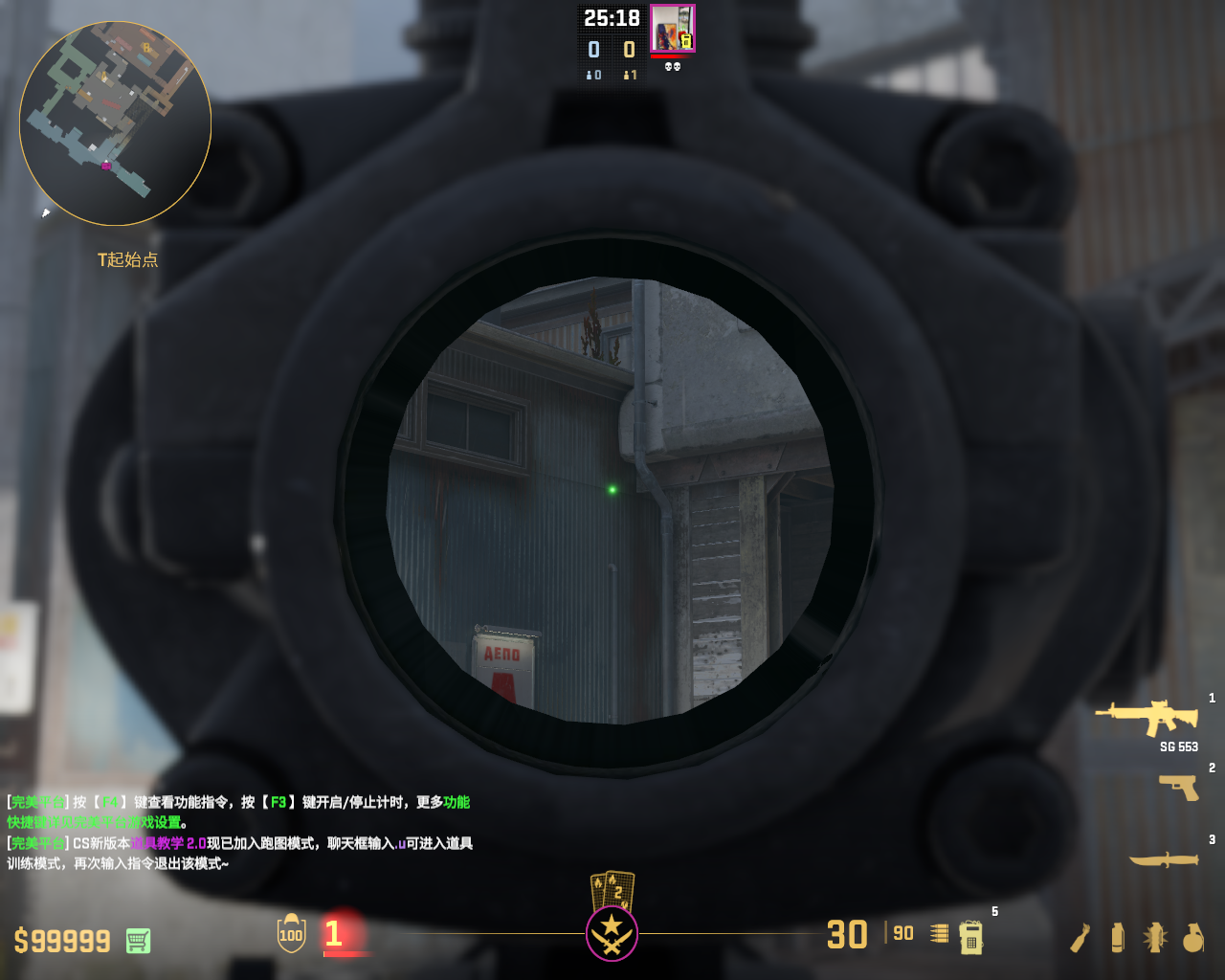 对准匪家高低墙中间柱子,瞄点时屏幕中门上的灯紧贴近点的墙