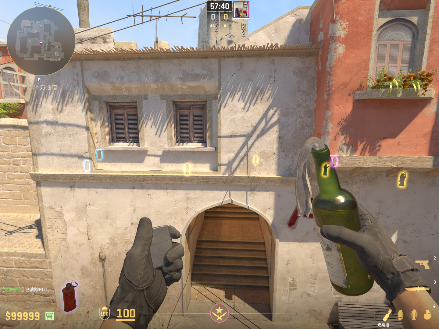 残局队友下B小包后防止CT拆包