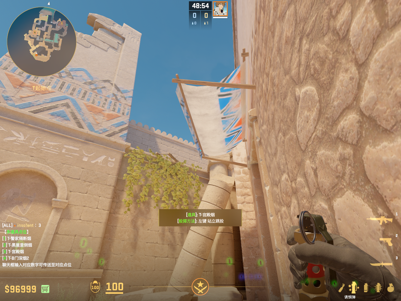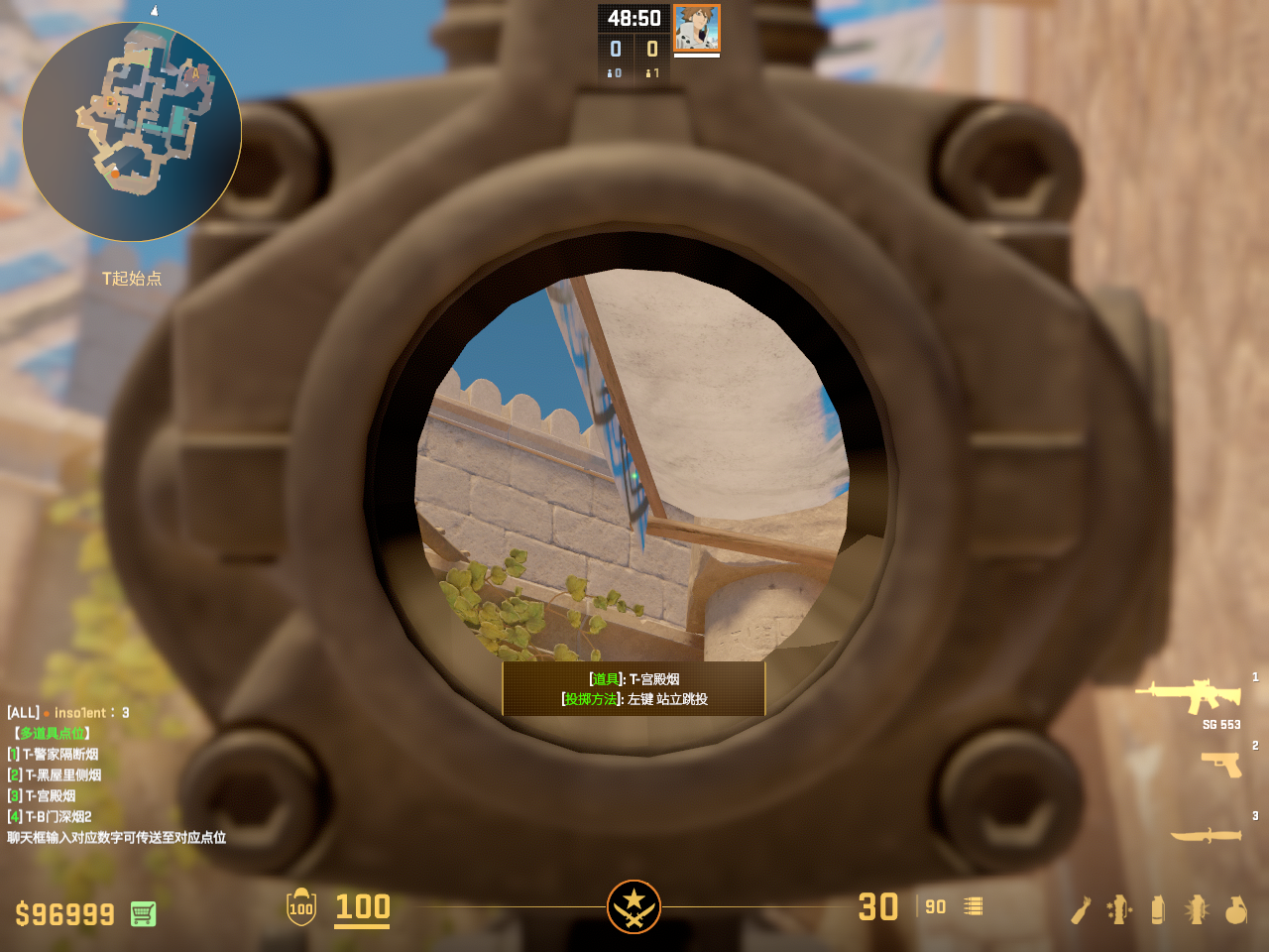一点多用的闪光 但只能白玻璃房和死点直架的敌人 不白出门队友只适合在此处丢完警家烟雾弹顺手丢出