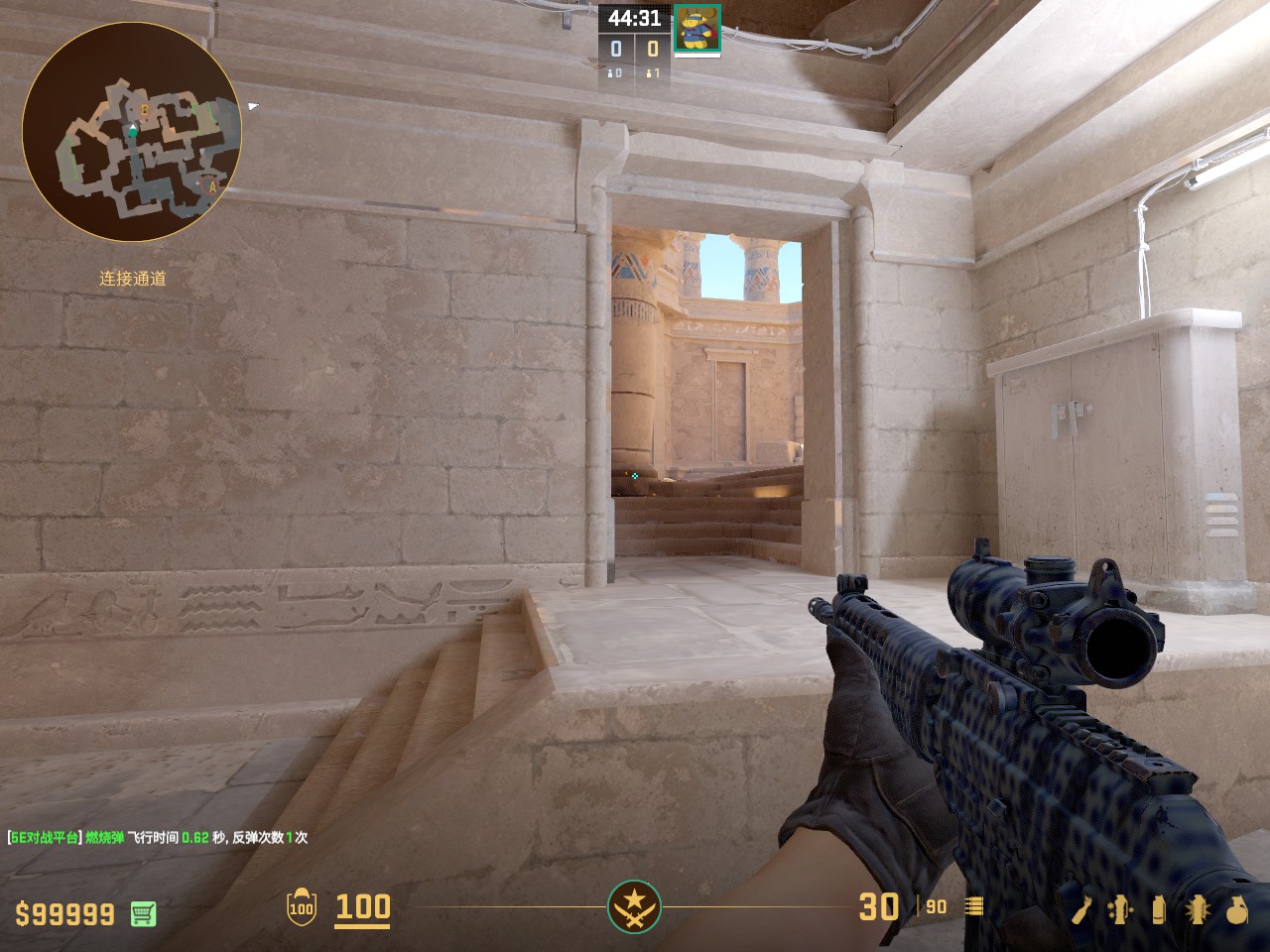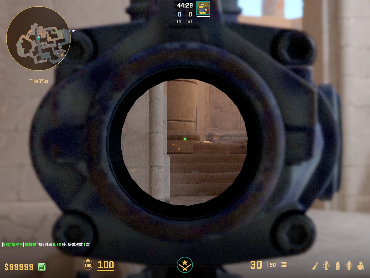 在A外二楼常规爆弹烧缺口的火 容错较高 走一步丢即可
