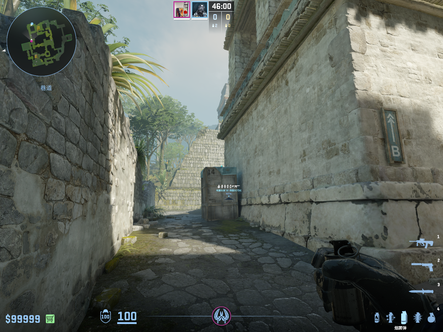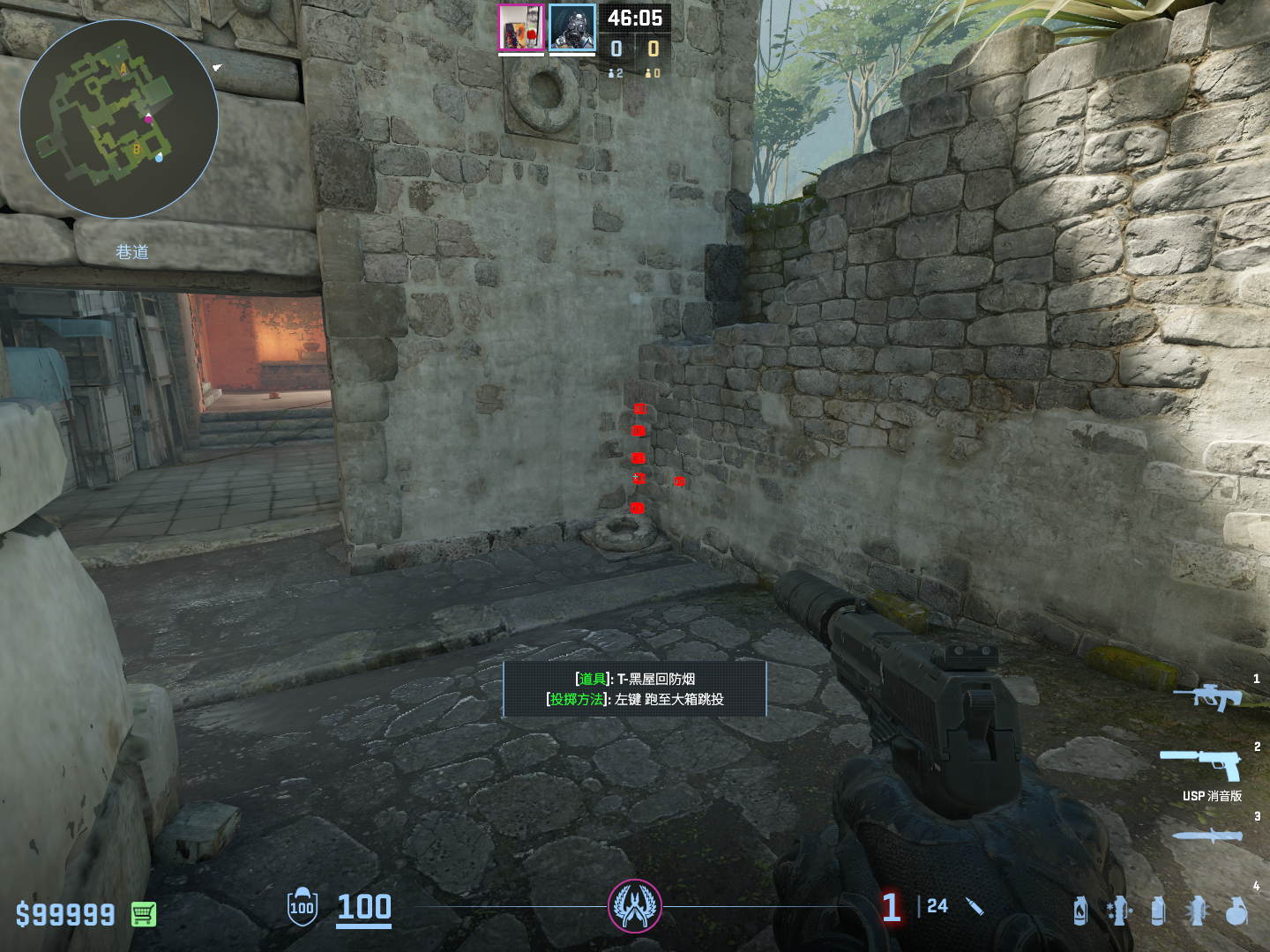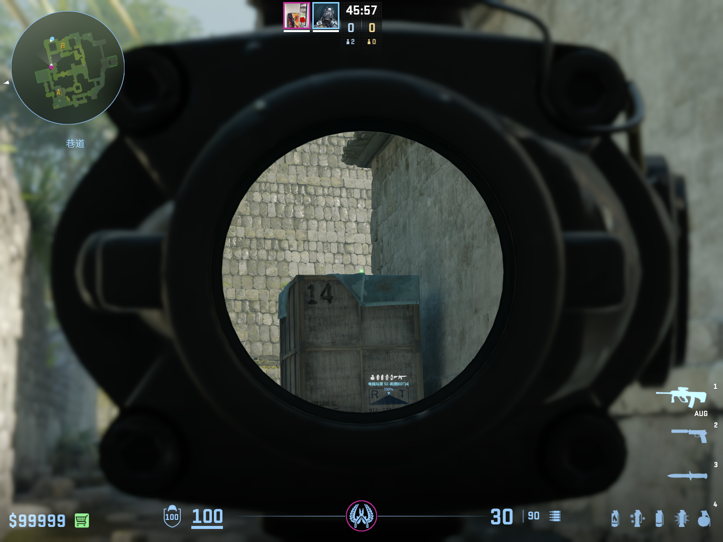 瞄准箱子蓝布突起处跑到快顶到箱子左键跳投