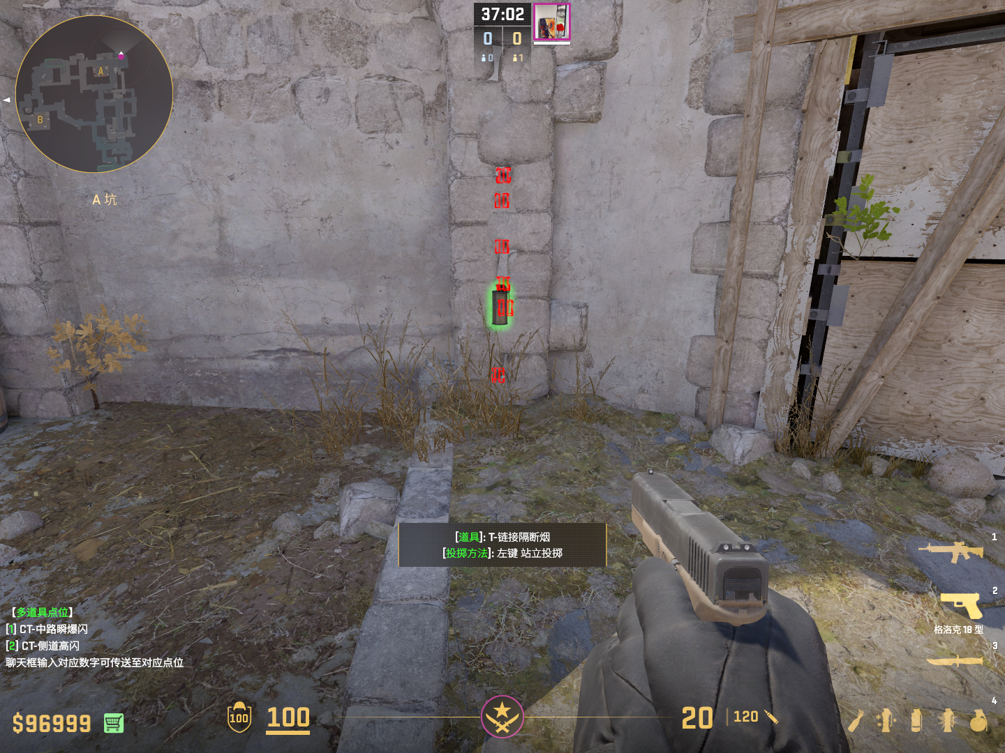顶住大坑右边突出墙面