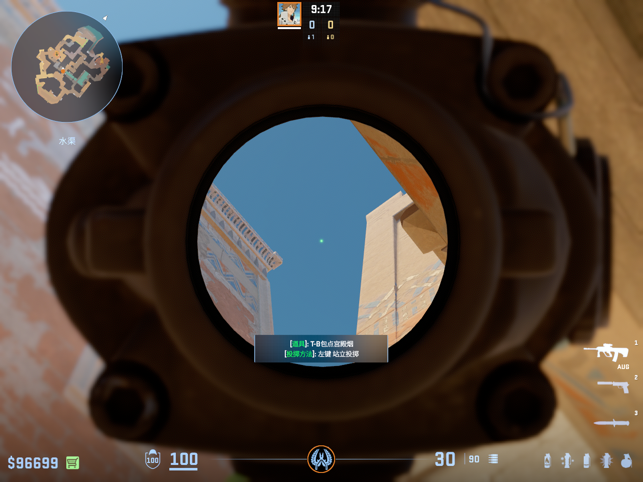 一点多用的闪光 但只能白玻璃房和死点直架的敌人 不白出门队友只适合在此处丢完警家烟雾弹顺手丢出