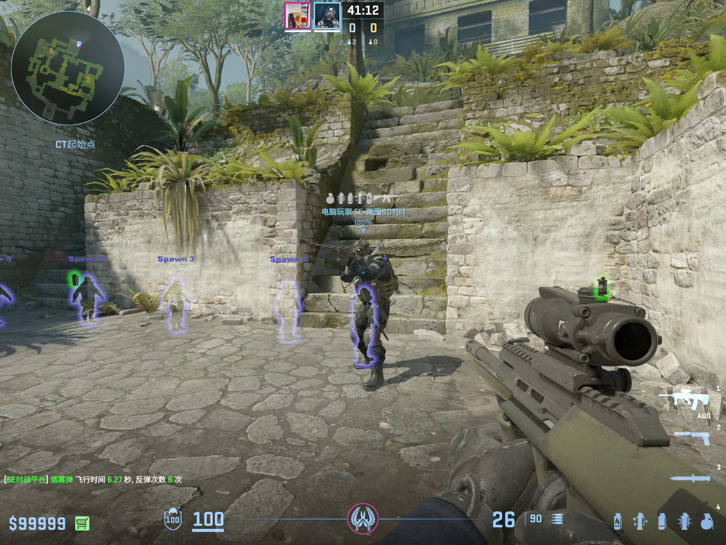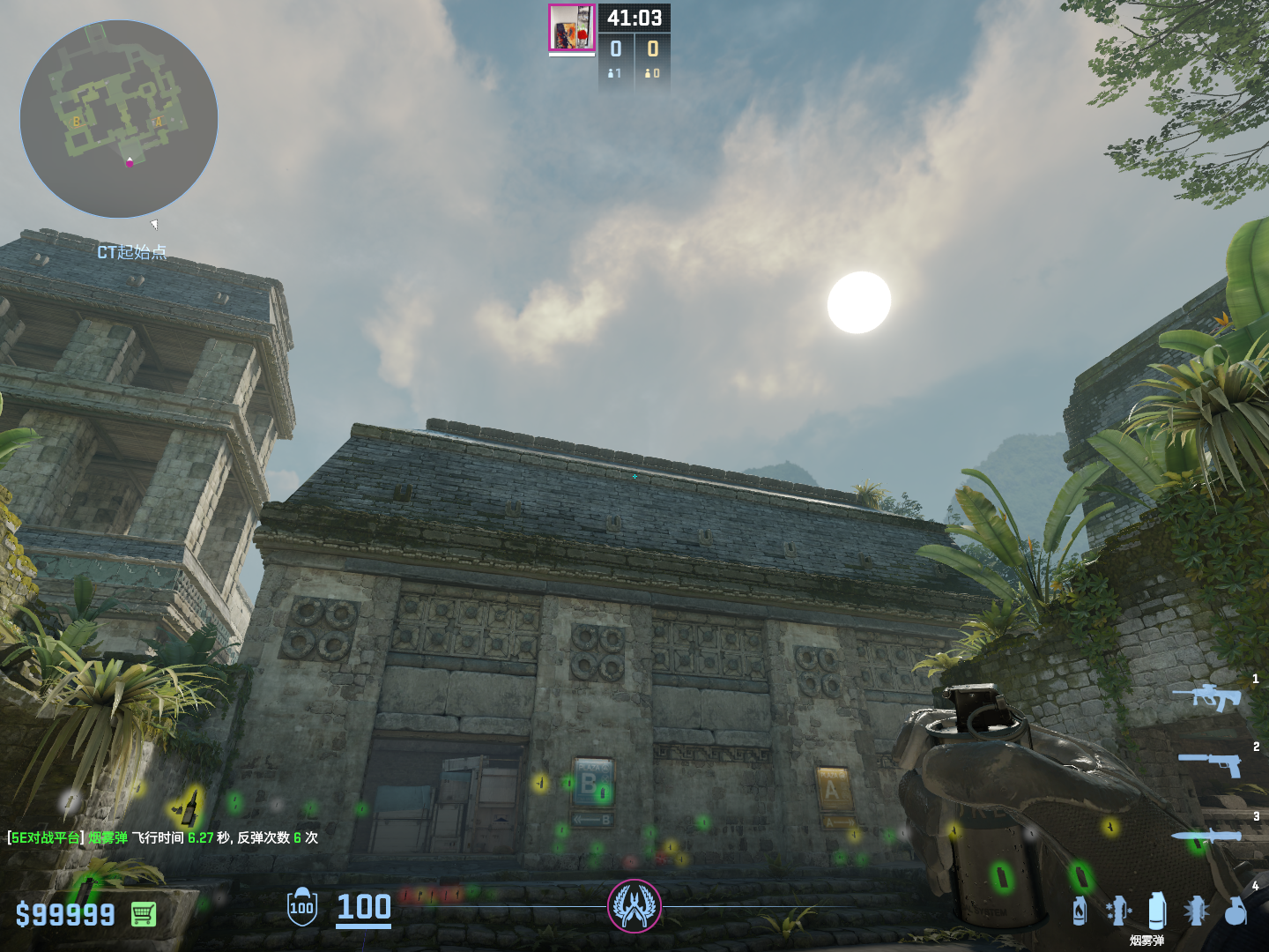 瞄准字母U右边上方砖块中间静步走一步左键跳投