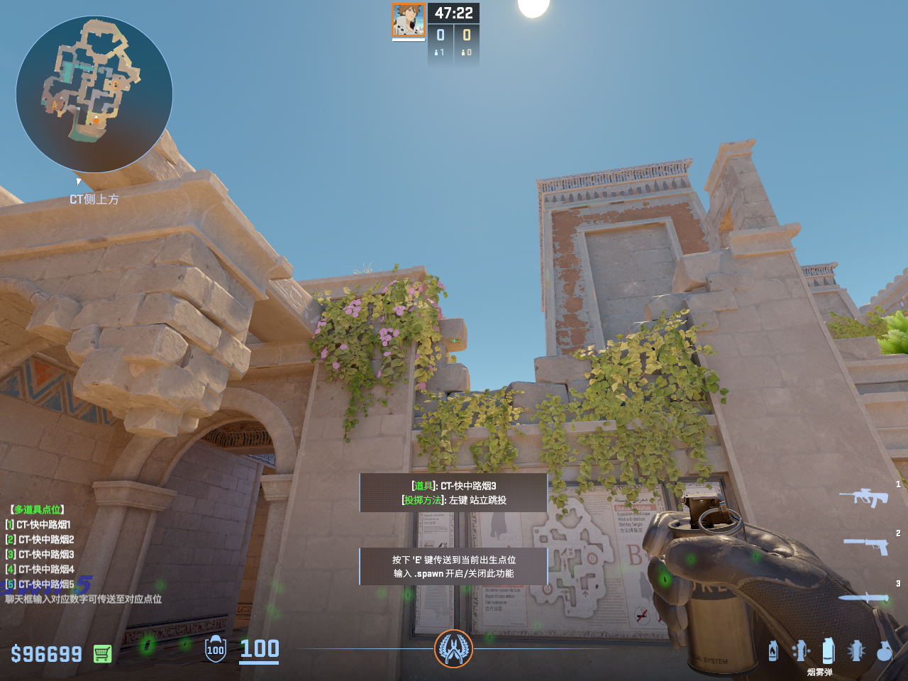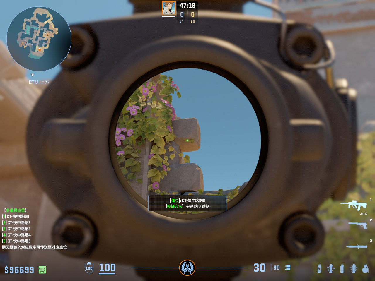 一点多用的闪光 但只能白玻璃房和死点直架的敌人 不白出门队友只适合在此处丢完警家烟雾弹顺手丢出