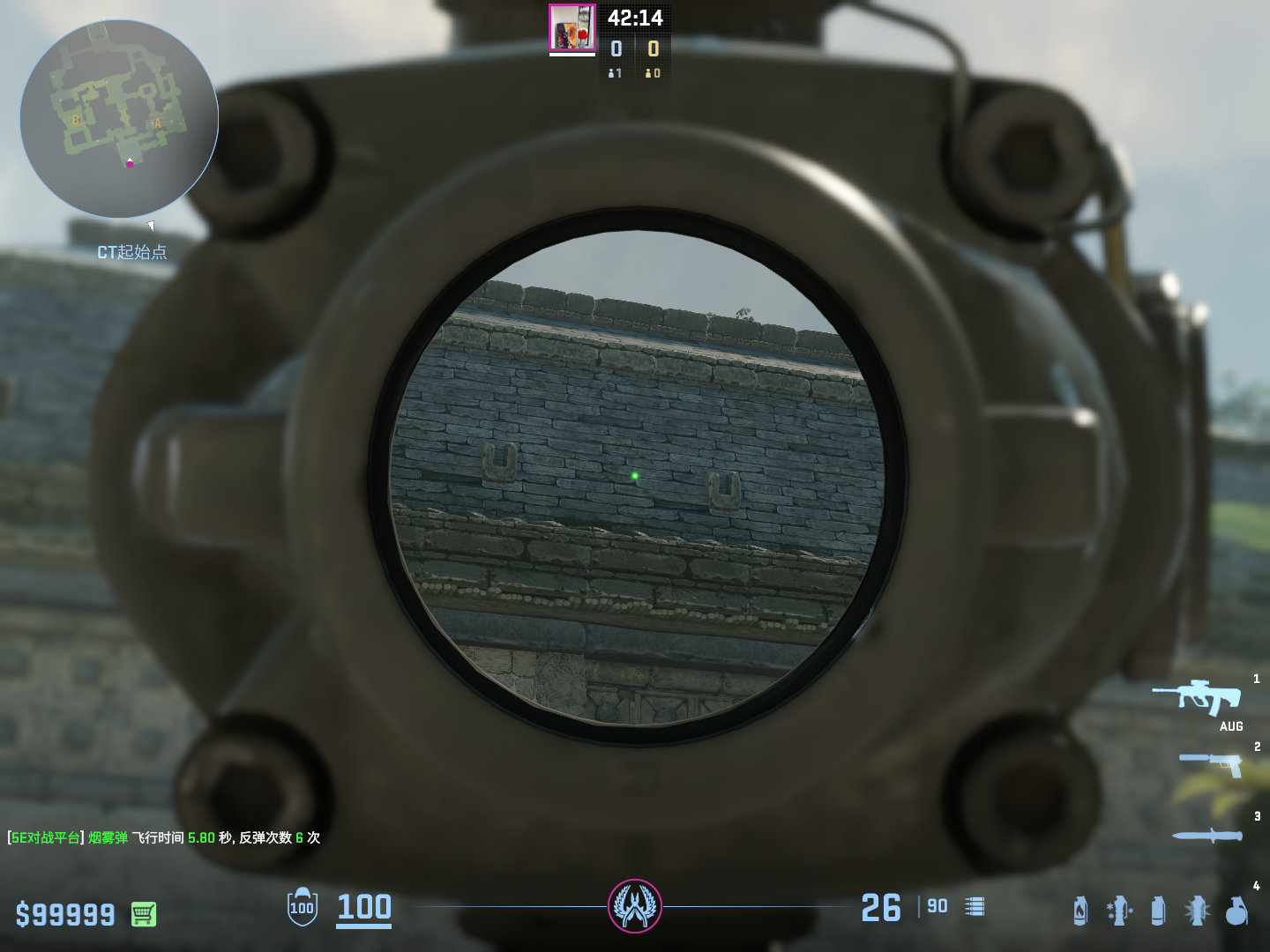 瞄准中间黑色砖块右上角静步走一步左键跳投