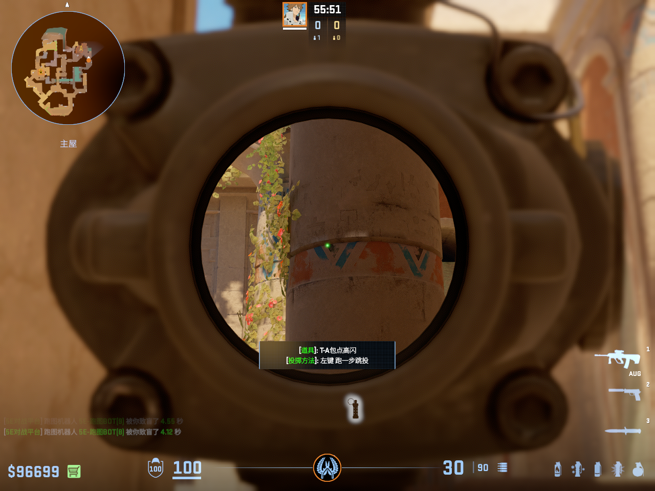 敌人离B门太近会白不到 所以适合第二时间队友自己弹一颗身后闪再出去