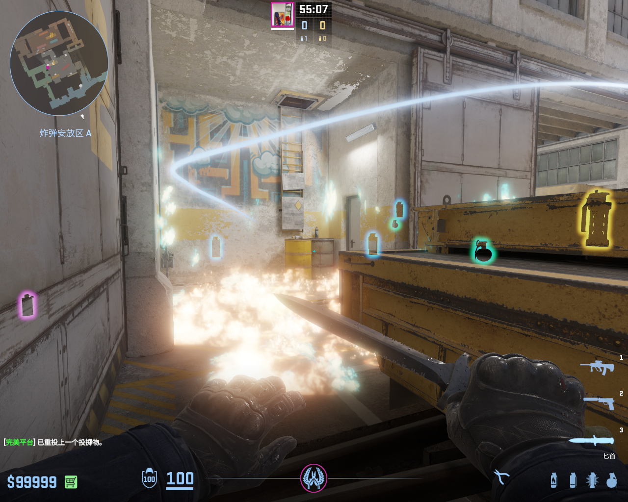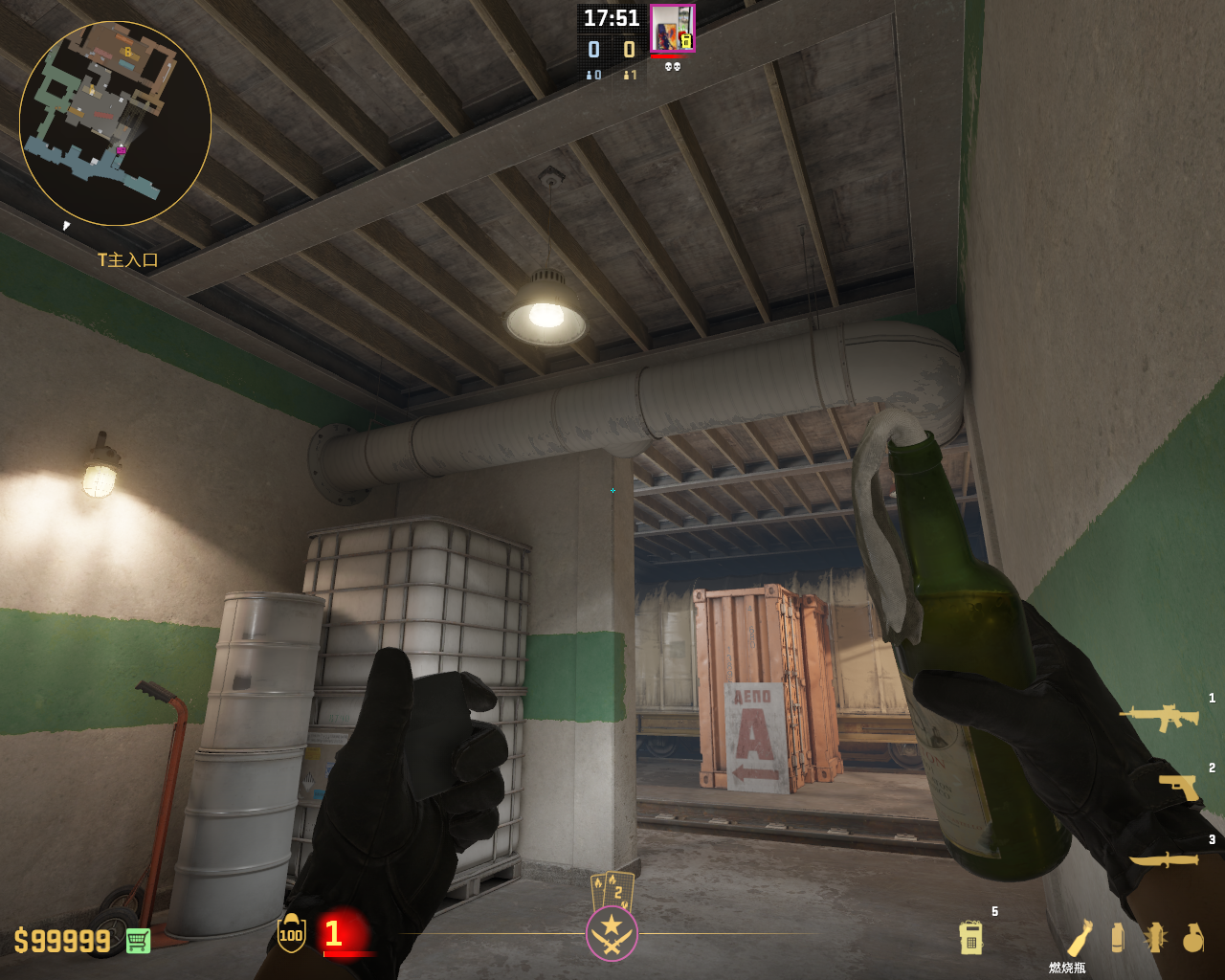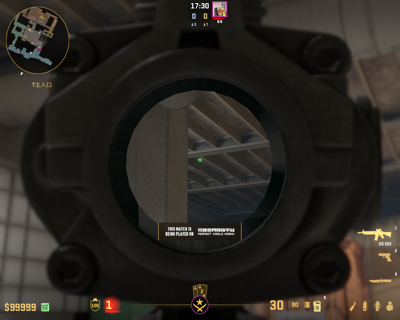 向右贴墙蹭,蹭到准星如图4位置时,站稳左键投掷