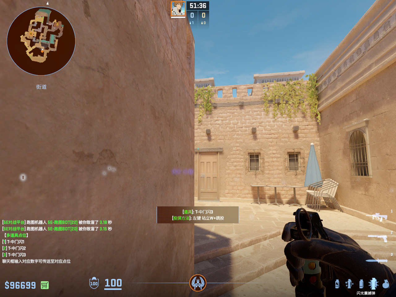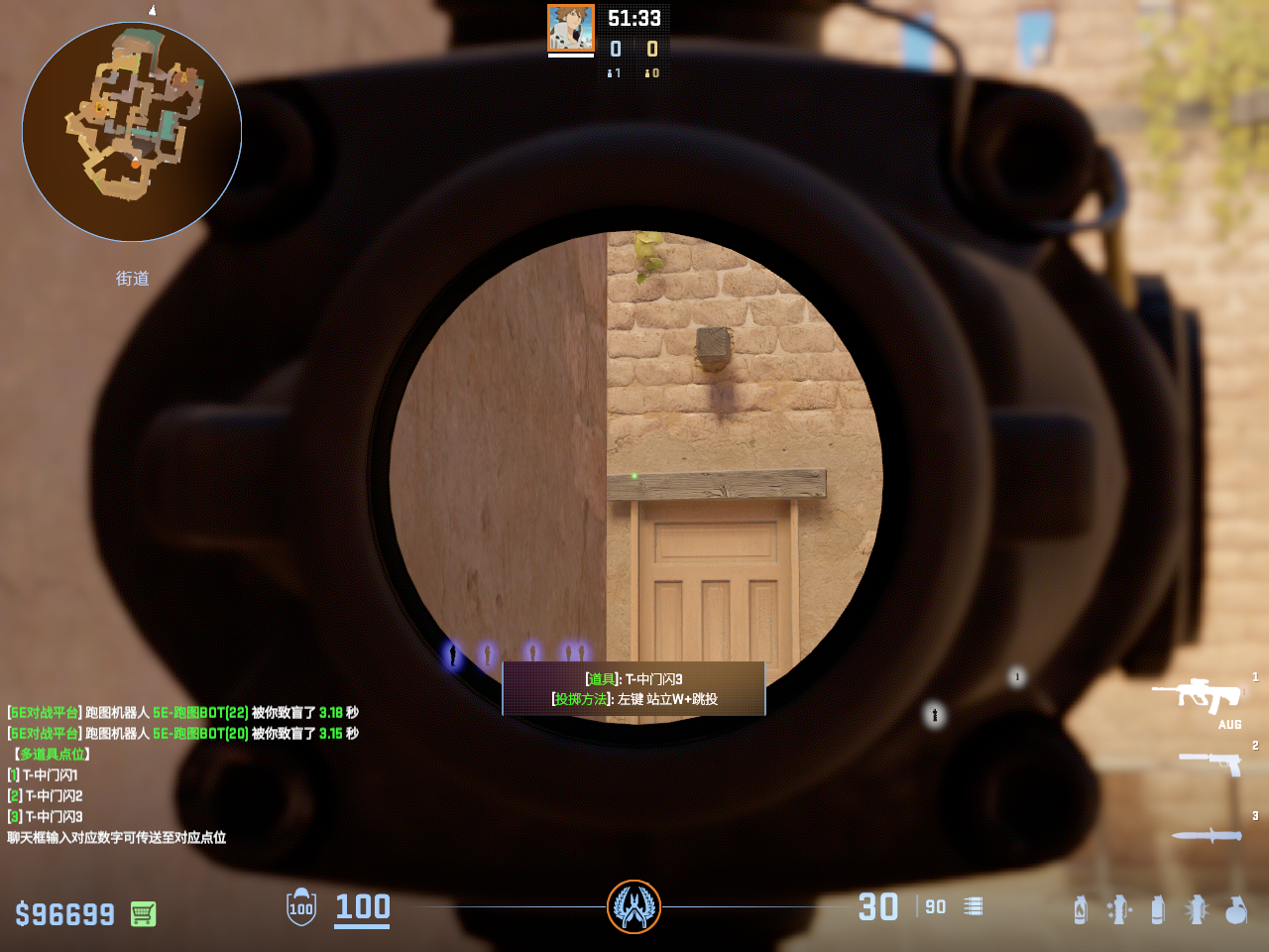敌人离B门太近会白不到 所以适合第二时间队友自己弹一颗身后闪再出去