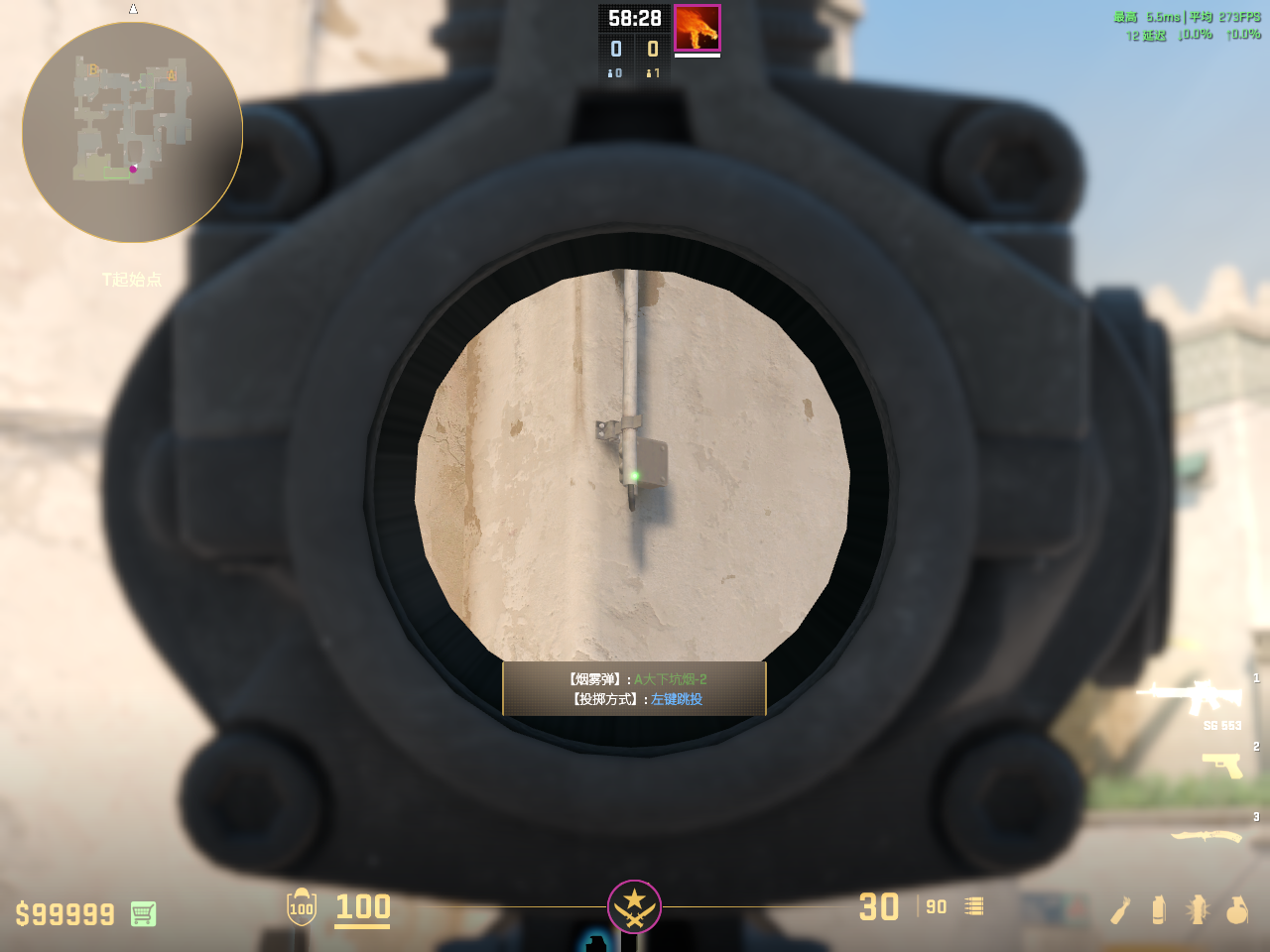 贴墙瞄准管子下端,左键跳投