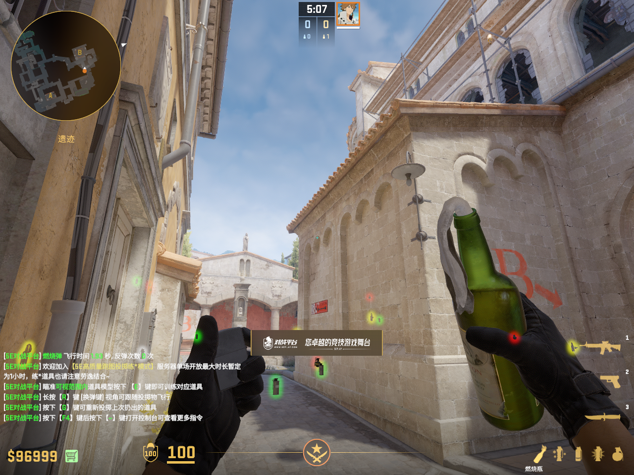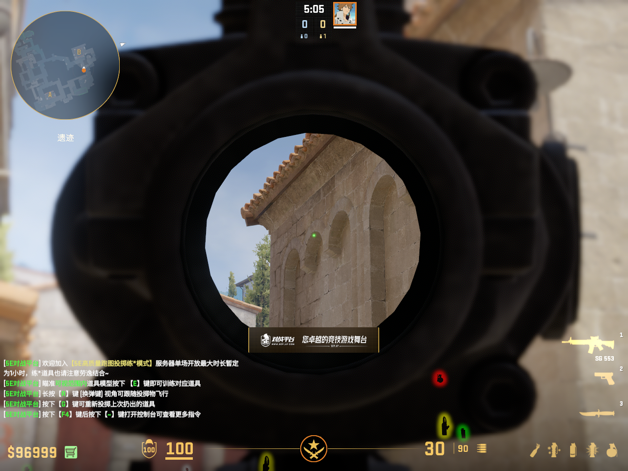 警家墙角,瞄好点后按住w+a向前走,走到墙边走不动时在丢