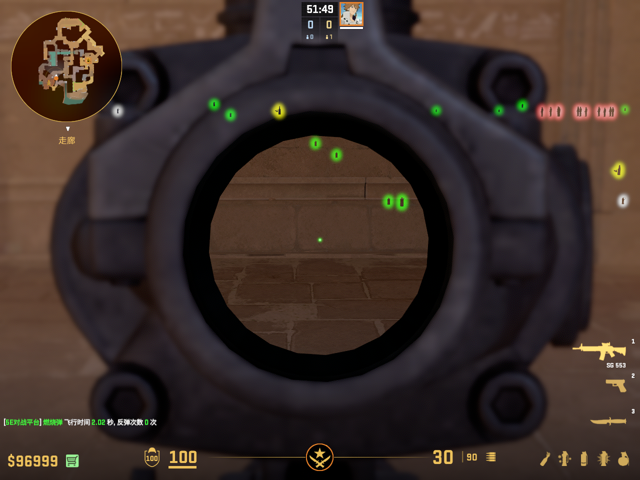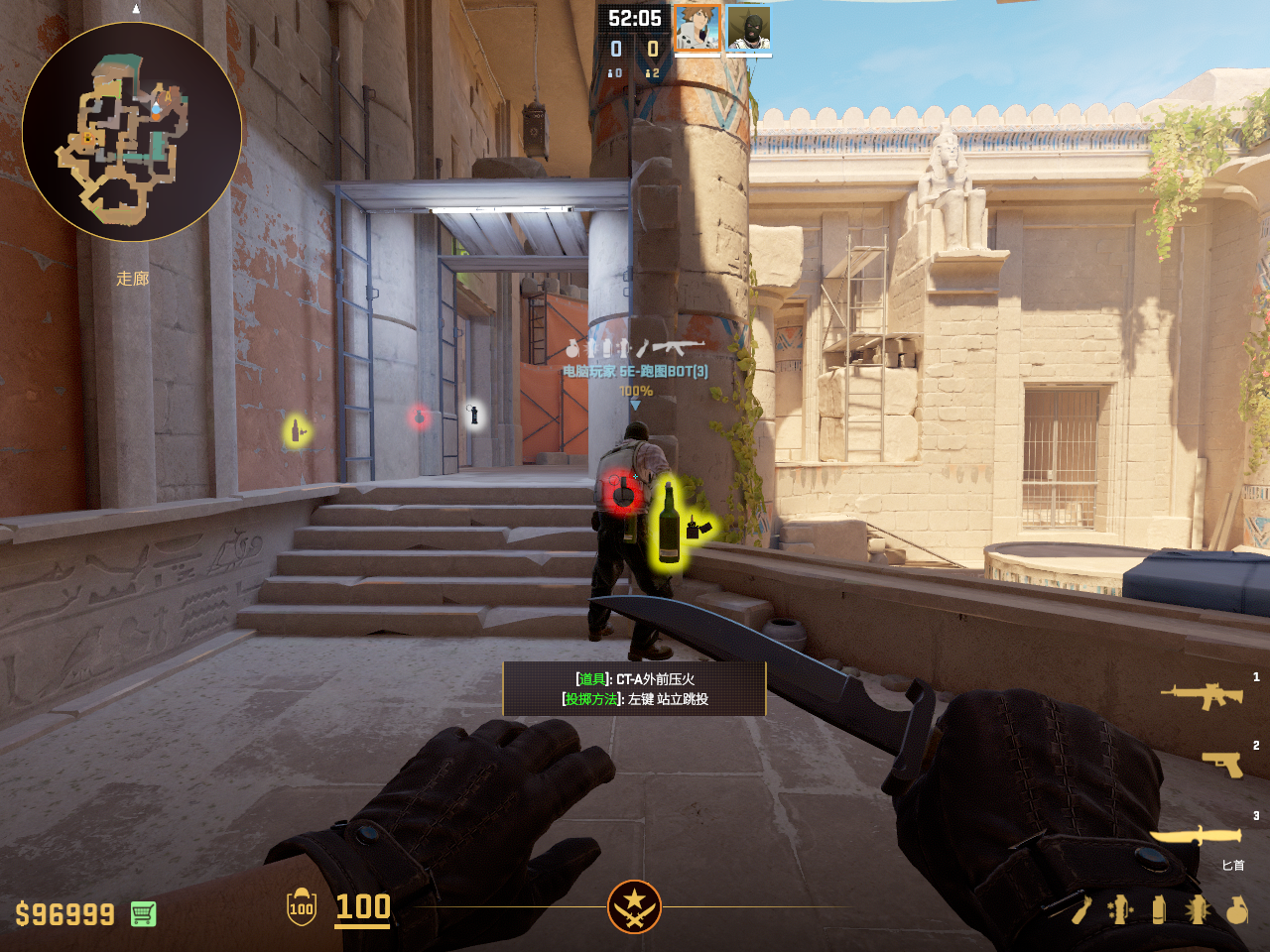 在A外二楼常规爆弹烧缺口的火 容错较高 走一步丢即可