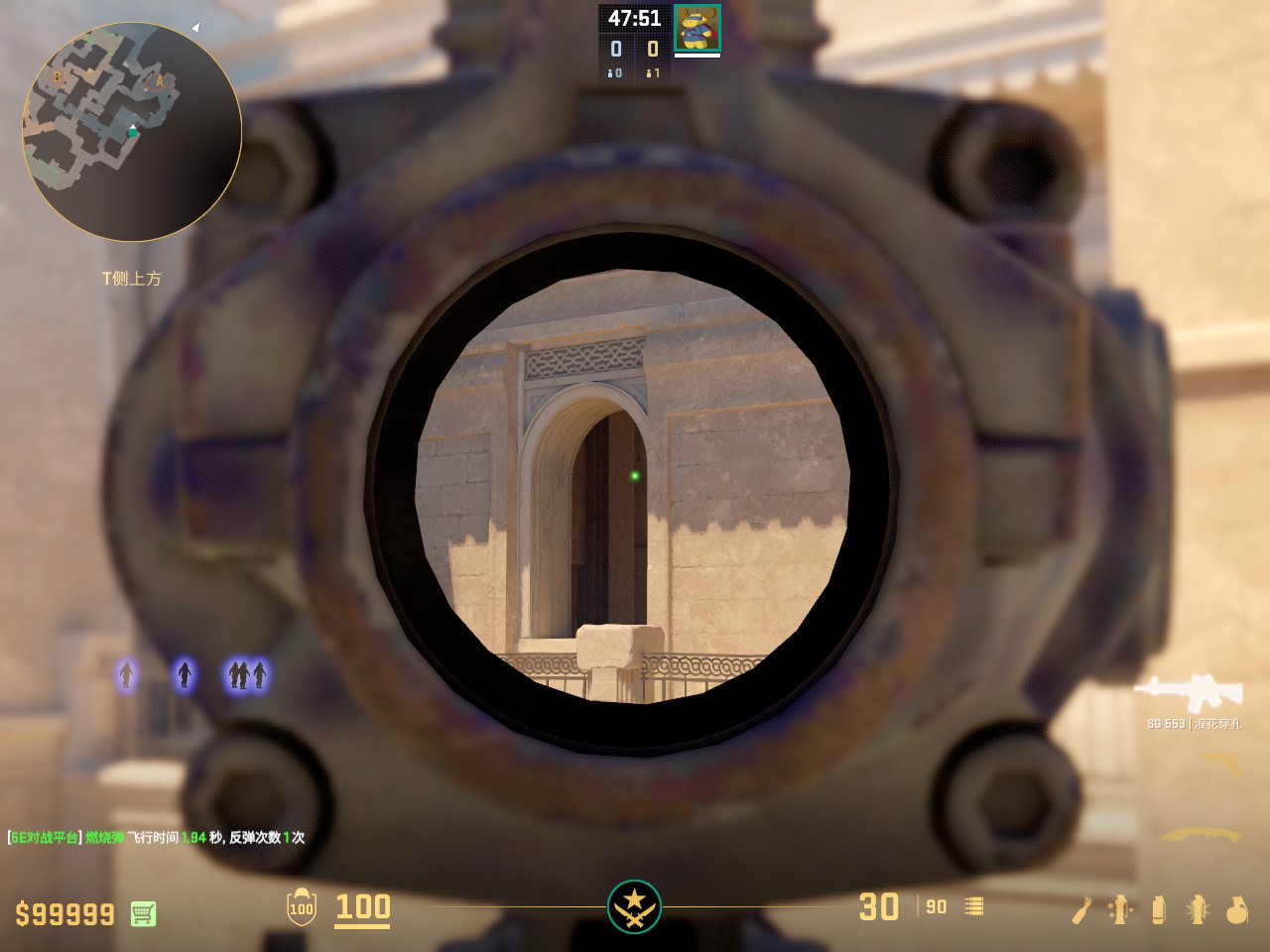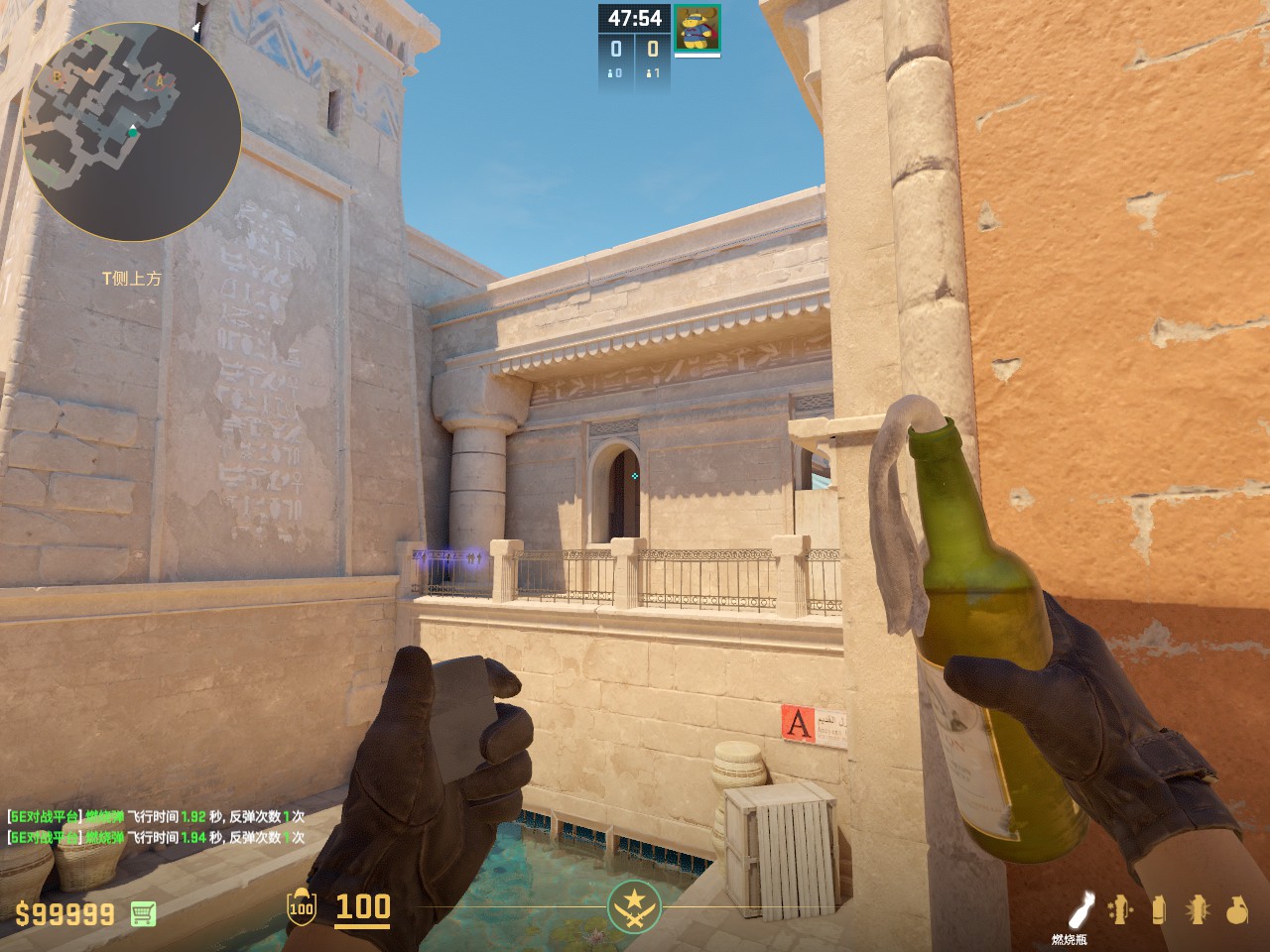 在A外二楼常规爆弹烧缺口的火 容错较高 走一步丢即可