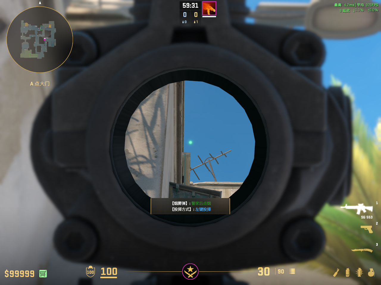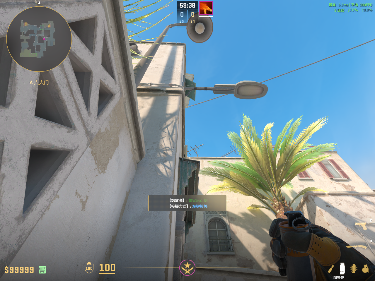 贴墙描房檐右侧,左键投掷