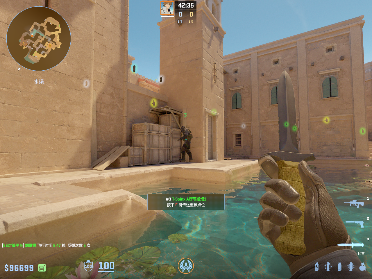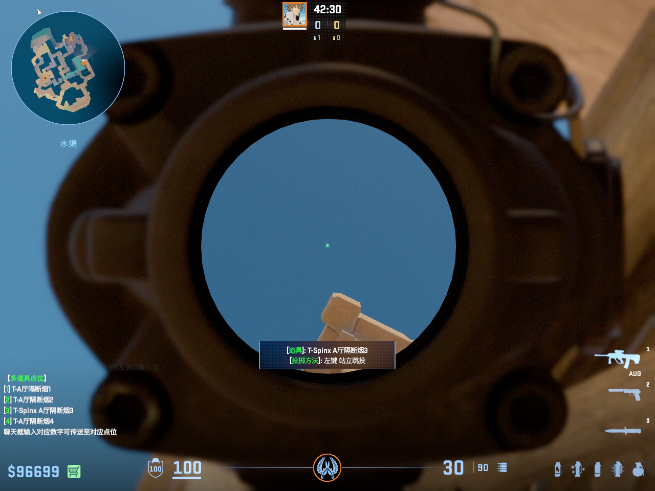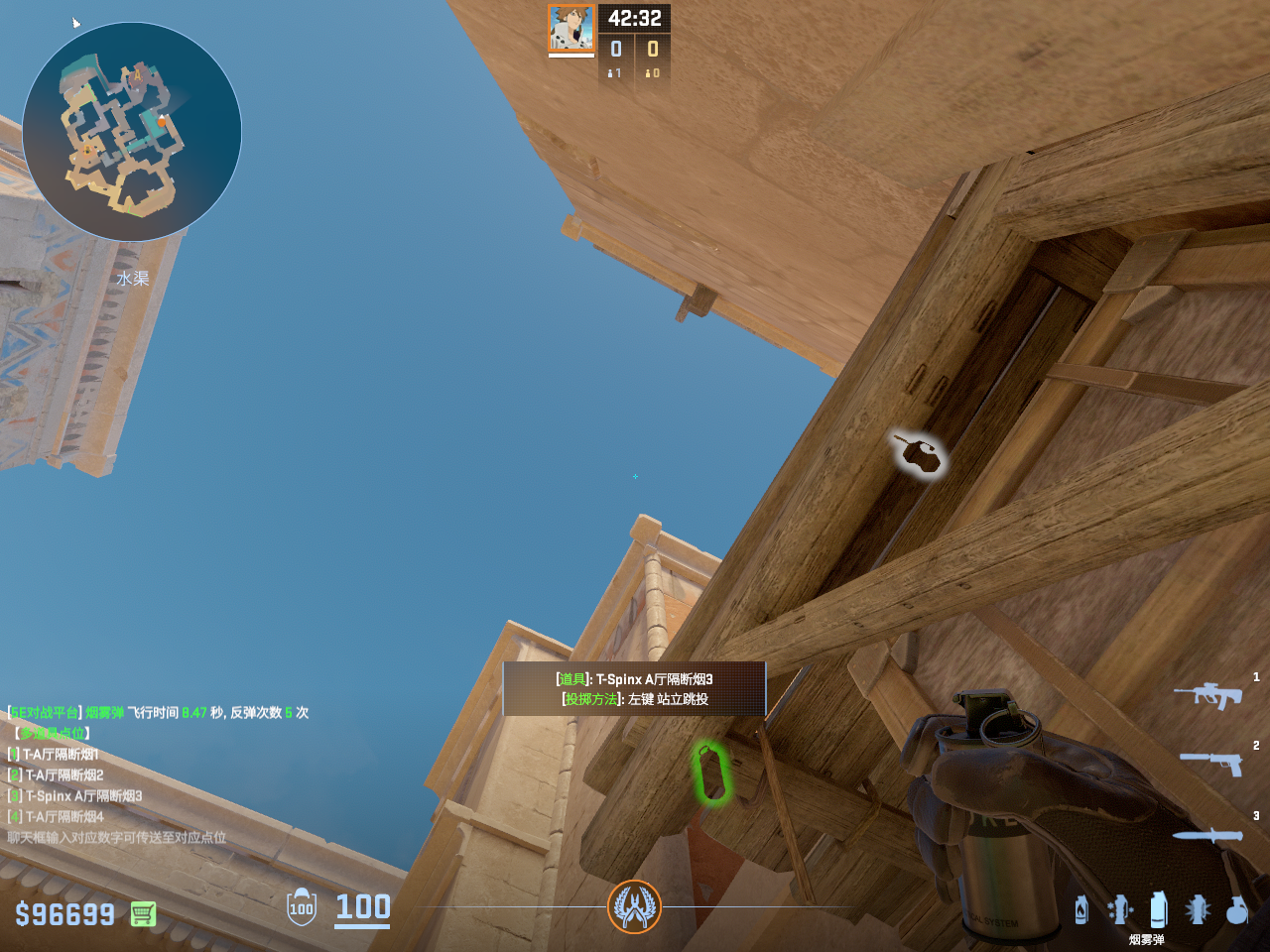 一点多用的闪光 但只能白玻璃房和死点直架的敌人 不白出门队友只适合在此处丢完警家烟雾弹顺手丢出