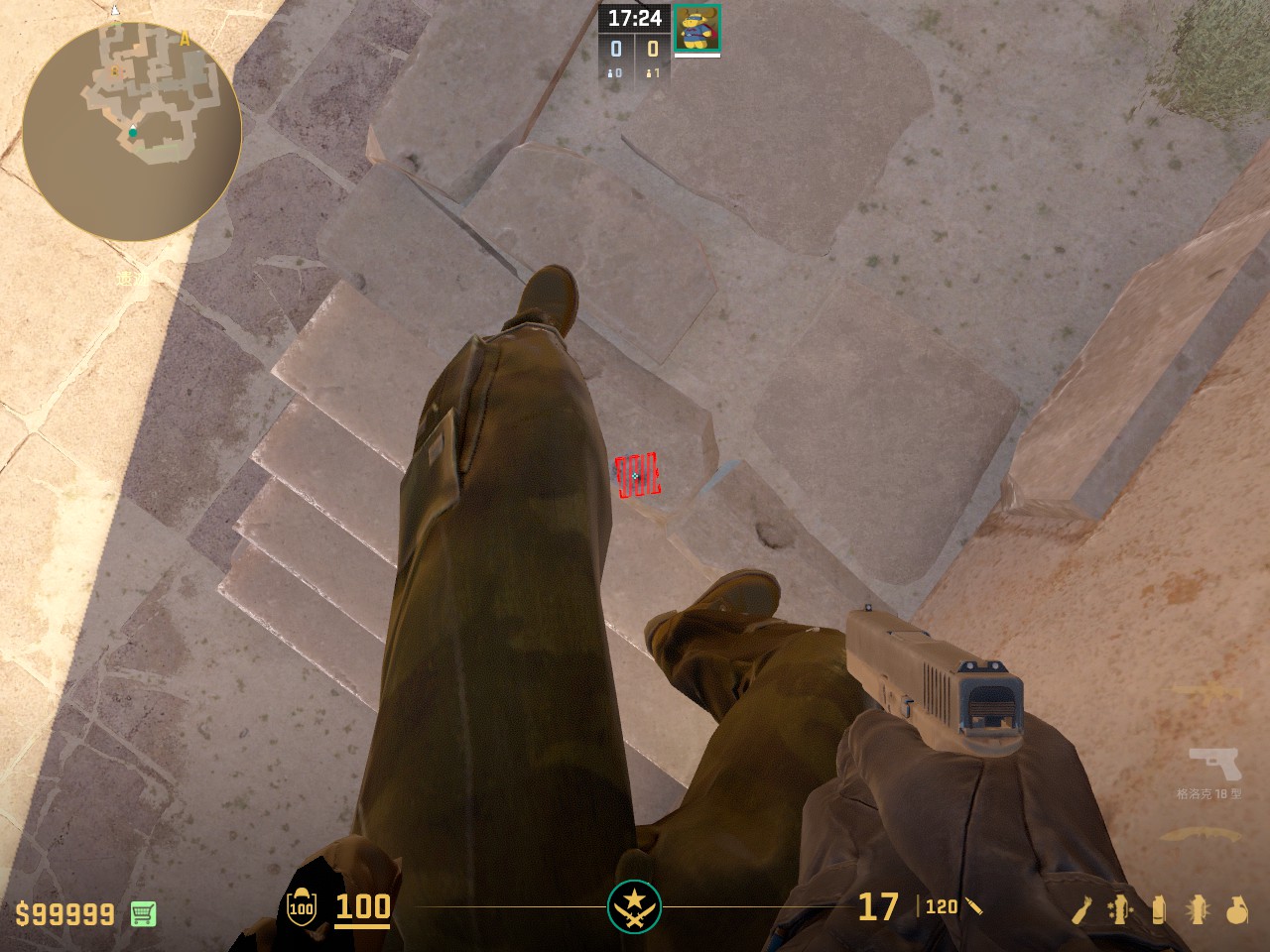 在匪家通往中路和B包的楼梯上瞄准窗户右上角