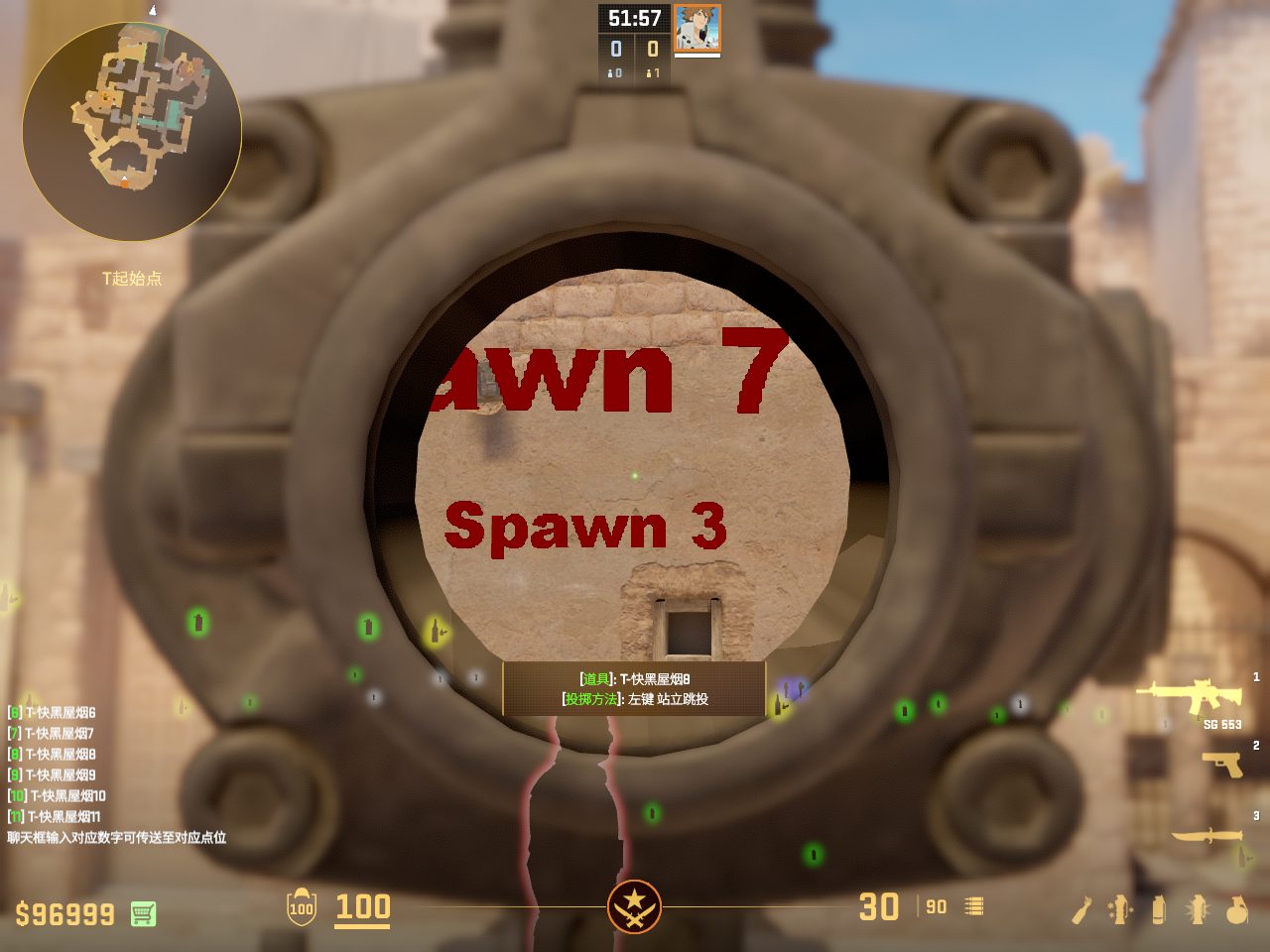 一点多用的闪光 但只能白玻璃房和死点直架的敌人 不白出门队友只适合在此处丢完警家烟雾弹顺手丢出