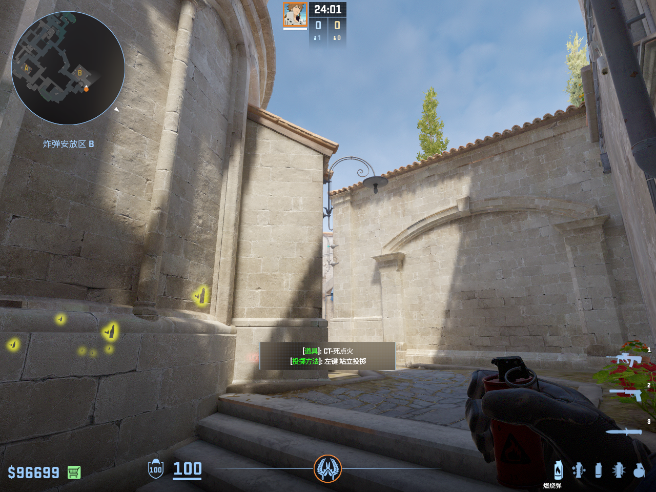 燃烧b区死点,帮助队友进行b区回防