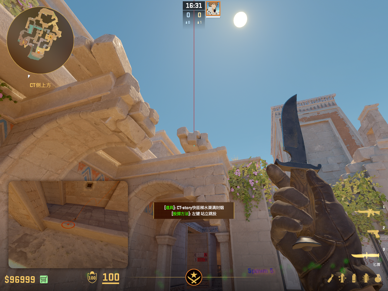 一点多用的闪光 但只能白玻璃房和死点直架的敌人 不白出门队友只适合在此处丢完警家烟雾弹顺手丢出