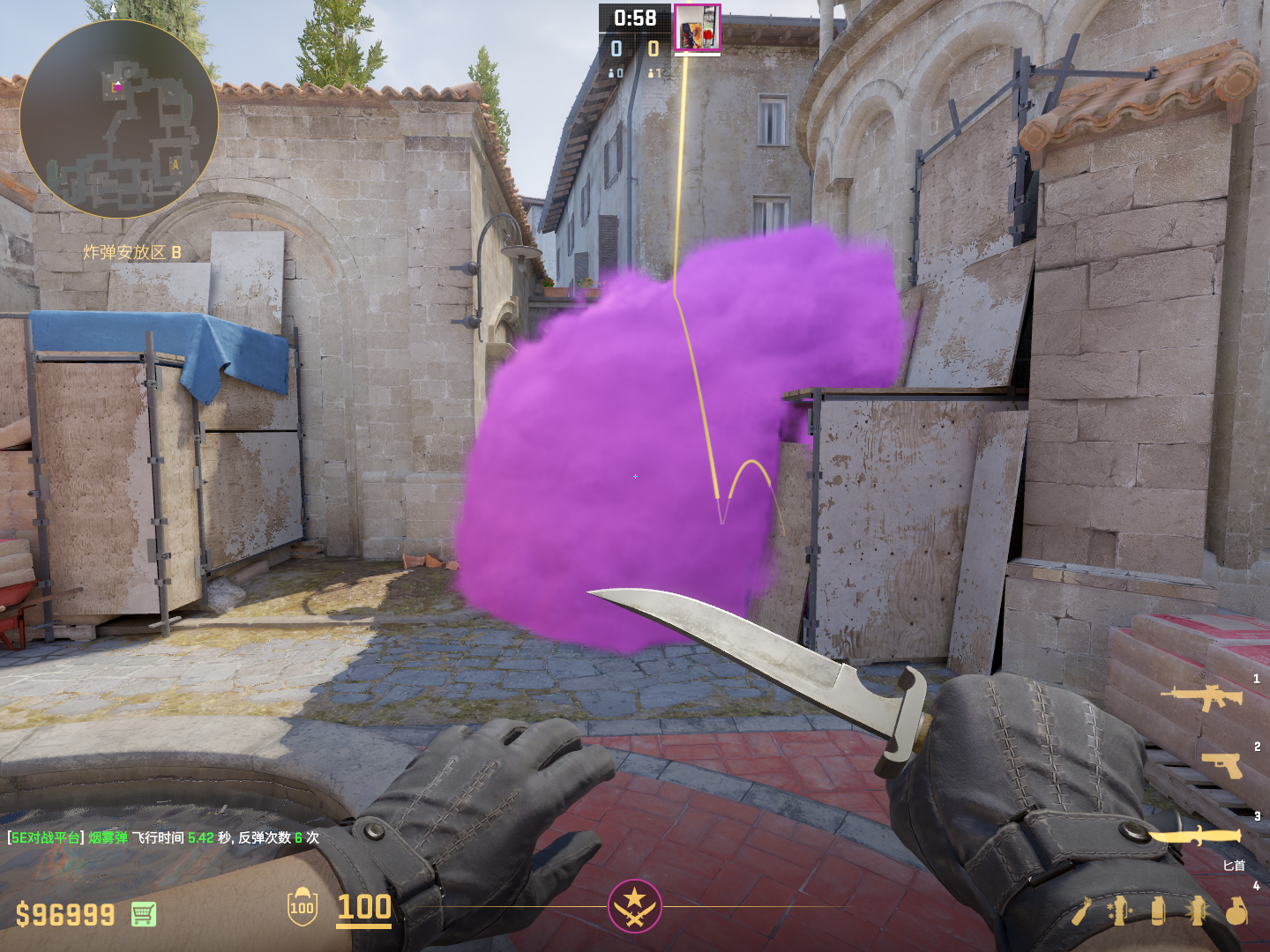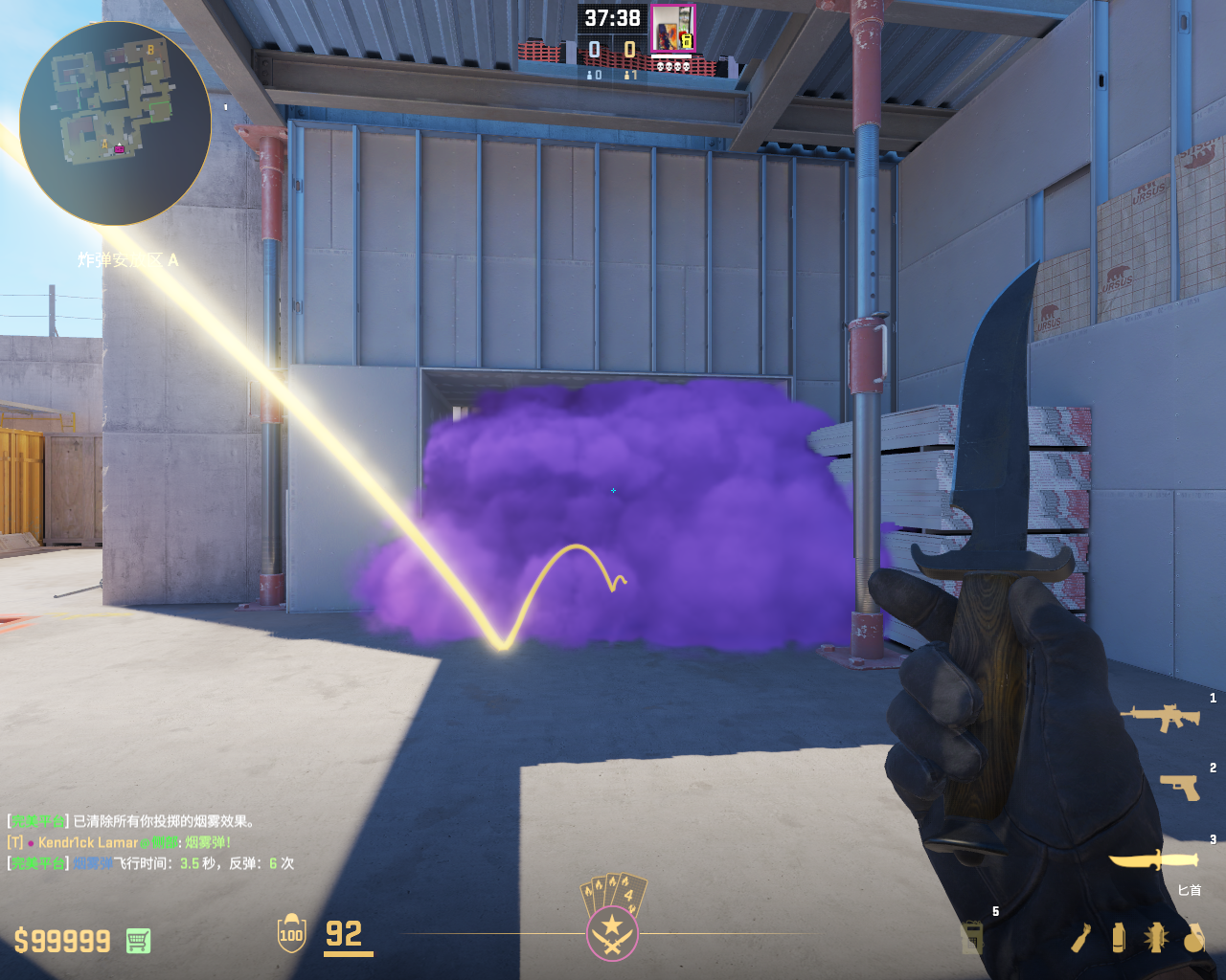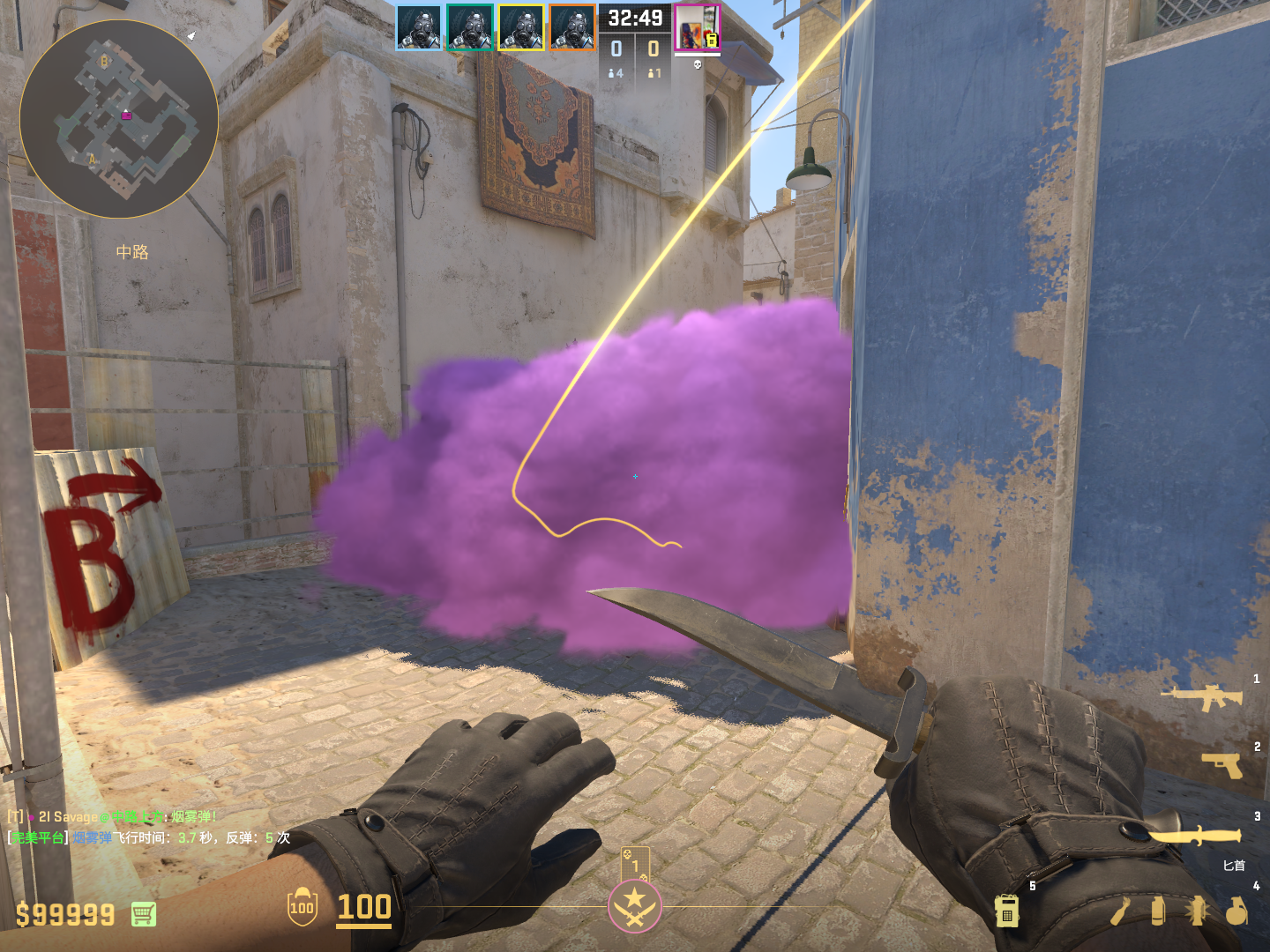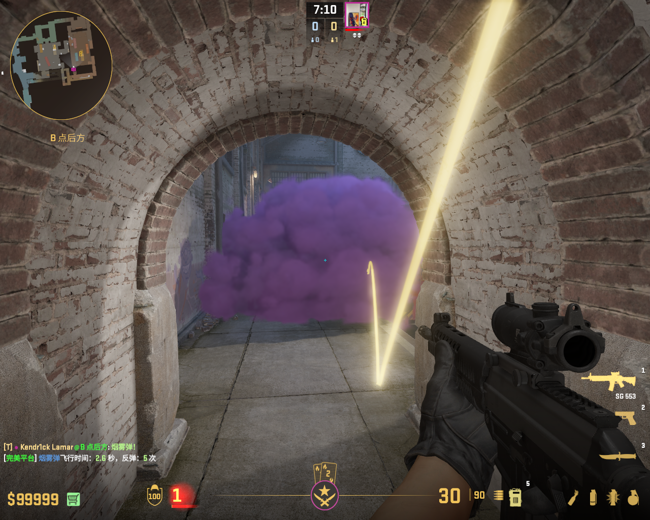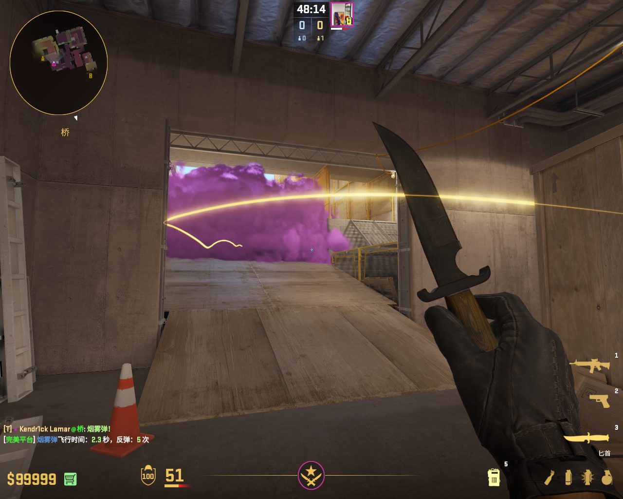 一点多用的闪光 但只能白玻璃房和死点直架的敌人 不白出门队友只适合在此处丢完警家烟雾弹顺手丢出