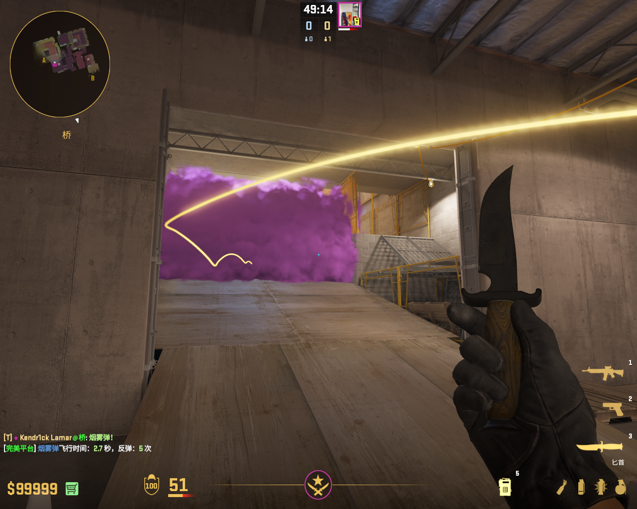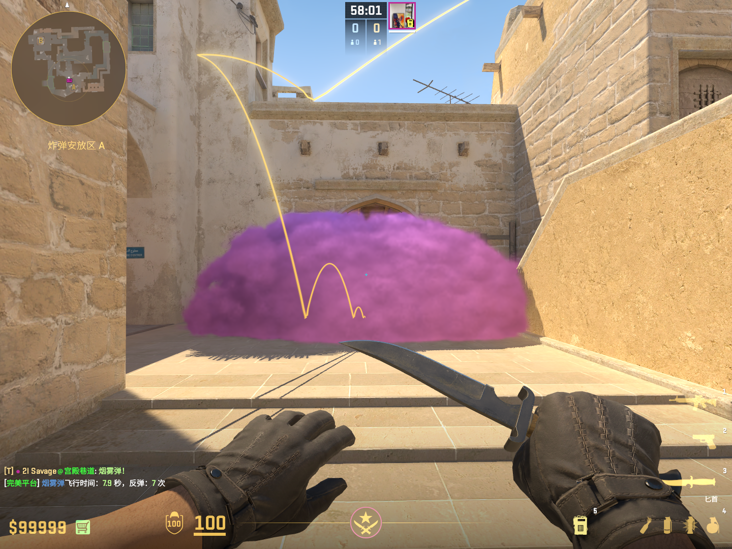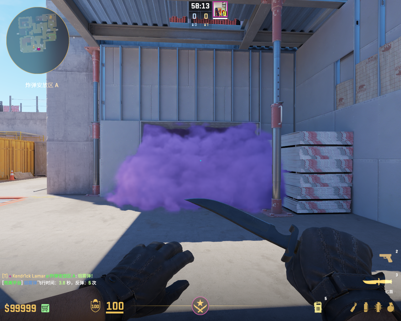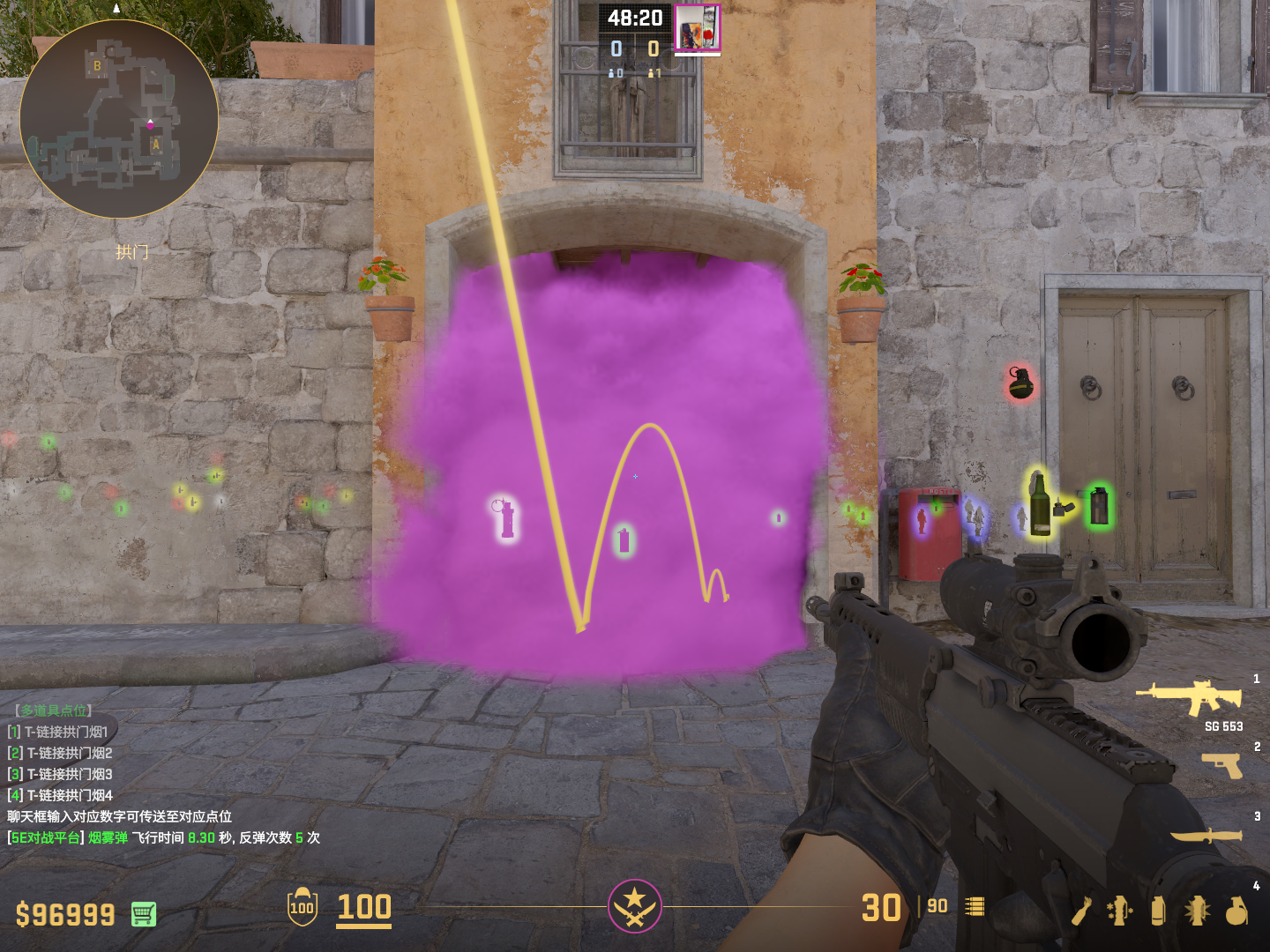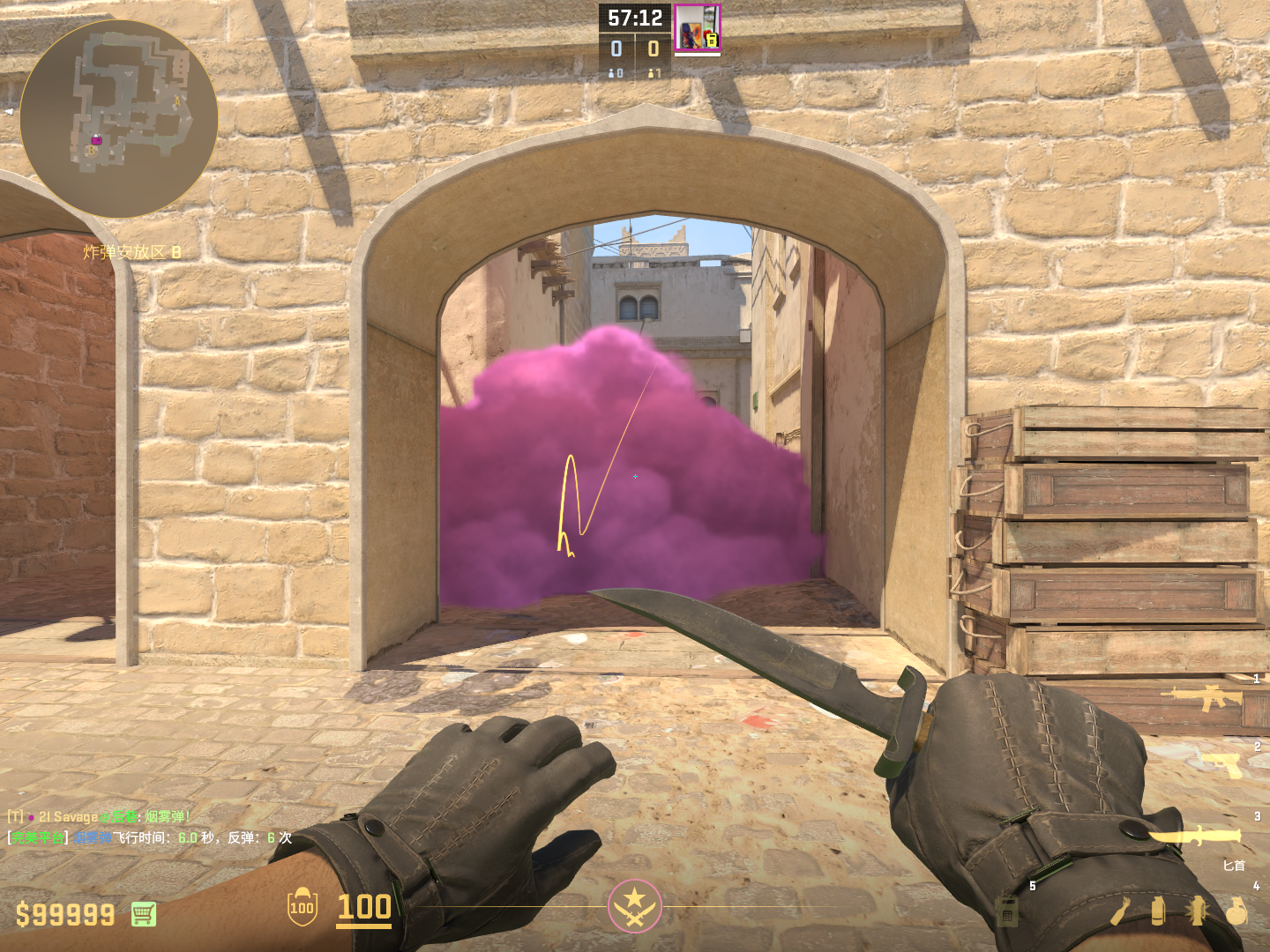 一点多用的闪光 但只能白玻璃房和死点直架的敌人 不白出门队友只适合在此处丢完警家烟雾弹顺手丢出