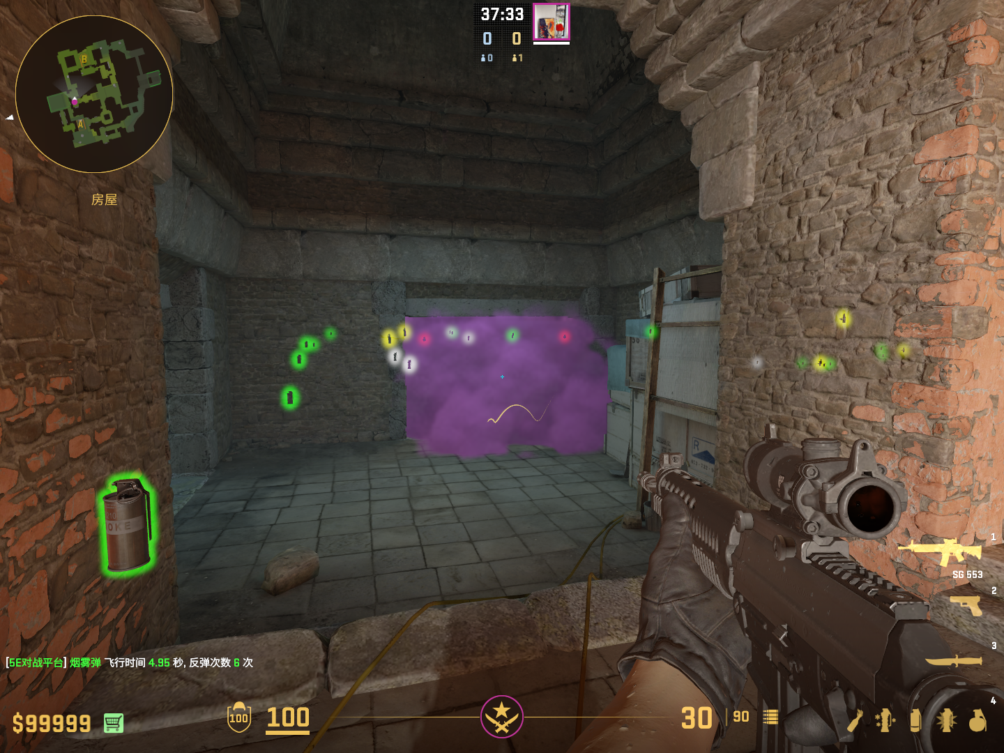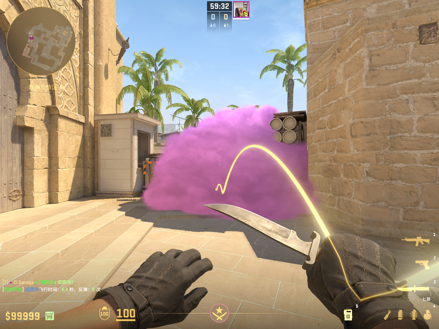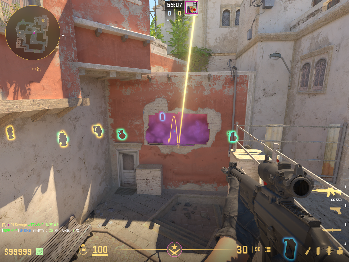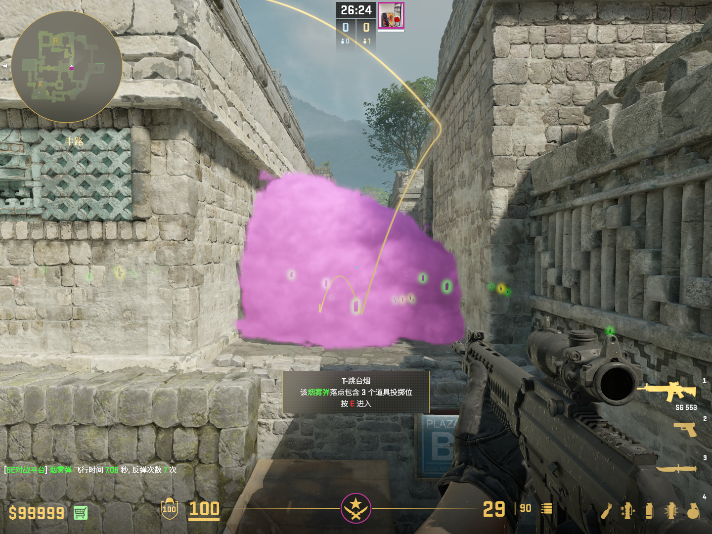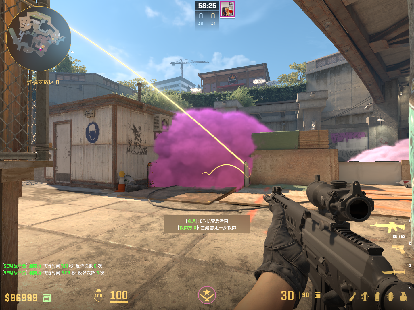 一点多用的闪光 但只能白玻璃房和死点直架的敌人 不白出门队友只适合在此处丢完警家烟雾弹顺手丢出