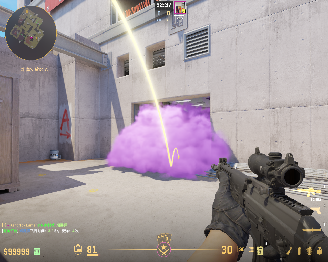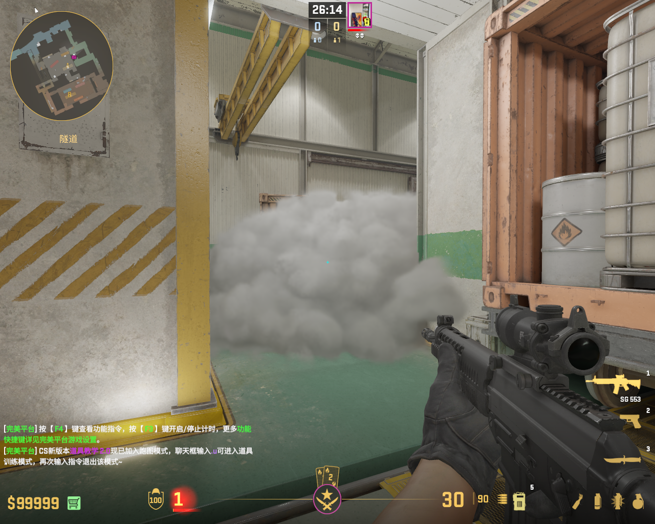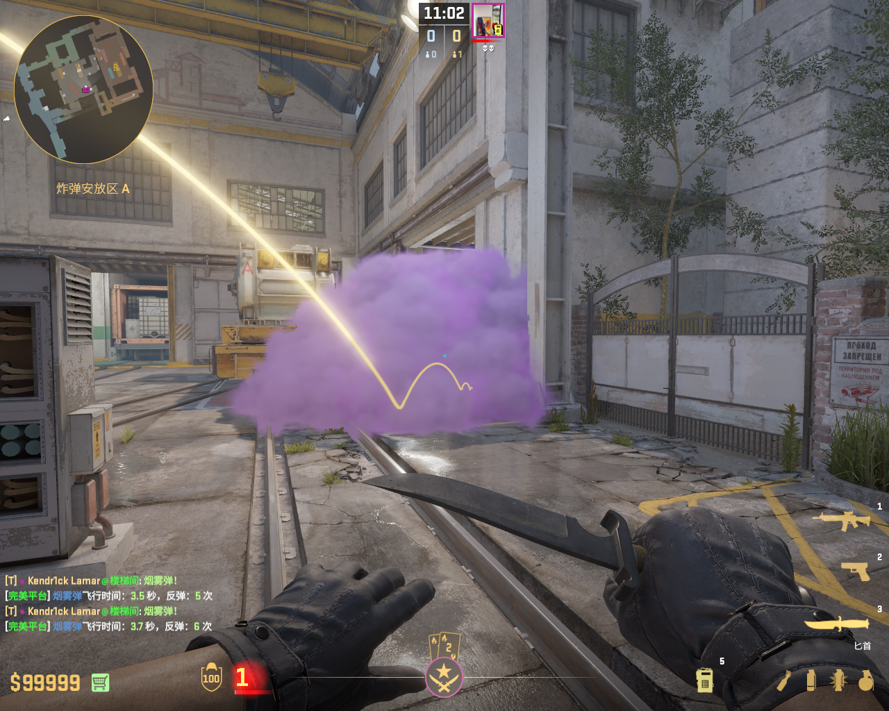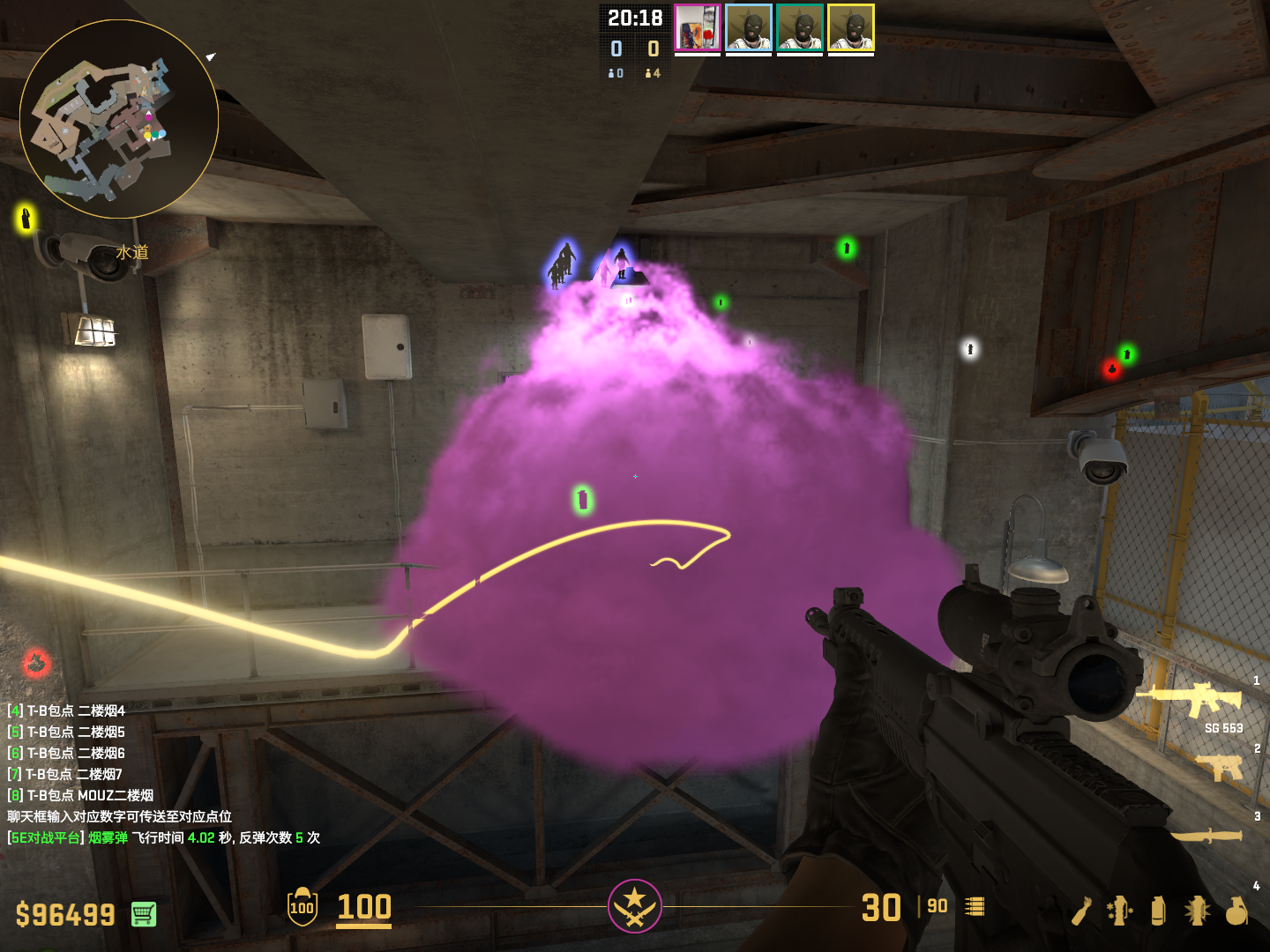 一点多用的闪光 但只能白玻璃房和死点直架的敌人 不白出门队友只适合在此处丢完警家烟雾弹顺手丢出