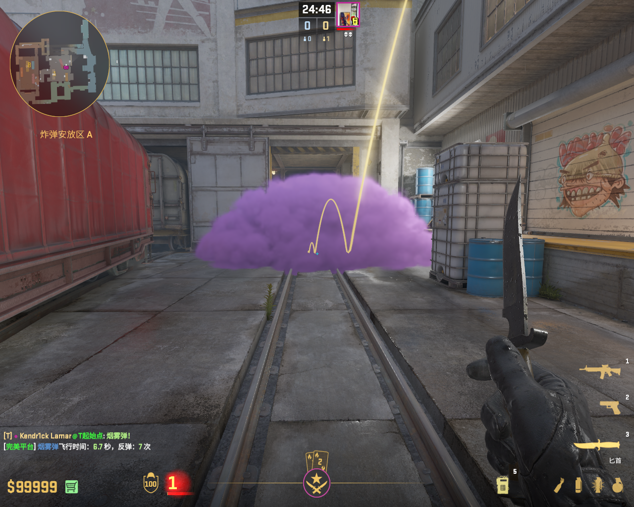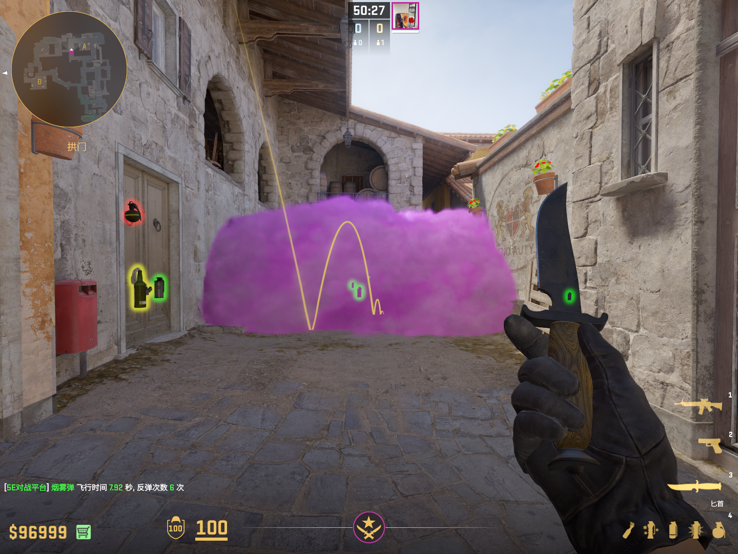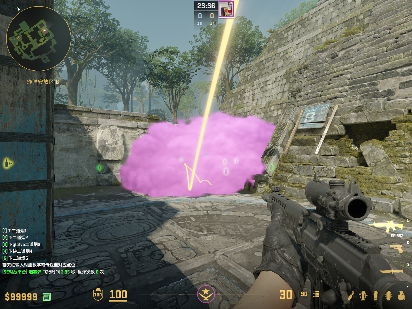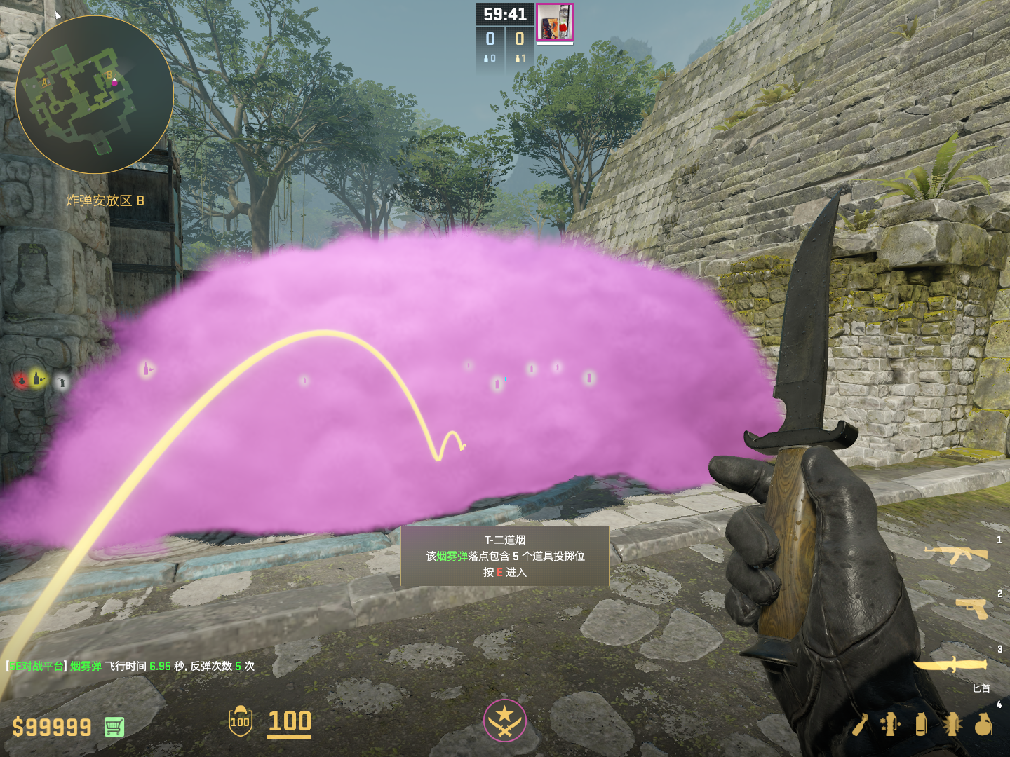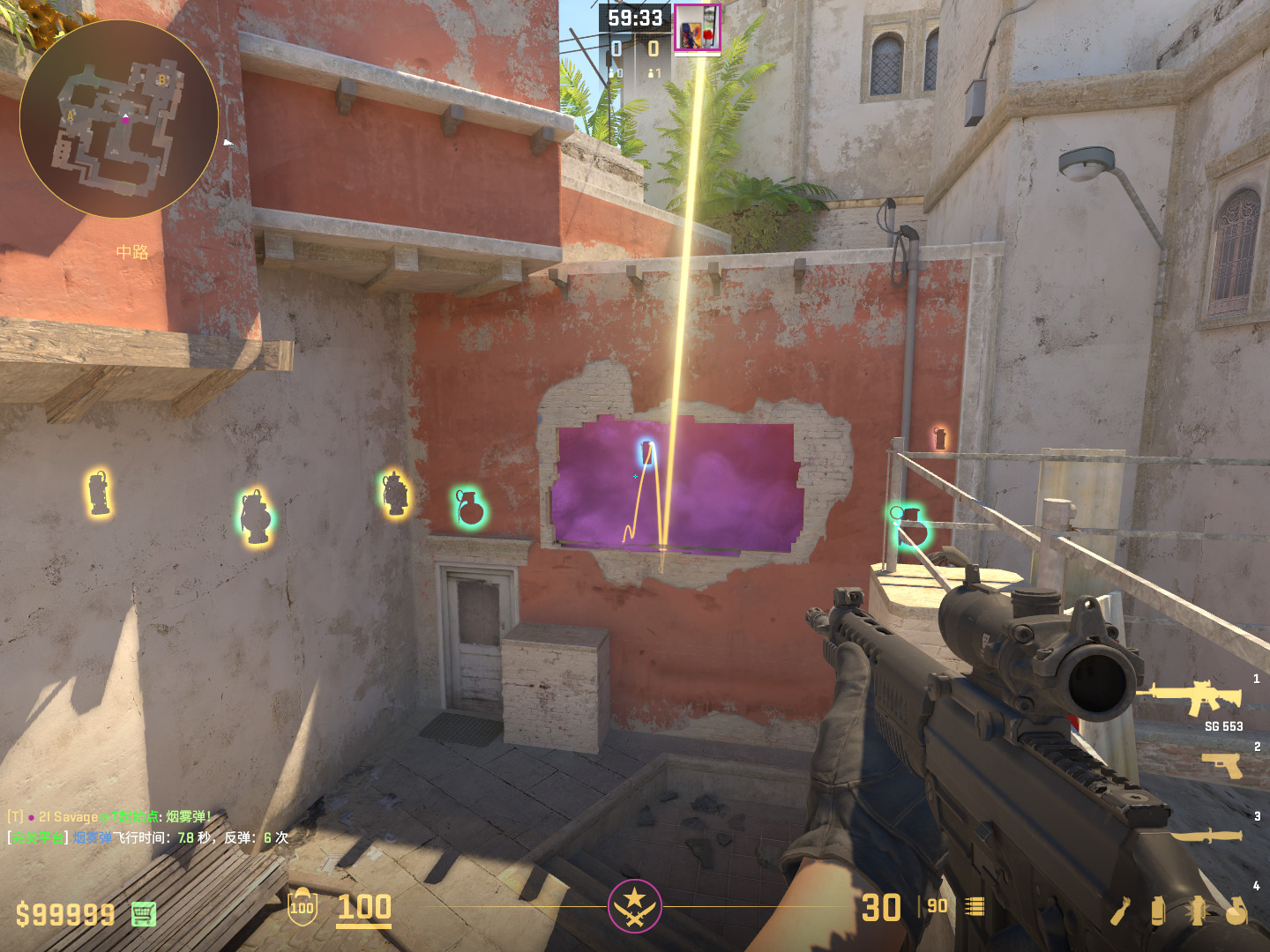 一点多用的闪光 但只能白玻璃房和死点直架的敌人 不白出门队友只适合在此处丢完警家烟雾弹顺手丢出