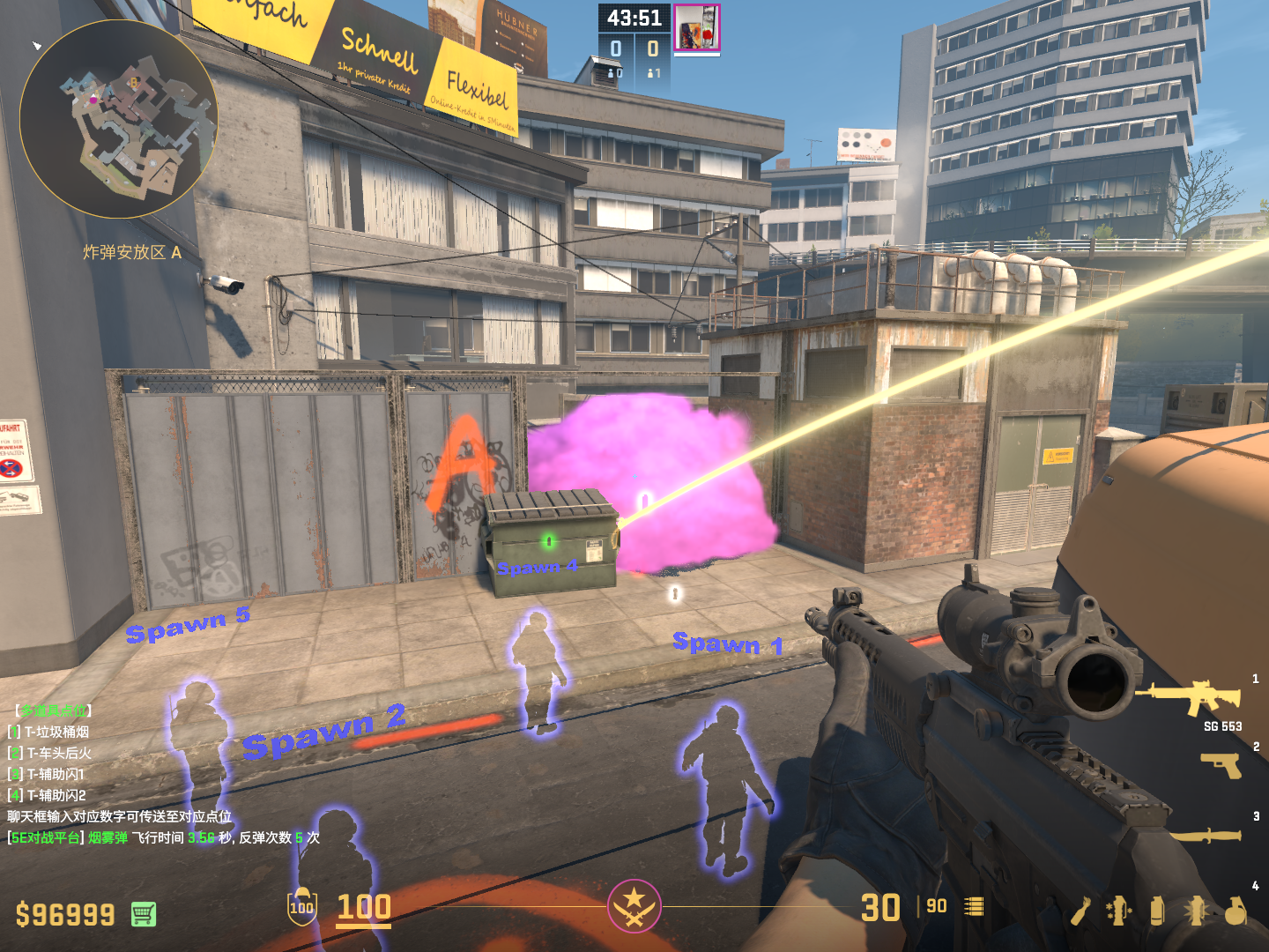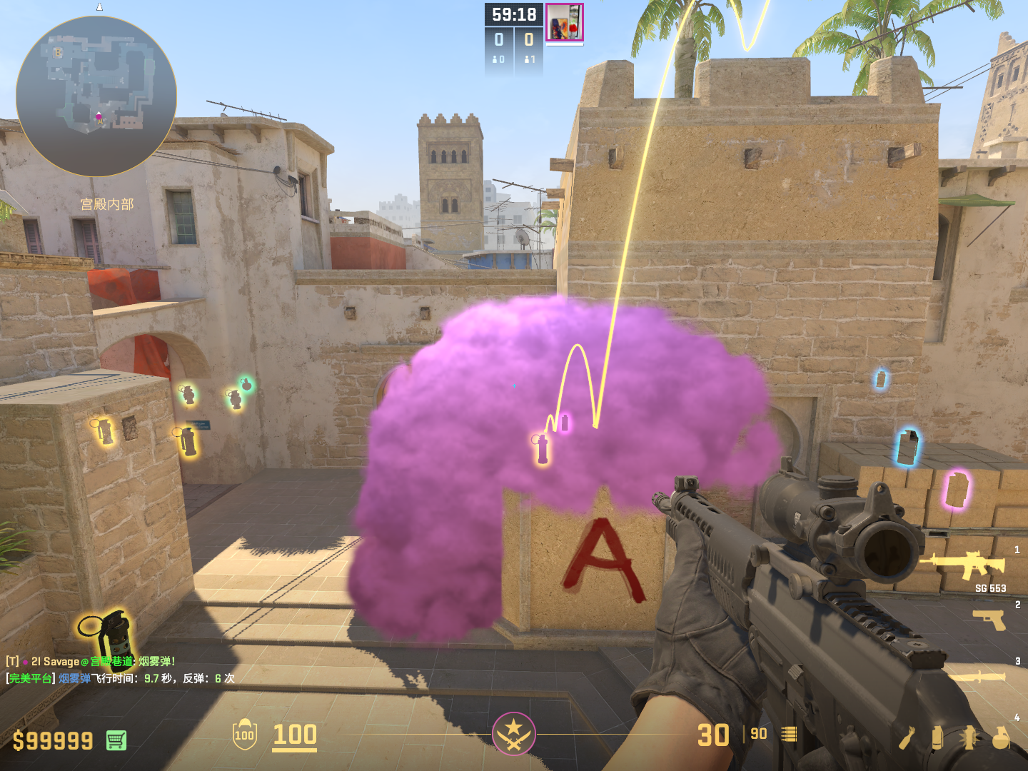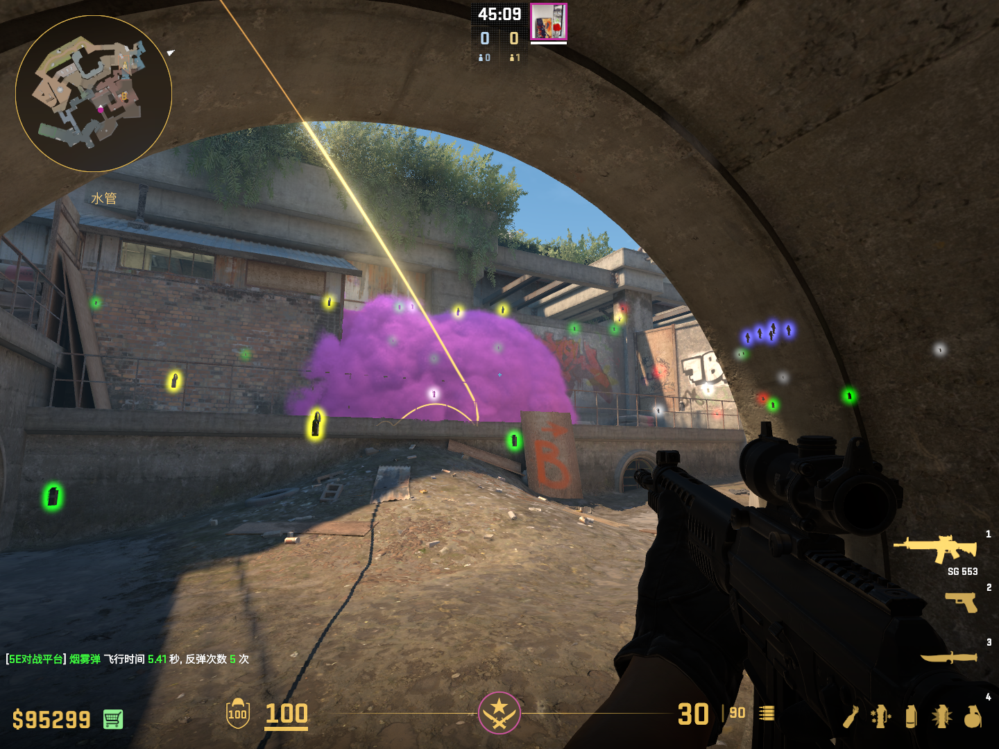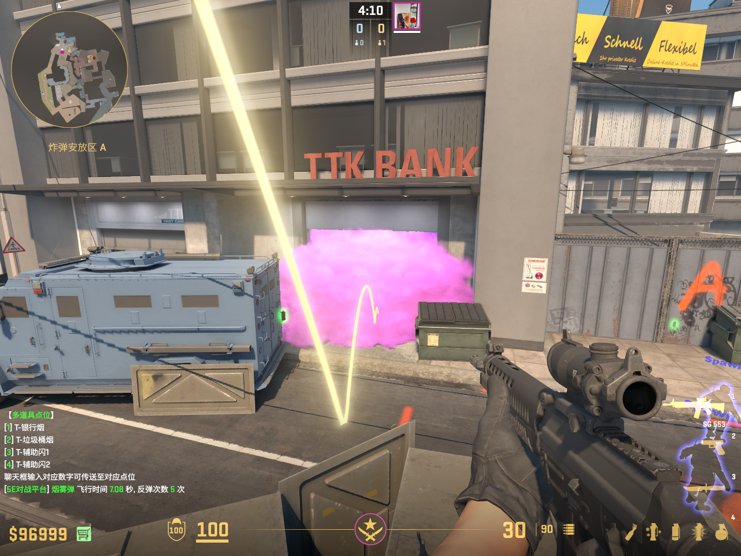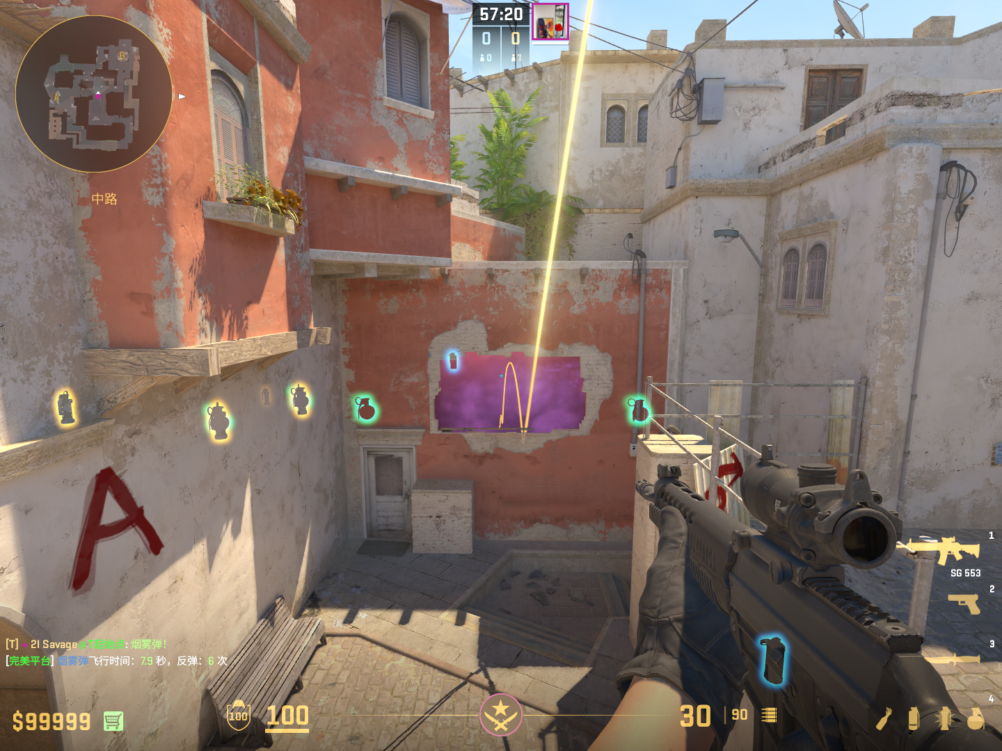 一点多用的闪光 但只能白玻璃房和死点直架的敌人 不白出门队友只适合在此处丢完警家烟雾弹顺手丢出